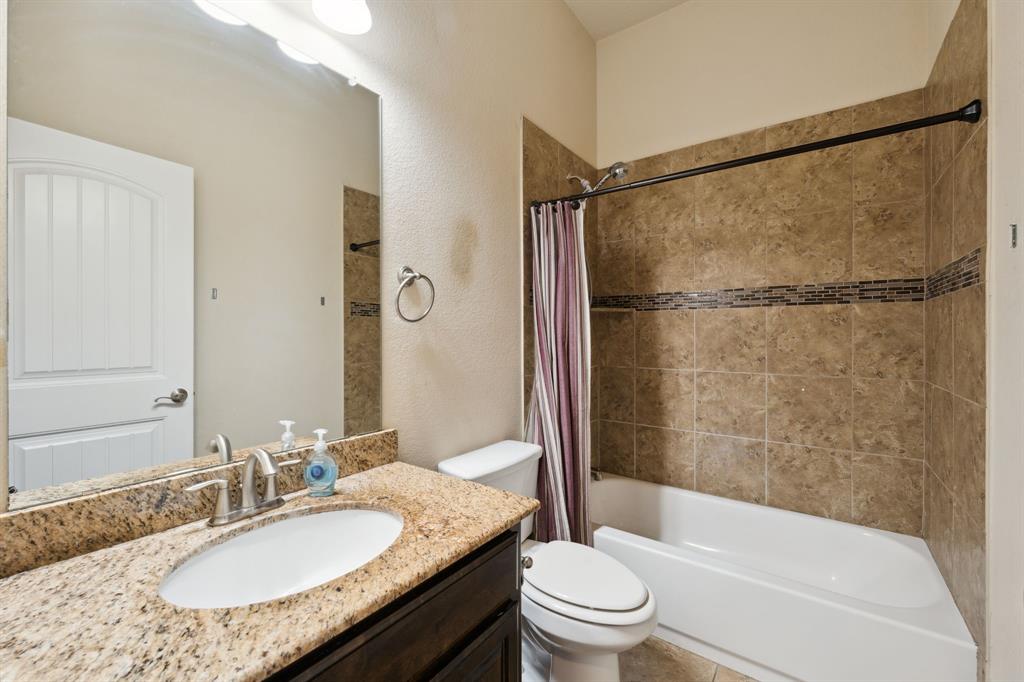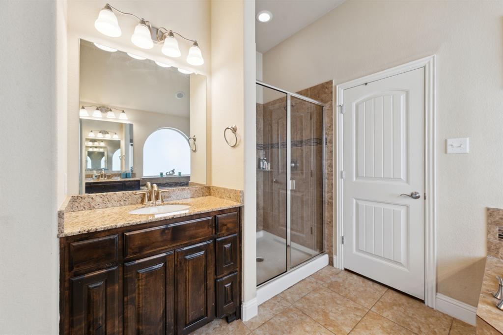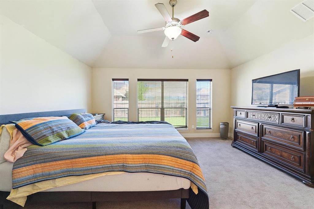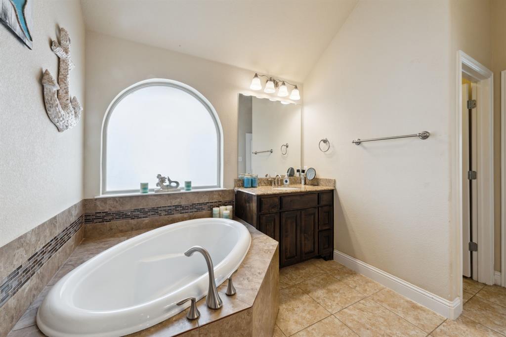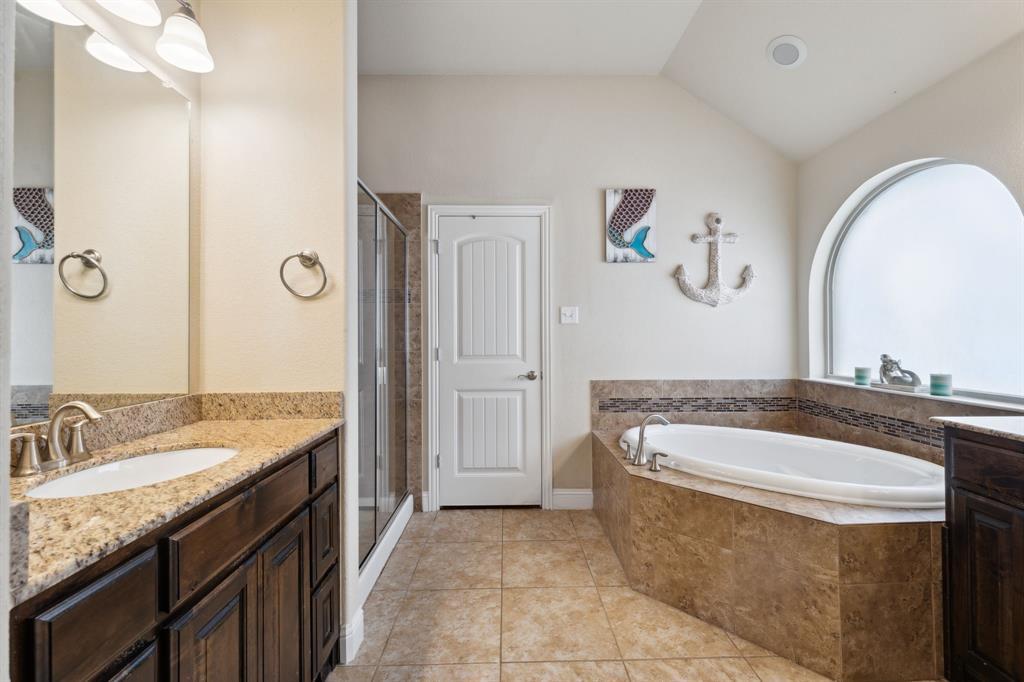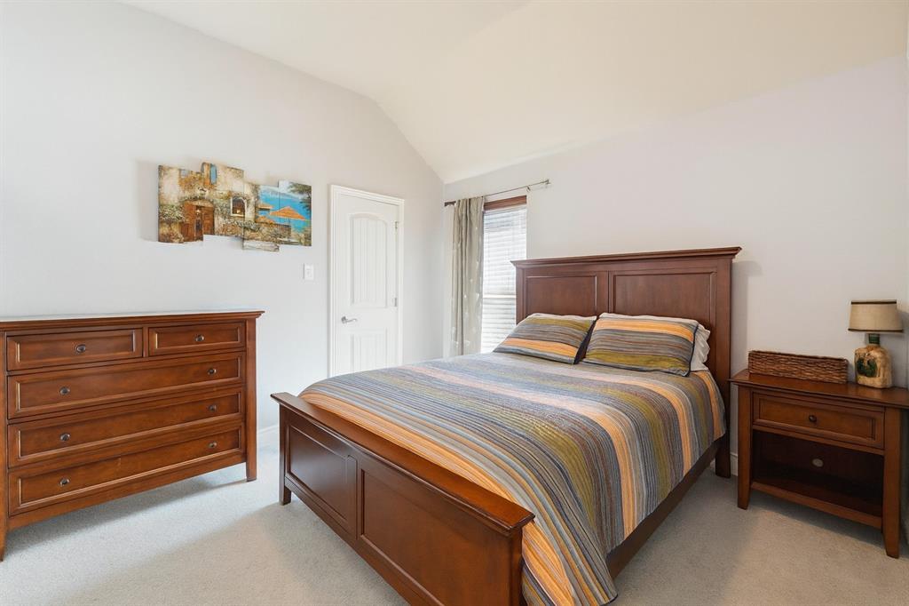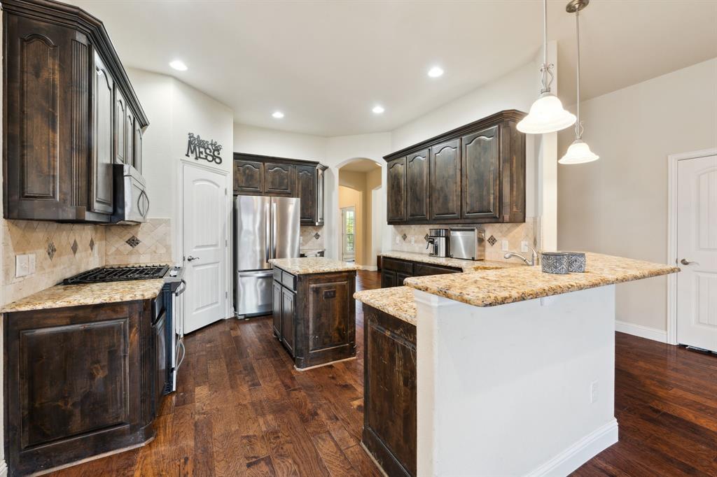 The kitchen includes granite countertops, a gas stove, island, and elegant alder wood cabinets. The generous master suite features dual vanities, a garden tub, separate shower, and a huge walk-in closet. Secondary bedrooms are nicely sized with plenty of closet space.