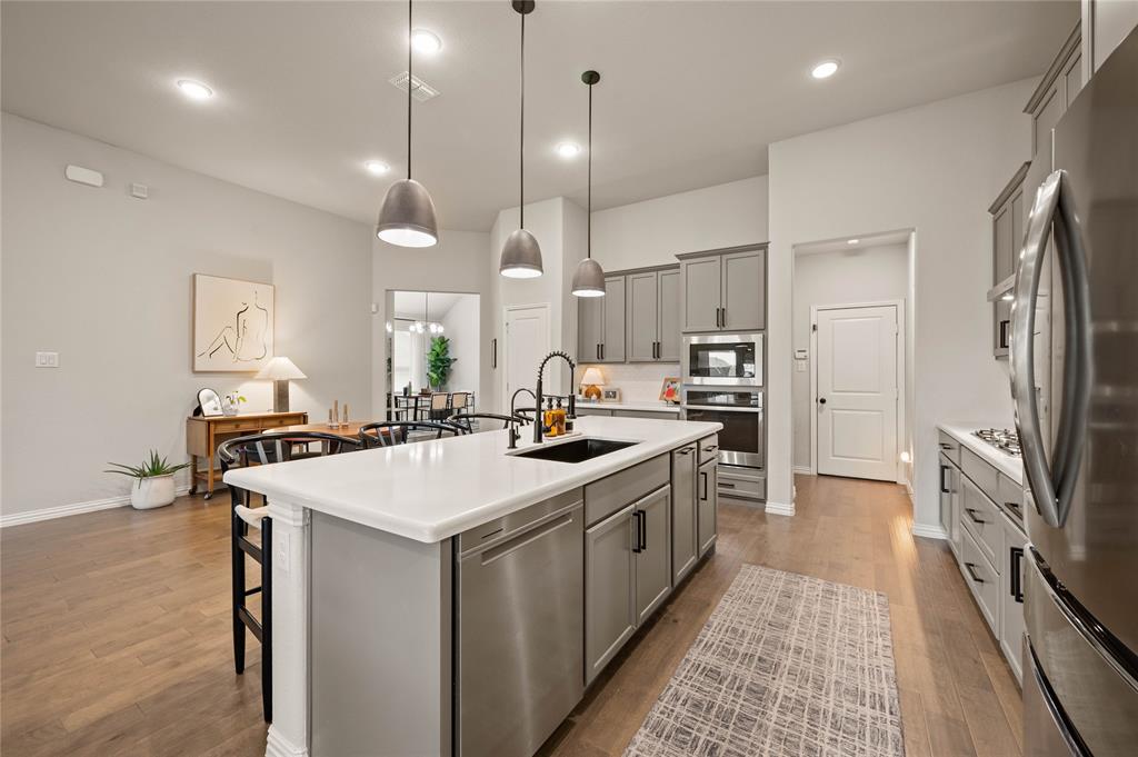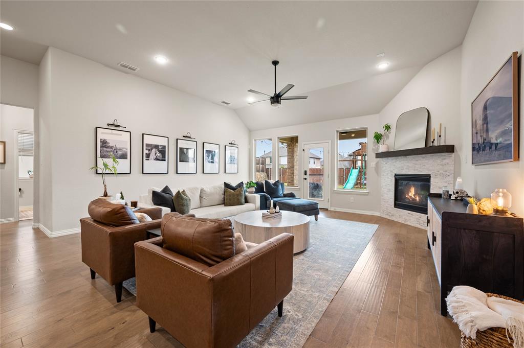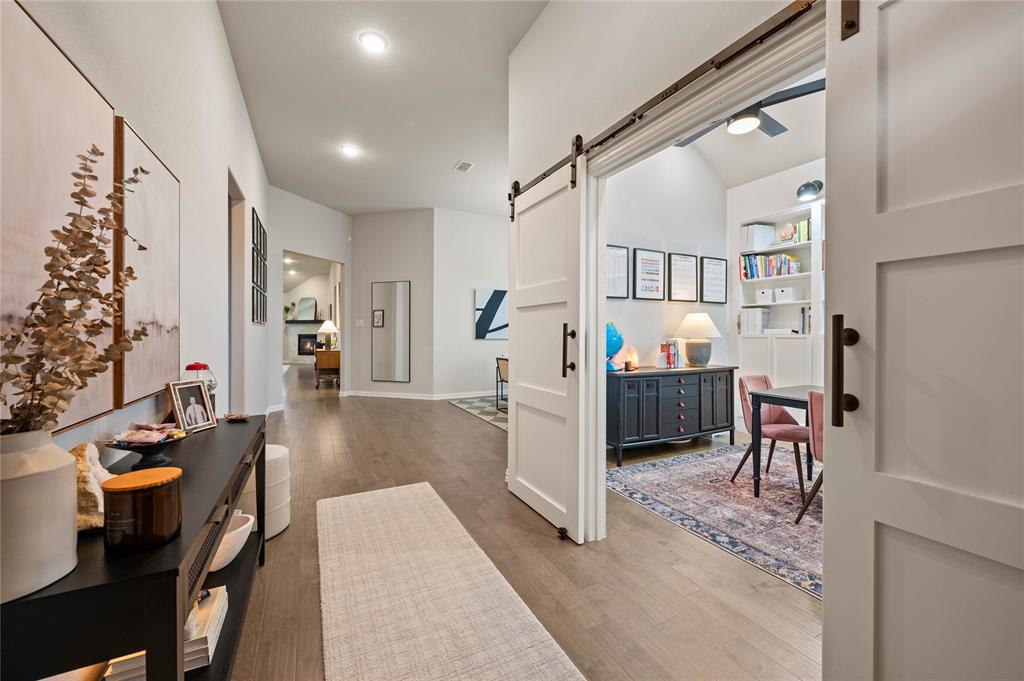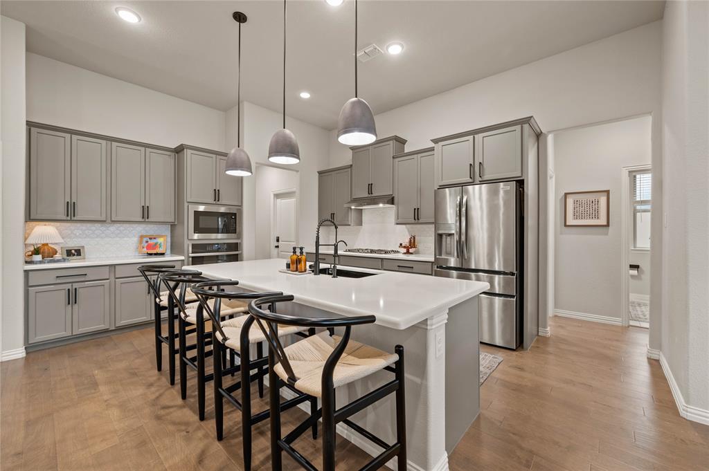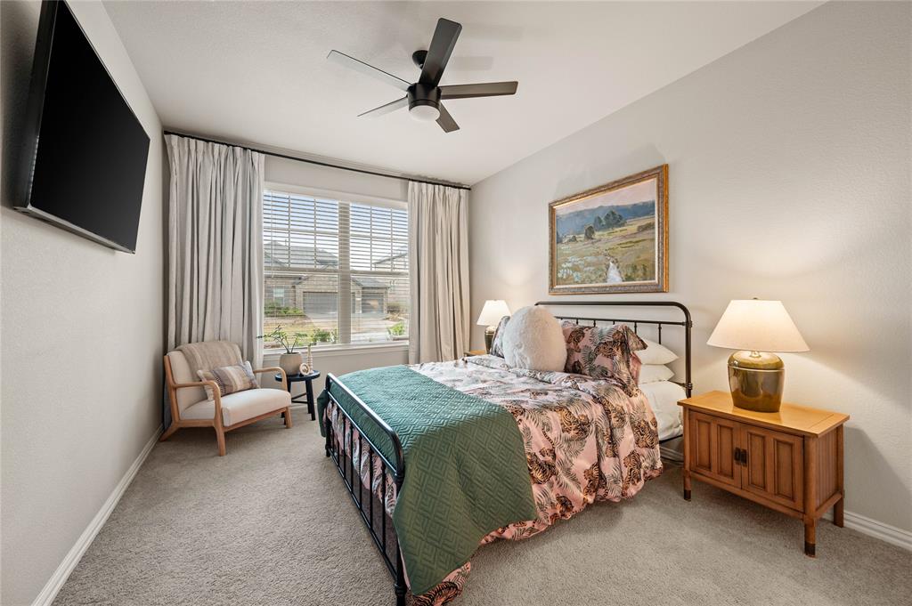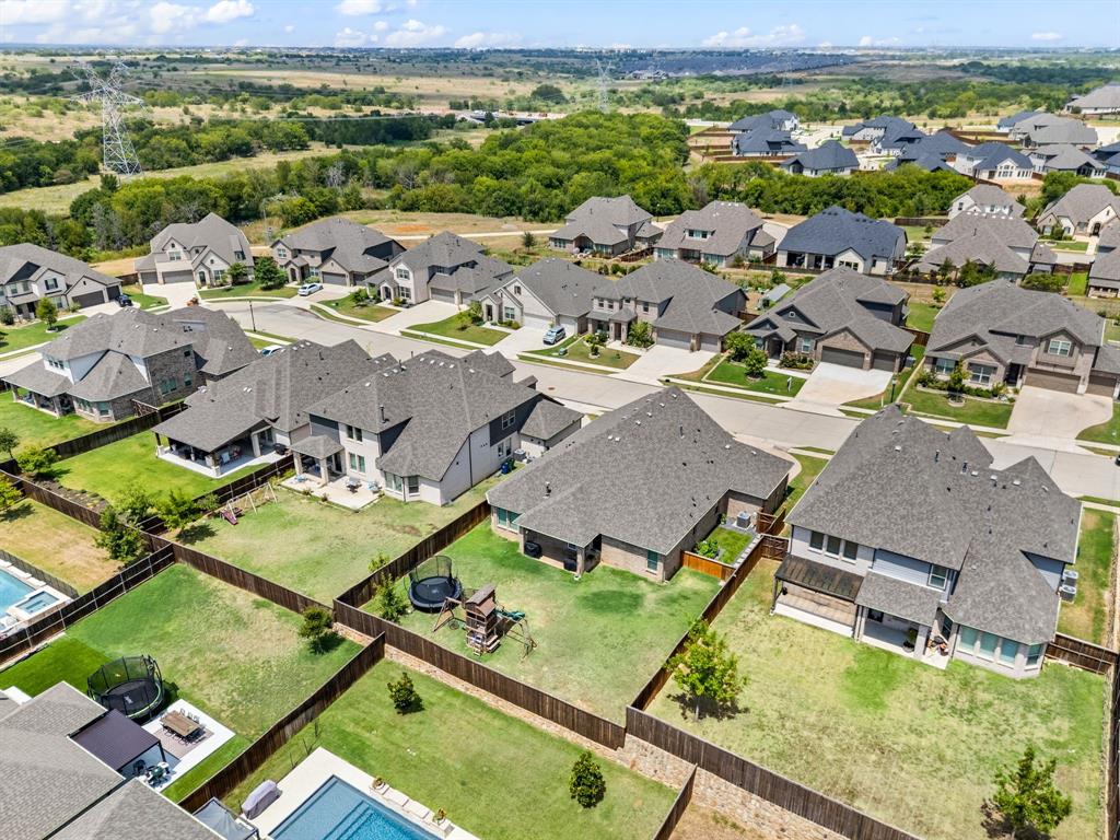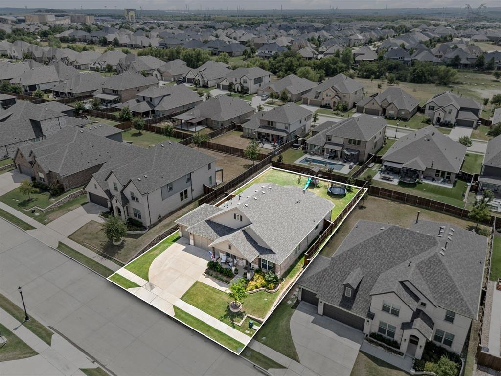**SELLER IS OFFERING UP TO $25,000 IN THE FORM OF A SELLER CREDIT FOR A RATE BUY DOWN** Beautifully constructed home with custom updates zoned for Argyle ISD, an easy walk to both the elementary and high school, in the sought after Canyon Falls neighborhood. Situated on an oversized quarter acre lot, this single story home features four bedrooms, with very functional floor plan, and classically designed engineered hardwood floors throughout the shared spaces and master suite. A mother-in-law style guest suite with ensuite bath is located on the front side of the home, and just across the foyer from the multifunctional office space. The entertaining space begins with the formal dining at the end of the entryway space and continues as you enter the open concept modern eat in kitchen complete with oversized island, custom lighting, and high end appliances, as well as the family room complete with gas fireplace and a wall of windows opening up to the covered patio and large grassed backyard. The primary suite is tucked away in the back of the home for ultimate privacy, and comes complete with bay windows to create a sitting or work out area, dual sinks with upgraded hardware, stand alone shower, soaking tub, and custom closet system. Two other bedrooms are situated just down the hall from the kitchen, and are perfect for families in all phases of life. Out the back you find a covered patio perfect for grilling, and sprawling green grass with plenty of room for kids to play (the play house can stay), as well as a pool someday. The true three car garage impresses with lots of additional storage and real epoxy floors. Don't miss the RARE opportunity to make this single story, four bedroom, quarter acre lot with three car garage zoned for Argyle ISD yours!