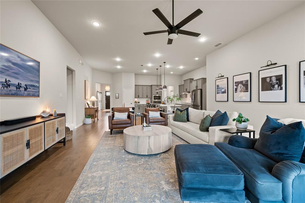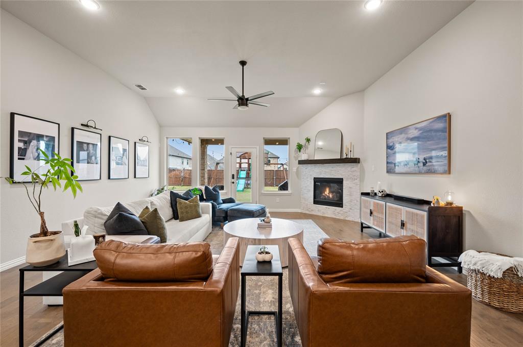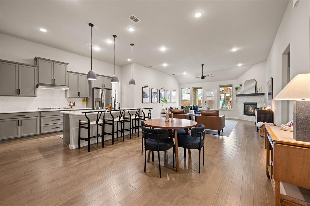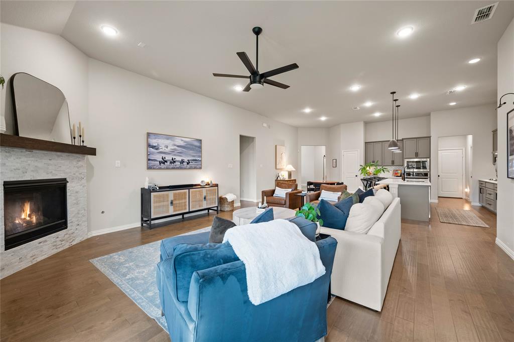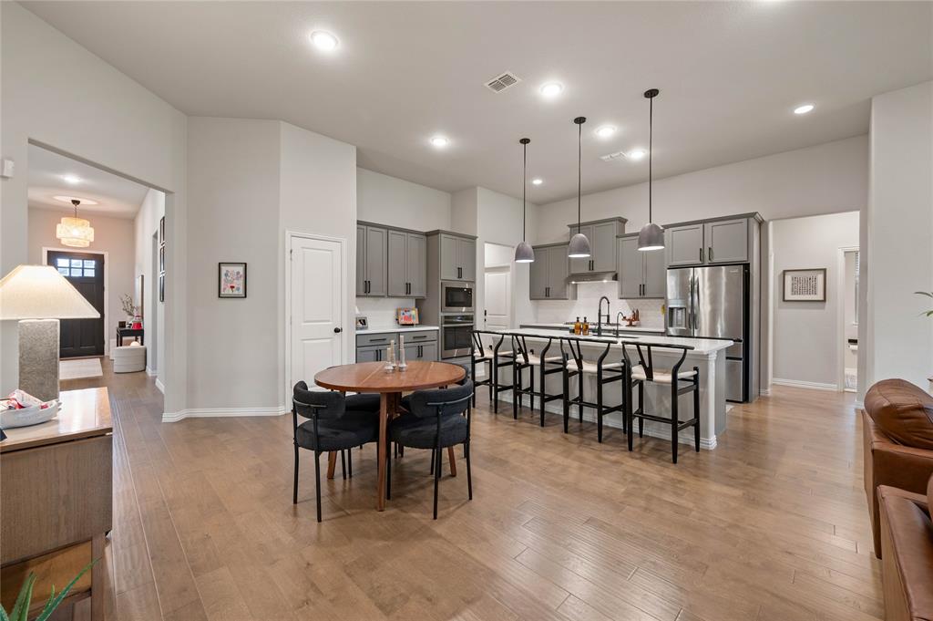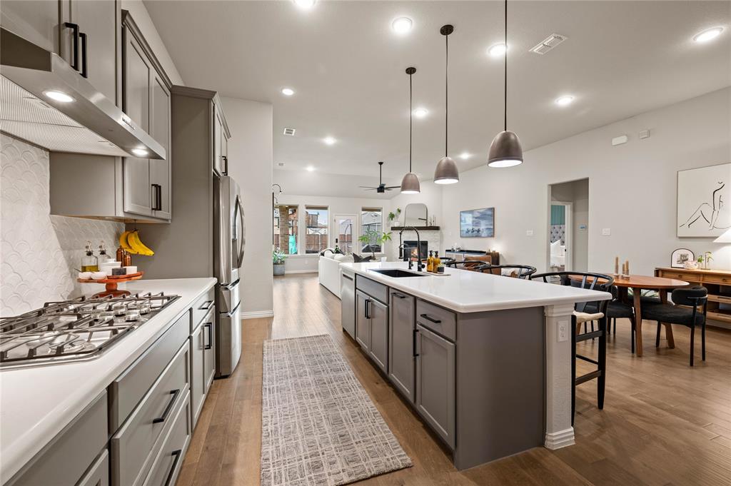 **SELLER IS OFFERING UP TO $25,000 IN THE FORM OF A SELLER CREDIT FOR A RATE BUY DOWN** Beautifully constructed home with custom updates zoned for Argyle ISD, an easy walk to both the elementary and high school, in the sought after Canyon Falls neighborhood. Situated on an oversized quarter acre lot, this single story home features four bedrooms, with very functional floor plan, and classically designed engineered hardwood floors throughout the shared spaces and master suite. A mother-in-law style guest suite with ensuite bath is located on the front side of the home, and just across the foyer from the multifunctional office space. The entertaining space begins with the formal dining at the end of the entryway space and continues as you enter the open concept modern eat in kitchen complete with oversized island, custom lighting, and high end appliances, as well as the family room complete with gas fireplace and a wall of windows opening up to the covered patio and large grassed backyard. The primary suite is tucked away in the back of the home for ultimate privacy, and comes complete with bay windows to create a sitting or work out area, dual sinks with upgraded hardware, stand alone shower, soaking tub, and custom closet system. Two other bedrooms are situated just down the hall from the kitchen, and are perfect for families in all phases of life. Out the back you find a covered patio perfect for grilling, and sprawling green grass with plenty of room for kids to play (the play house can stay), as well as a pool someday. The true three car garage impresses with lots of additional storage and real epoxy floors. Don't miss the RARE opportunity to make this single story, four bedroom, quarter acre lot with three car garage zoned for Argyle ISD yours!