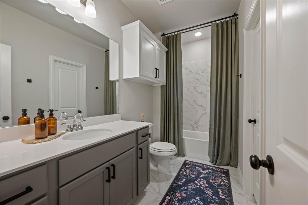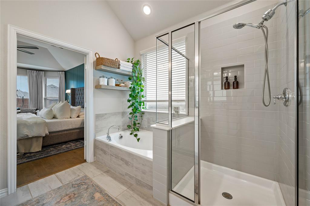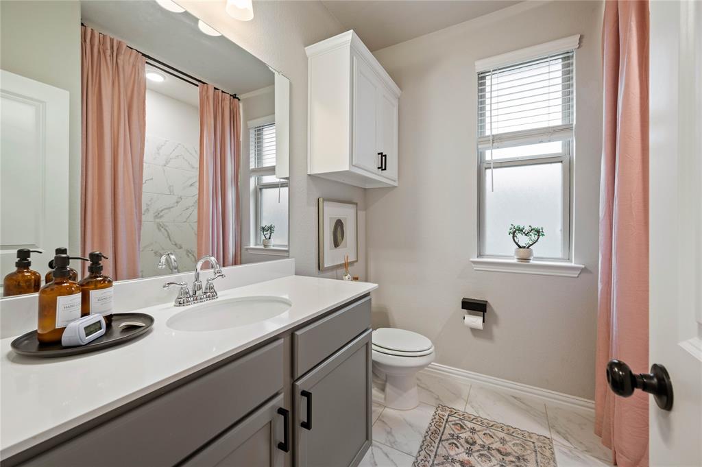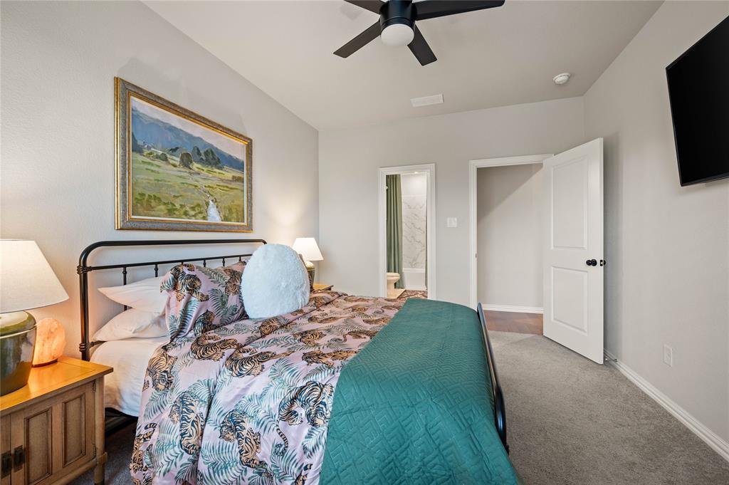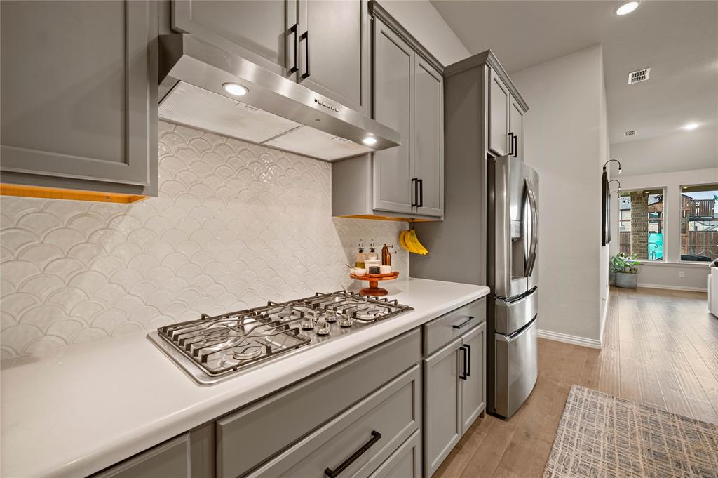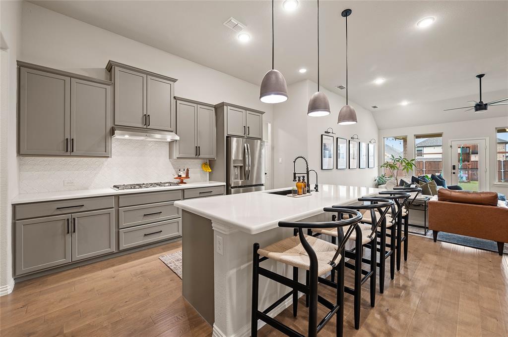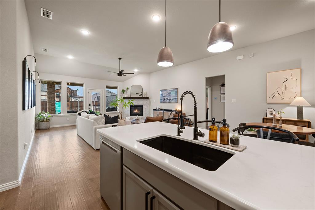 **SELLER IS OFFERING UP TO $25,000 IN THE FORM OF A SELLER CREDIT FOR A RATE BUY DOWN** Beautifully constructed home with custom updates zoned for Argyle ISD, an easy walk to both the elementary and high school, in the sought after Canyon Falls neighborhood. Situated on an oversized quarter acre lot, this single story home features four bedrooms, with very functional floor plan, and classically designed engineered hardwood floors throughout the shared spaces and master suite. A mother-in-law style guest suite with ensuite bath is located on the front side of the home, and just across the foyer from the multifunctional office space. The entertaining space begins with the formal dining at the end of the entryway space and continues as you enter the open concept modern eat in kitchen complete with oversized island, custom lighting, and high end appliances, as well as the family room complete with gas fireplace and a wall of windows opening up to the covered patio and large grassed backyard. The primary suite is tucked away in the back of the home for ultimate privacy, and comes complete with bay windows to create a sitting or work out area, dual sinks with upgraded hardware, stand alone shower, soaking tub, and custom closet system. Two other bedrooms are situated just down the hall from the kitchen, and are perfect for families in all phases of life. Out the back you find a covered patio perfect for grilling, and sprawling green grass with plenty of room for kids to play (the play house can stay), as well as a pool someday. The true three car garage impresses with lots of additional storage and real epoxy floors. Don't miss the RARE opportunity to make this single story, four bedroom, quarter acre lot with three car garage zoned for Argyle ISD yours!