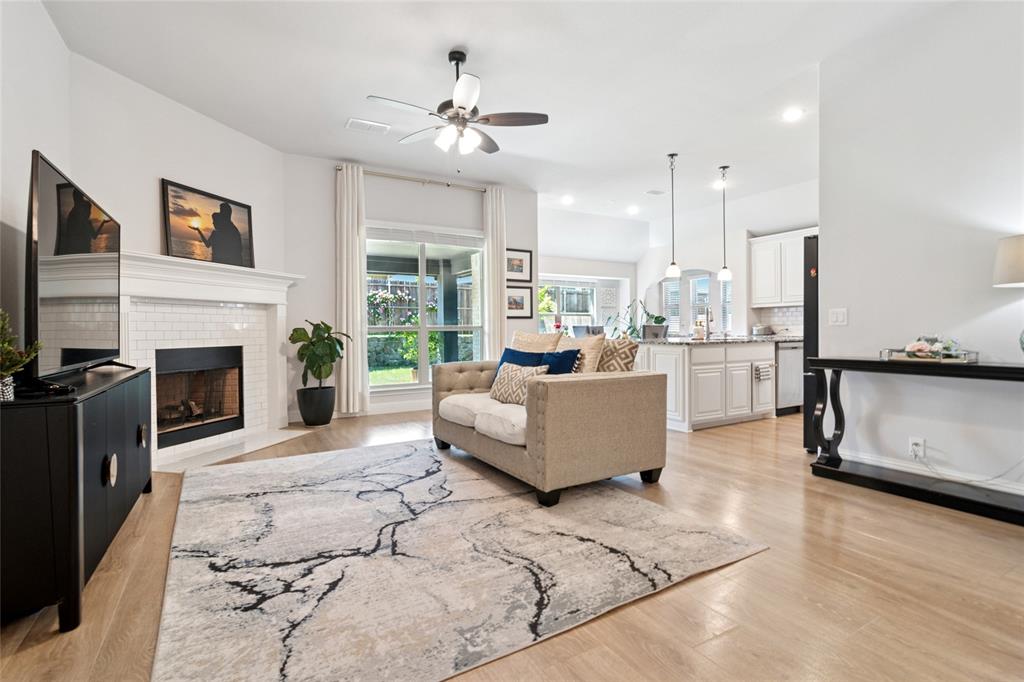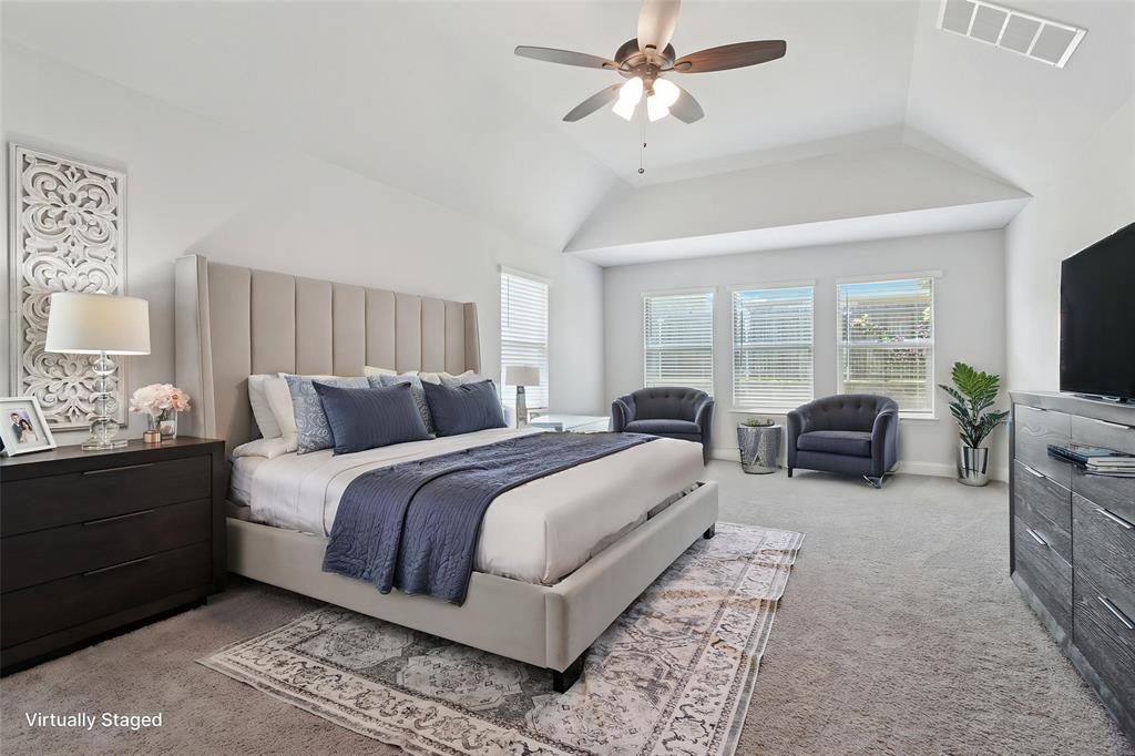 Discover this beautiful home, perfectly situated just a block from the elementary school, making morning drop-offs a breeze. With a spacious 3-car garage is ideal for a workshop or extra storage-and a fantastic community pool, it's a dream for families. The covered back porch wired for TV, is perfect for kid-friendly movie nights or relaxing after a busy day. Equipped with a whole-home solar system that conveys with the property, this home saves significantly on electric bills, leaving more for family adventures, and comes with a one-year home warranty for added piece of mind. The inviting rounded rotunda entry welcomes you into a space filled with charm, featuring lighted art niches and upgrades that make every corner special. Wood laminate flooring flows through the common areas, creating a warm, durable foundation for family life. The chef-inspired kitchen boasts stainless steel gas appliances, Smart refrigerator, modern cabinetry with plenty of storage, exotic granite countertops, and a stylish subway tile backsplash is perfect for preparing meals or hosting playdate snacks. With four bedrooms, including a flexible fourth that can double as a home office for remote work, this home adapts to your needs. The private primary suite offers a cozy sitting area and a spa like bathroom with a soaking tub, separate shower, and a large walk-in closet for all your storage needs. Set on a landscaped lot facing a serene greenbelt, the fenced backyard with an extra large covered patio is ideal for safe outdoor play or family gatherings. Enjoy access to a vibrant community with a pool, playground, park, clubhouse, and scenic trails, perfect for creating lasting memories with your kids!