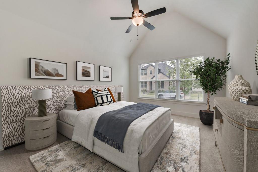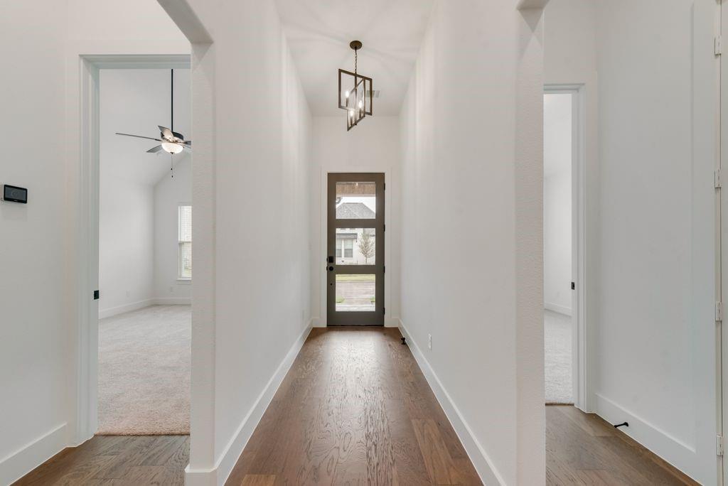 Experience luxury living in this popular open concept single story floor plan! Indulge your culinary senses in the gourmet kitchen featuring quartz countertops, top of the line appliances and beautiful cabinetry. Adjacent to the kitchen, a unique nook dining area provides a charming retreat, nestled in the rear of the home and offering a delightful view of the outdoor covered patio. A private hallway leads to the vaulted ceiling master bedroom, creating a secluded oasis. Double doors open to the primary bath, with a large walk-in shower with a mud pan, and a huge walk in closet. Additional features include a 3 Lite Mahogany front door, Luxury Vinyl flooring in main areas and upgraded lighting fixtures throughout.