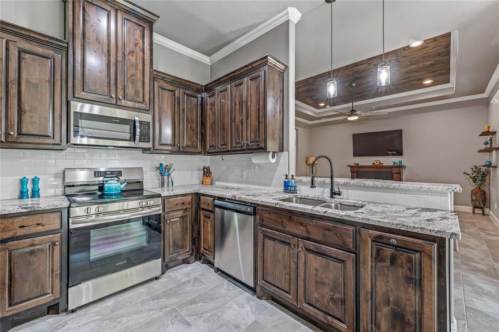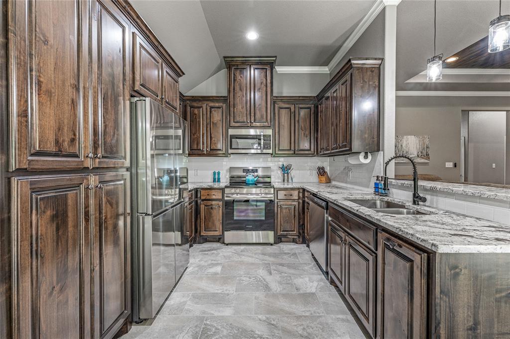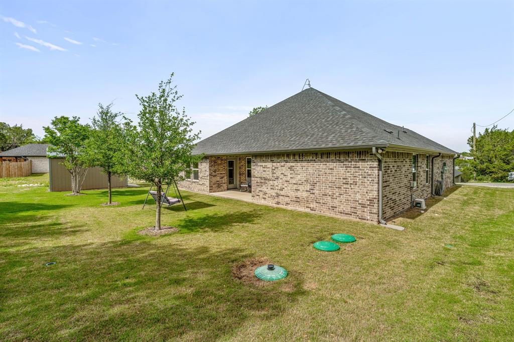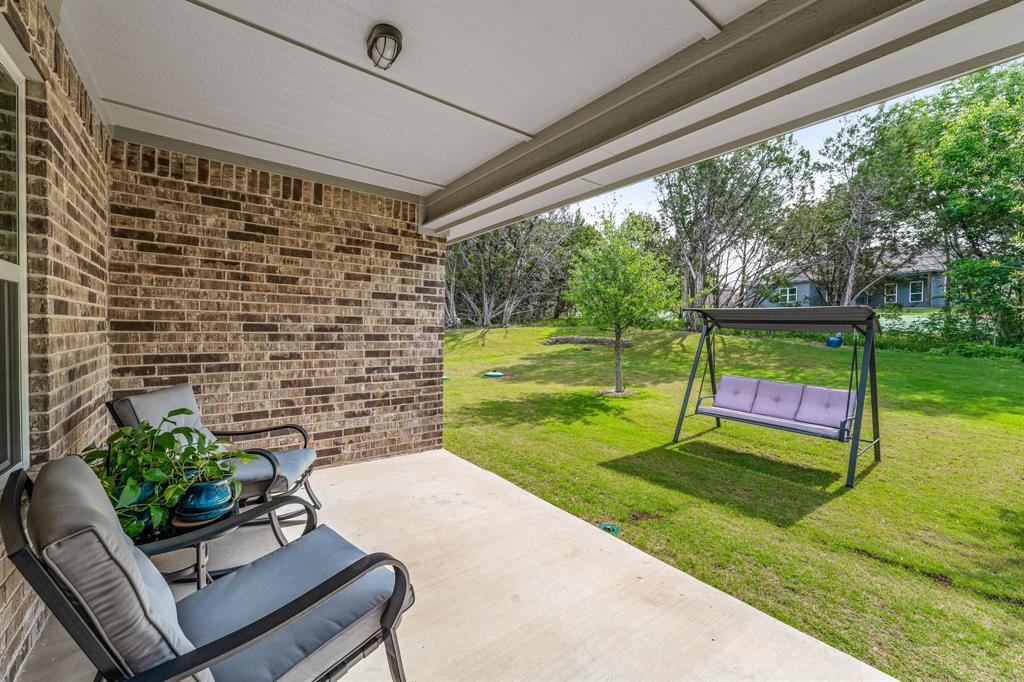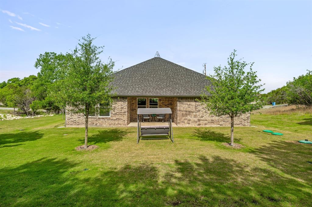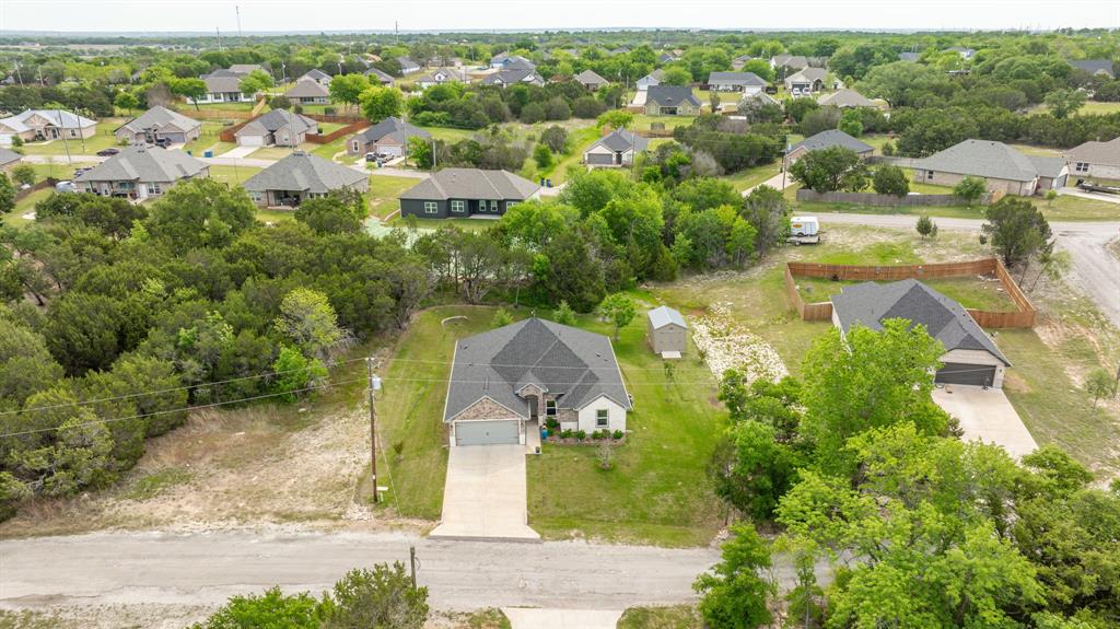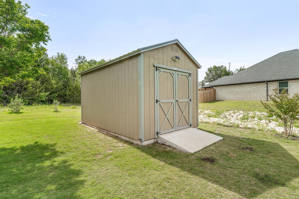 Immaculate home that has been extremely well taken care of. All brick-and-stone exterior equals lower maintenance for years—paired with energy-smart systems and a premium privacy lot with enhanced spacing from neighboring homes, a rare advantage in this neighborhood, which creates a calm, uncrowded setting for everyday living. You also have the enjoyment of the sounds of the nearby creek when it rains. This 4-bedroom Canyon Creek home checks every box. Built just over 2 years ago by a respected local Granbury builder and kept in immaculate condition, it blends modern comfort with easy upkeep and a transferable builder’s warranty for added peace of mind. Inside, enjoy easy-care tile floors throughout and a bright, open layout. The kitchen features sleek, modern appliances, granite counters, abundant soft-close cabinetry, and excellent prep and storage space. The private primary suite includes a double-vanity bath, a large walk-in closet plus a second bonus closet. Three additional bedrooms are generously sized with excellent natural light and ample storage. Designed for efficiency and convenience: fully encapsulated spray-foam insulation, which means lower utilities bills for buyers, LED lighting, smart thermostat, energy-efficient windows, insulated garage door with exterior keypad, wrapped water heater, whole-home surge protector, Ring doorbell, and exterior sensor lights. Storage shines—inside and out—including a 10' x 16' x 8' on-site built shed on slab. Out back, unwind on the patio and soak up morning sunrises and evening breezes with green space around you for a true sense of privacy. The property sits near the community’s front gate for easy in-and-out and is close to shopping and local eateries. Canyon Creek amenities complete the lifestyle: two swimming pools, pickleball & basketball courts, lake access, and a marina on Lake Granbury. A rare combination of low-maintenance quality, energy efficiency, and a tucked-away setting—move-in ready and waiting.