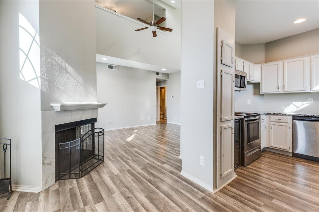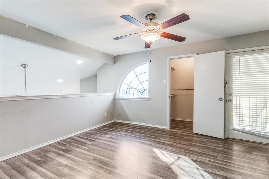Contemporary second & third floor unit with vaulted ceilings. Master bedroom is loft overlooking the living room. Hardwoods, ceiling fans throughout, fireplace, covered parking, stackable washer & dryer, balcony with storage.