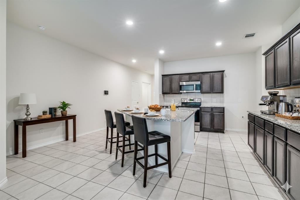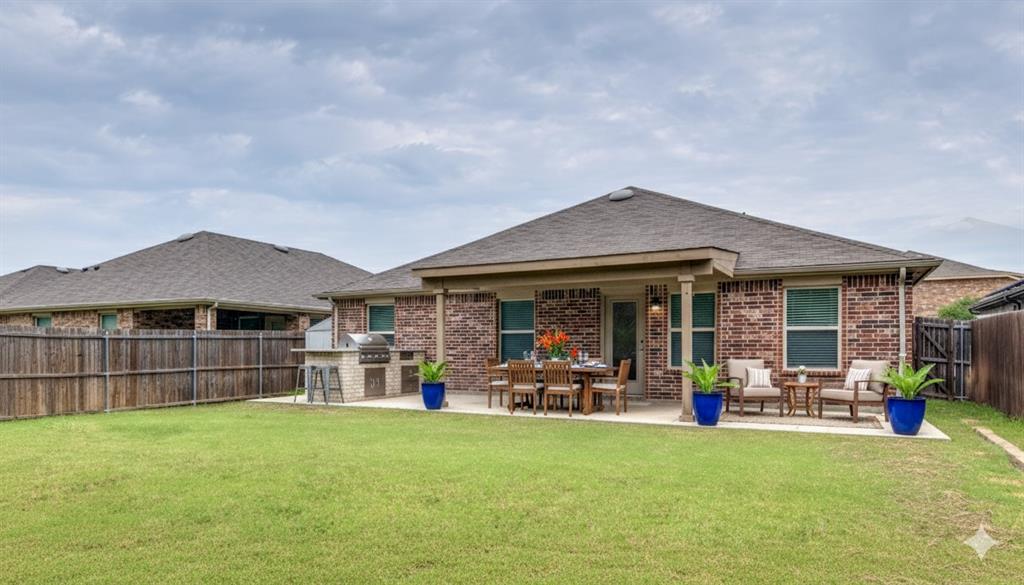Beautifully Maintained Home in Travis Ranch. Welcome home to this charming 4 bedroom, 2 bath residence, perfectly situated in the sought after resort style community of Travis Ranch. This thoughtfully designed home showcases an open concept floor plan with a bright and spacious living and dining area. The kitchen is a true centerpiece, featuring granite countertops, stainless steel appliances, ample cabinetry, a large island, and a breakfast bar ideal for both everyday living and entertaining. The private primary suite offers a relaxing retreat with a walk in closet and a spa inspired bath complete with an oversized shower. Three additional bedrooms provide plenty of space for family, guests, or hobbies. Enjoy outdoor living on the covered patio with an extended concrete area, overlooking a serene tree lined backdrop. Travis Ranch offers exceptional community amenities including a pool, park, and playground. Conveniently located near Lake Ray Hubbard with easy access to major highways, shopping, and dining. Not to be missed are the electrical upgrades. Light switches are touch buttons, some dimmable, hardwired LED lights above the front door and in the kitchen for over counter and above cabinet lighting dimmable and color selection. Security camera and the video door bell also included.