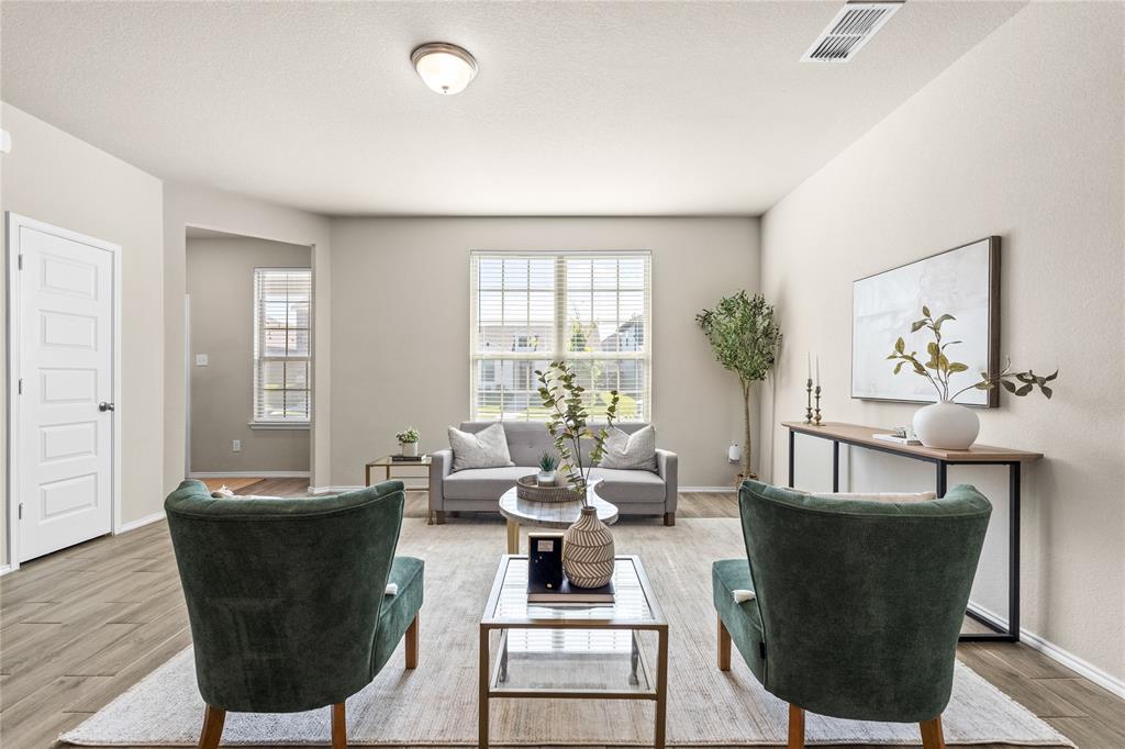 Outside, enjoy a rear-entry driveway that backs to a tranquil field of mature trees where deer frequently roam, providing nightly views of unforgettable Texas sunsets. The neighborhood itself is a true gem, offering a large community park, dog park, and walking trails along a serene creek—creating an unbeatable combination of nature and neighborly charm.