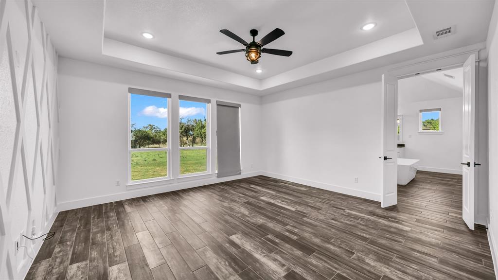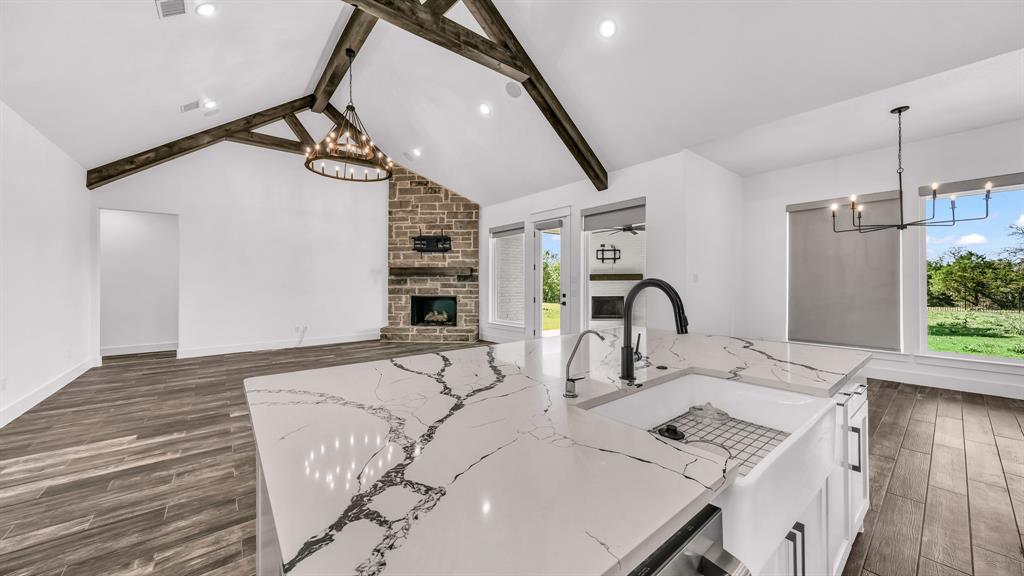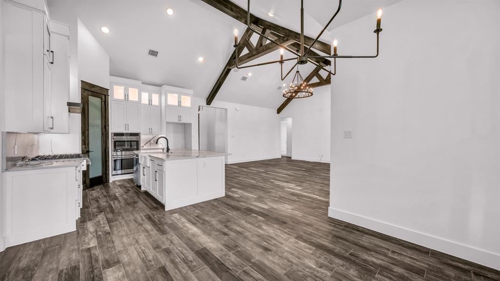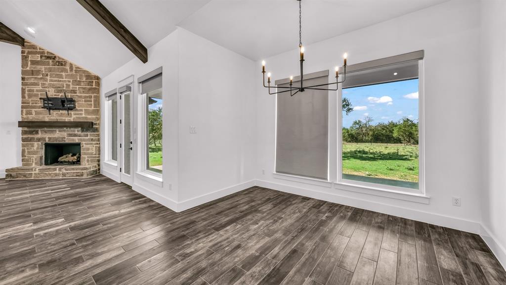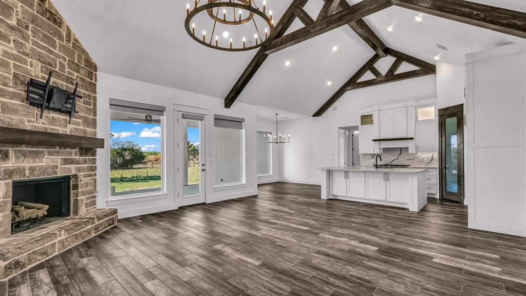 Welcome to your dream home nestled on a picturesque, tree-filled 2-acre lot in beautiful Parker County. This stunning property offers the perfect blend of rustic elegance and modern comfort with its open-concept layout, soaring vaulted ceilings, and exposed wooden beams that create a warm and inviting atmosphere.