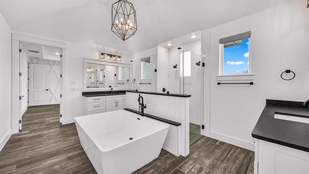 The oversized primary suite is your private retreat, boasting a luxurious bathroom with ample space, dual vanities, and a spa-like ambiance. Surrounded by beautiful trees, the property offers both privacy and tranquility, while still being conveniently located near town amenities.
