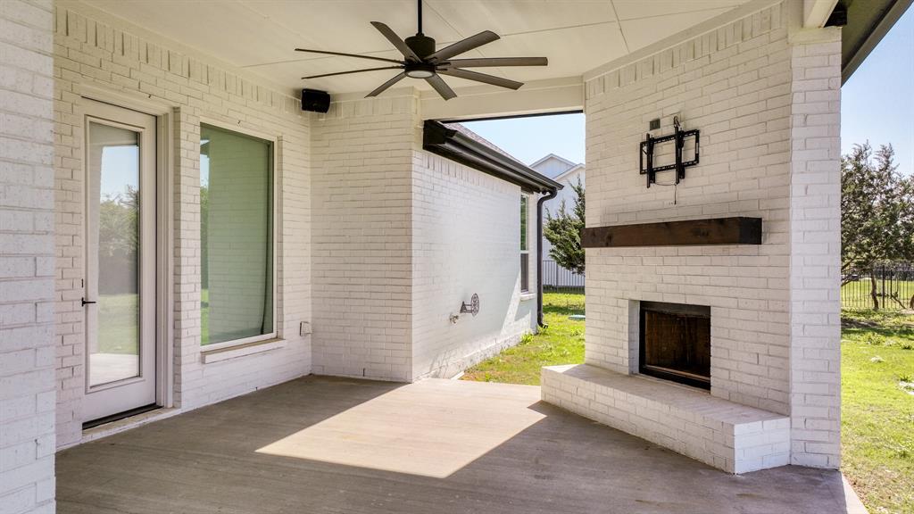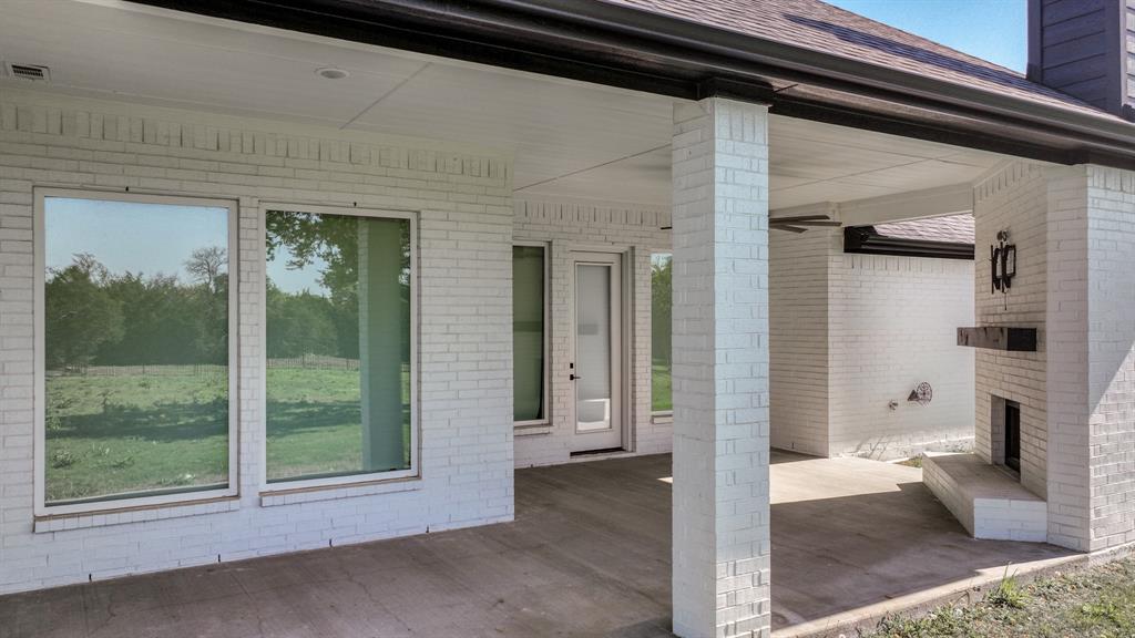 The heart of the home extends outdoors to a covered back patio featuring a wood-burning fireplace, perfect for relaxing evenings under the stars.