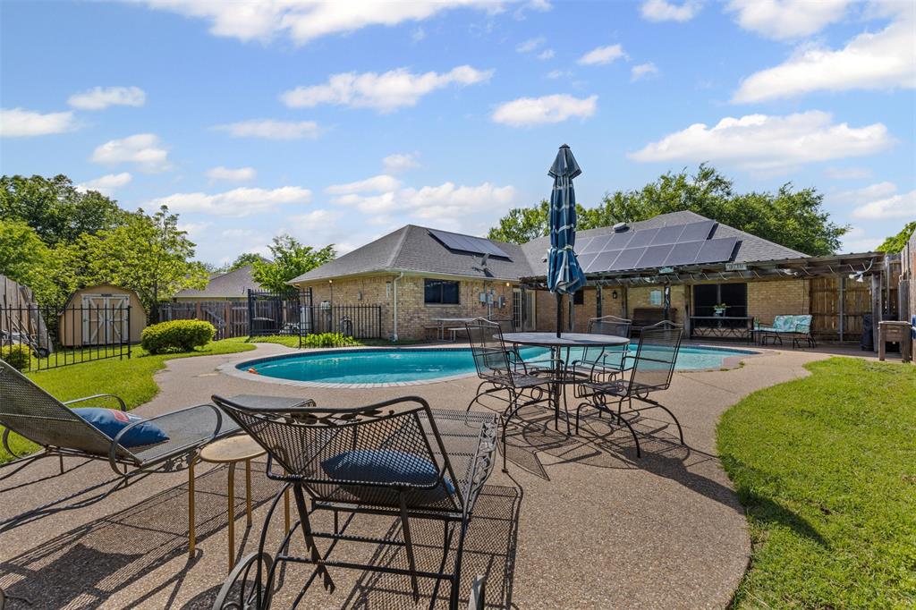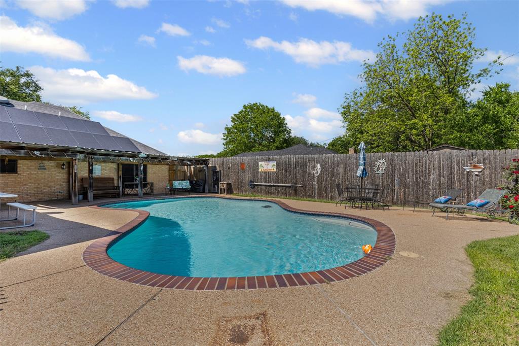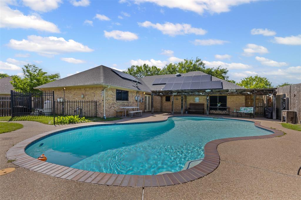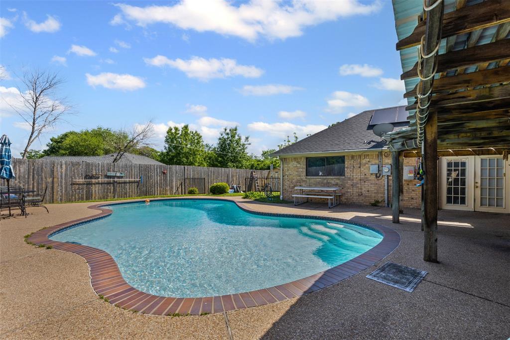Experience this beautiful 5-bedroom, 2-bath residence nestled in a serene cul-de-sac in Cleburne. This charming property offers an ideal combination of style, comfort, and efficiency, making it a perfect haven for those seeking both tranquility and convenience. Step inside to find a spacious welcoming living room, where plantation shutters accentuate the home and a cozy fireplace sets the perfect ambiance for relaxation and gatherings. The original garage has been expertly converted into an expansive 4th and 5th bedrooms. The heart of the home features an updated kitchen, seamlessly flowing into the dining area-ideal for hosting dinner parties or casual family meals. As you head through the back door, you will find your own private oasis complete with a gorgeous pool, perfect for unwinding after a long day or entertaining guests on warm Texas evenings. In addition to its stunning aesthetic and abundant space, this home offers unparalleled energy efficiency with its installed, AND COMPLETELY PAID OFF, solar panels. Imagine saying goodbye to electric bills and enjoying sustainable, cost-effective living all year round. The roof is just about 10 years old, and the home has a brand new HVAC system to boot. The home sits in a superb neighborhood, offering peace and security at the end of a quiet cul-de-sac. Discover the myriad of advantages this home presents and make your dreams a reality.
