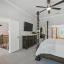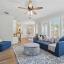 Inside, natural light fills the spacious layout designed for both relaxing and hosting. Thoughtful details include plantation shutters, reclaimed wood accent walls in the entry and dining room, a cozy gas-log fireplace, and custom built-ins in the front living area—ideal as a home office or study. The well-equipped kitchen features recently replaced double ovens, microwave, dishwasher, a smooth cooktop, and a beverage fridge to make cooking and cleanup a breeze. All mounted TVs will convey, adding extra value and convenience.
