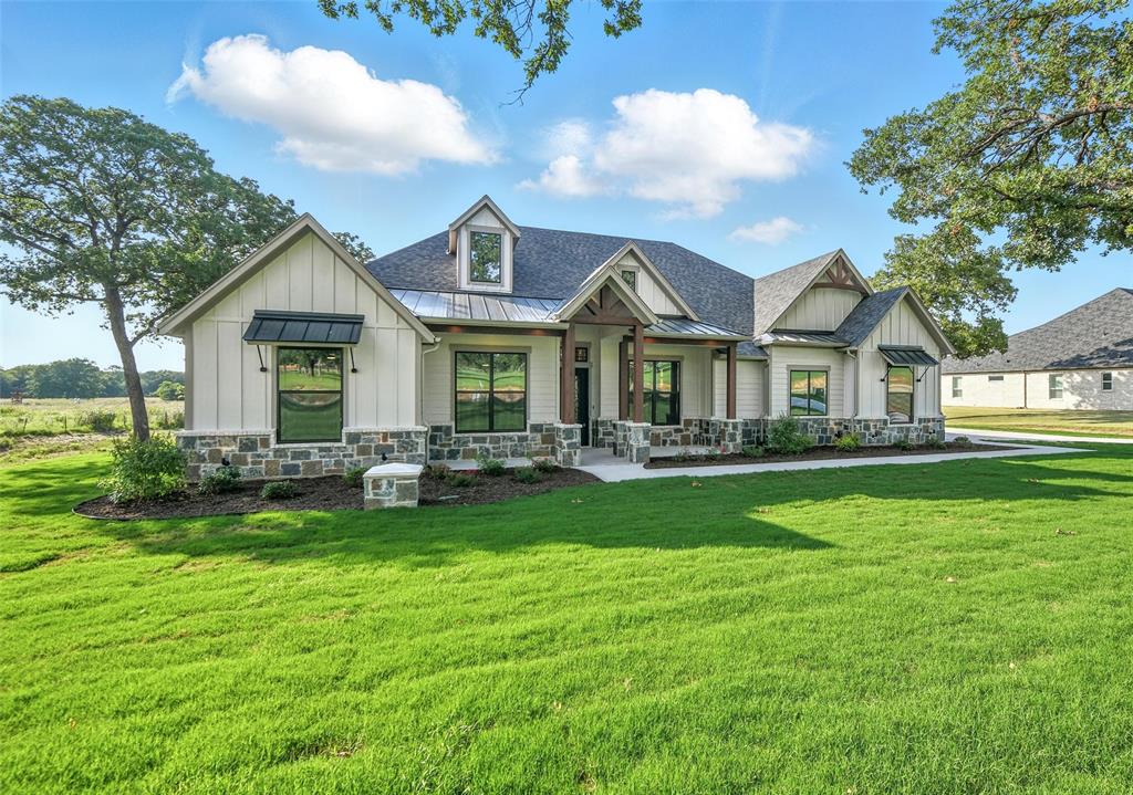 Step into this modern farmhouse beauty that is surrounded by serene nature and situated on just over 4 acres. This stunning 4 bedroom 3 and a half bathroom Bailee home boasts sleekness, style and quality details. Making entertaining a breeze with the gorgeous kitchen is adorned with beautiful custom cabinetry with soft close hinges, brass gooseneck sink and brass hardware, huge island with quartz counters, gas cooktop, double ovens and a generous walk in pantry. Exposed wood beams and floating shelves in main living area for warmth and character and a decorative fireplace for this chilly nights. Massive sliding glass doors that connects the indoor space to the oversized patio complete with an outdoor fireplace. With spa level vibes and modern aesthetics the primary bath features a glass enclosed wet room. The second living area has a gorgeous vaulted and beamed ceiling and an incredible view of the expansive lot. Adding additional value to this amazing home is the foam encapsulation, private well, recirculating hot water heater, no city taxes and quality craftsmanship.