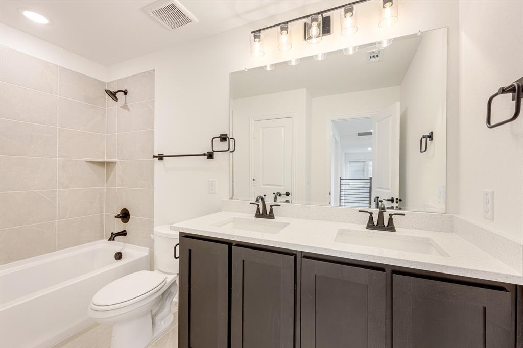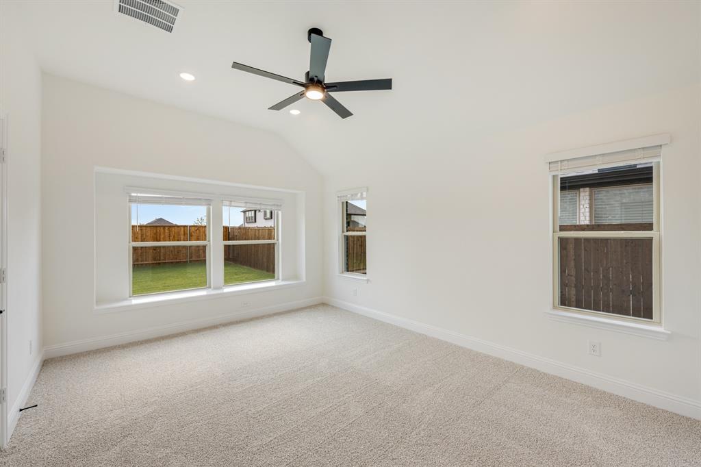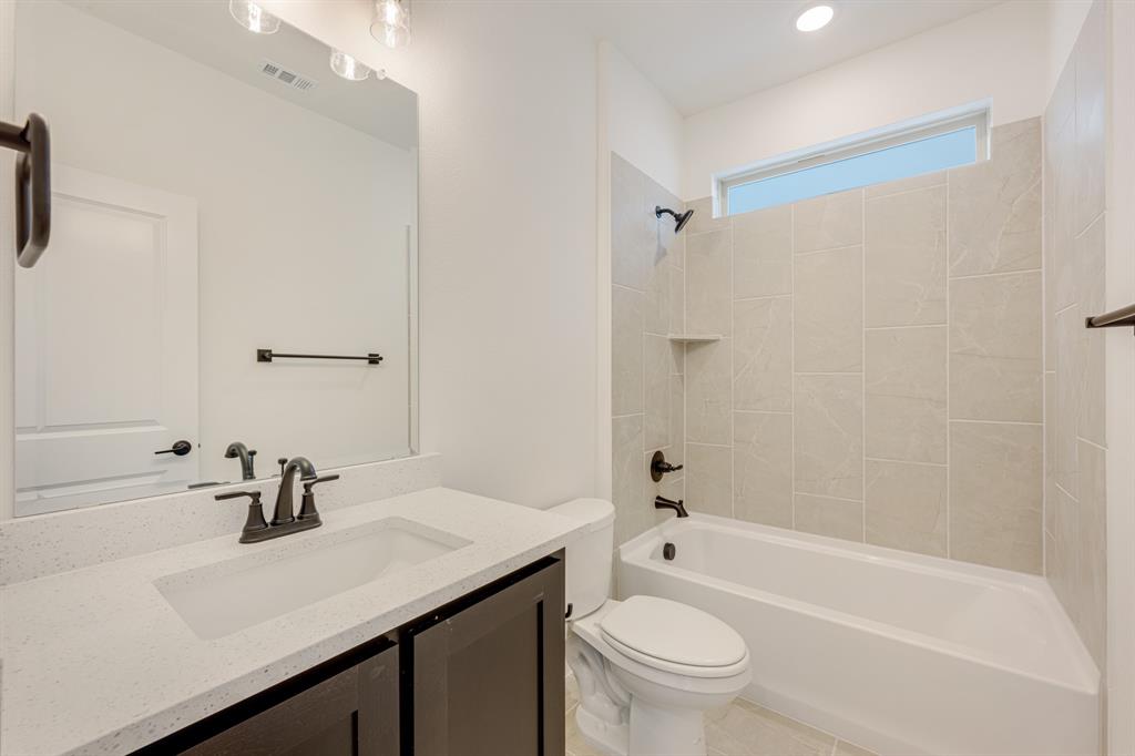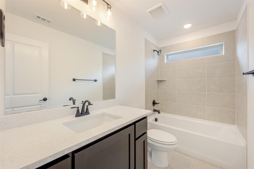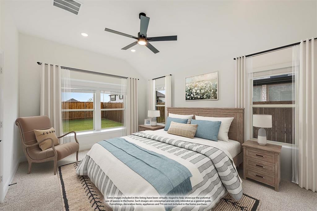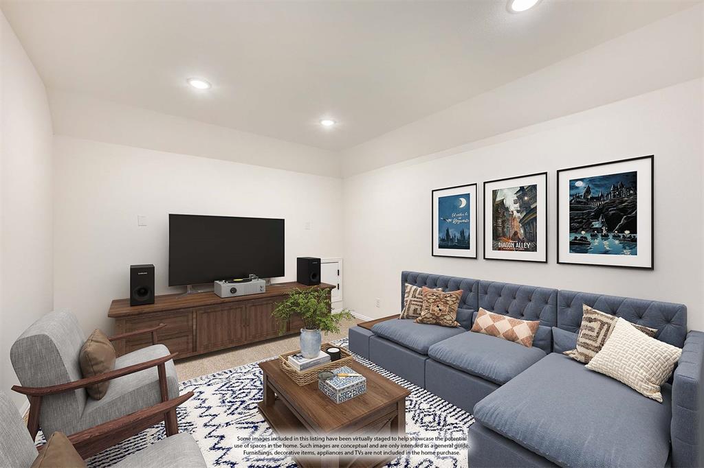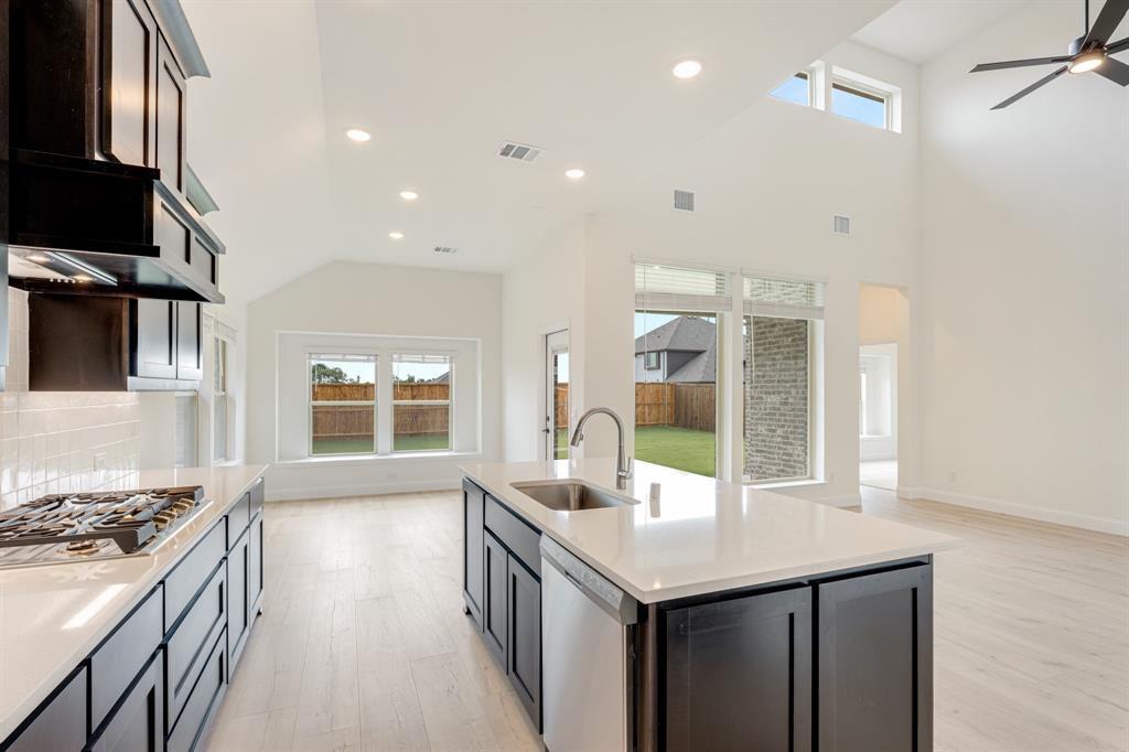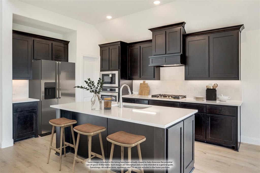 NEW! NEVER LIVED IN. Introducing the Violet IV floor plan, a breathtaking two-story home perfectly designed for modern living with 5 bedrooms and 4 baths. Set on an interior lot, this home showcases a stunning all-brick facade and a grand 8' Warwick Front Door for an impressive entrance. Entertain in style in the elegant Formal Dining Room or relax on the spacious Covered Porch. The Deluxe Kitchen, a chef’s dream, features Shaker-style cabinetry, upgraded Quartz countertops, a custom backsplash, wood vent hood, pot and pan drawers, under-cabinet lighting, and stainless steel appliances including a gas cooktop—all accentuating the space’s form and function. Laminate Wood floors flow through all main living areas, blending seamlessly with vaulted ceilings, stylish electrical upgrades, and designer tile and carpet selections throughout. Added touches like 2-inch faux wood blinds, window coverings, and charming window seats enhance comfort and visual appeal. Retreat to the luxurious Primary Suite with an ensuite bath featuring Quartz countertops in all bathrooms and a walk-in closet, while upstairs, the Game Room and Media Room offer flexible space for entertainment. A spacious mud room with a built-in bench, gutters, a tankless water heater, and a gas drop on the patio for grilling round out the home’s thoughtful features. Located in an amenity-filled community with a clubhouse, playground, and more—this Violet IV plan delivers elegance, convenience, and comfort at every turn.