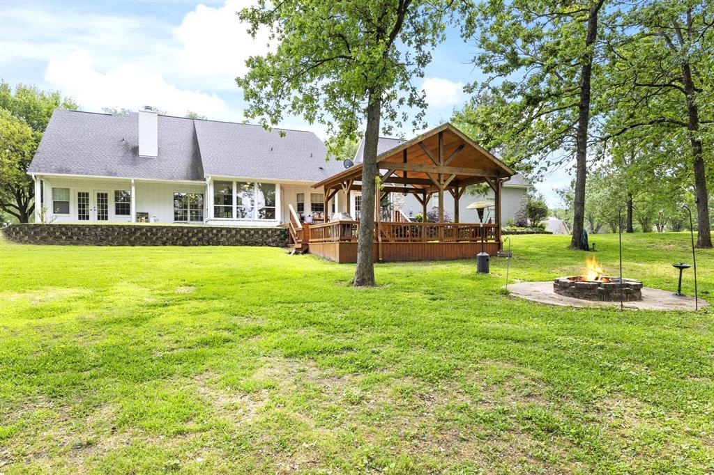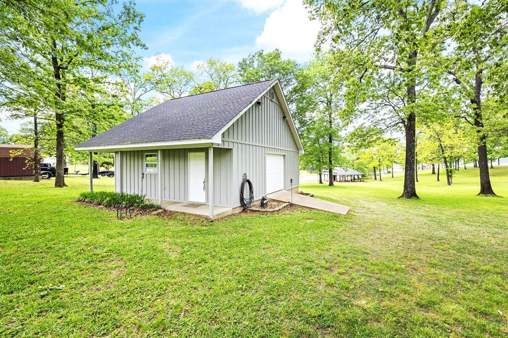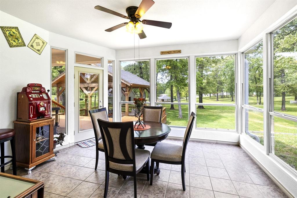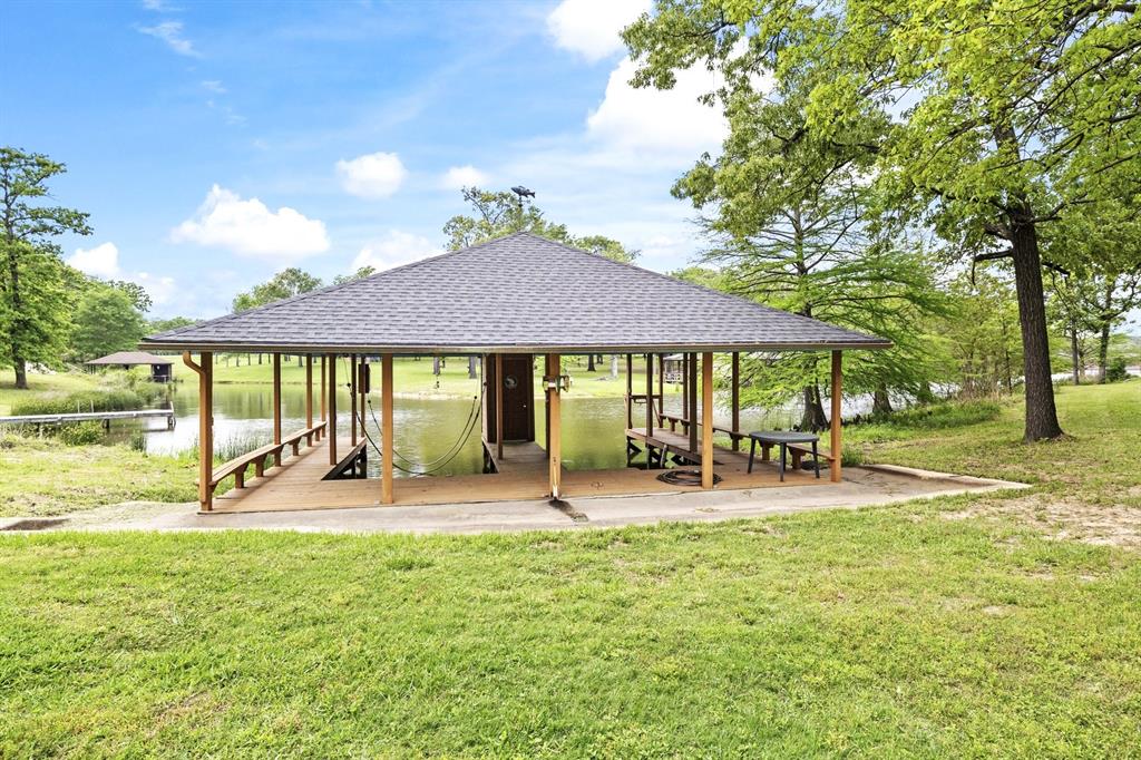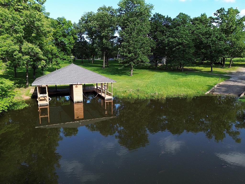 A rare opportunity on the legendary shores of Lake Fork! Nestled in a protective cove within Lake Fork Country Club Estates& golf course, this waterfront ranch-style home offers over 3 manicured acres with 450+ feet of private shoreline. Whether you're an avid angler, boating enthusiast, or simply seeking peace, this property delivers. The custom-built 3,136 sq. ft. home blends elegance & comfort, featuring cathedral ceilings, a floor-to-ceiling stone fireplace, crown molding, plantation shutters, recessed lighting, & hardwood, tile, & carpeted floors. Large windows offer scenic lake & tree views, while a cozy wet bar adds charm to the living space. The functional kitchen opens to the living area & includes stainless steel appliances including a conventional oven that is also convection & an air fryer, Corian countertops, ample cabinetry, & recessed lighting. A beautiful sunroom invites you to savor morning coffee or evening wine with lake views. The spacious primary suite includes a double recessed ceiling, crown molding, sitting area, ceiling fan, &lake views. The en-suite bath boasts a walk-in shower, jetted tub, private lavatory, dual vanities, and a well-lit walk-in closet. A private office makes working from home at the lake a pleasure. The guest bedroom includes its own bath, plantation shutters, and a ceiling fan. Above the garage is a private third suite, ideal for guests or extended stays is complete with a kitchenette, bathroom, space for a king bed, & even a workout area. This separate suite is accessed via an enclosed breezeway. Outdoor features include a double-slip boathouse, a 24’ x 28’ workshop, & inviting spaces for entertaining. With both lake and golf course access, this is more than a house, it’s a lifestyle. Could this be your next home?