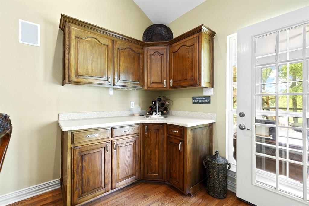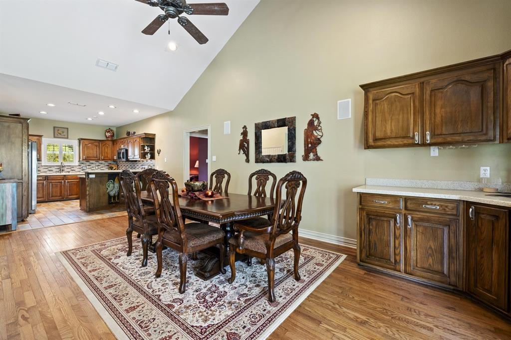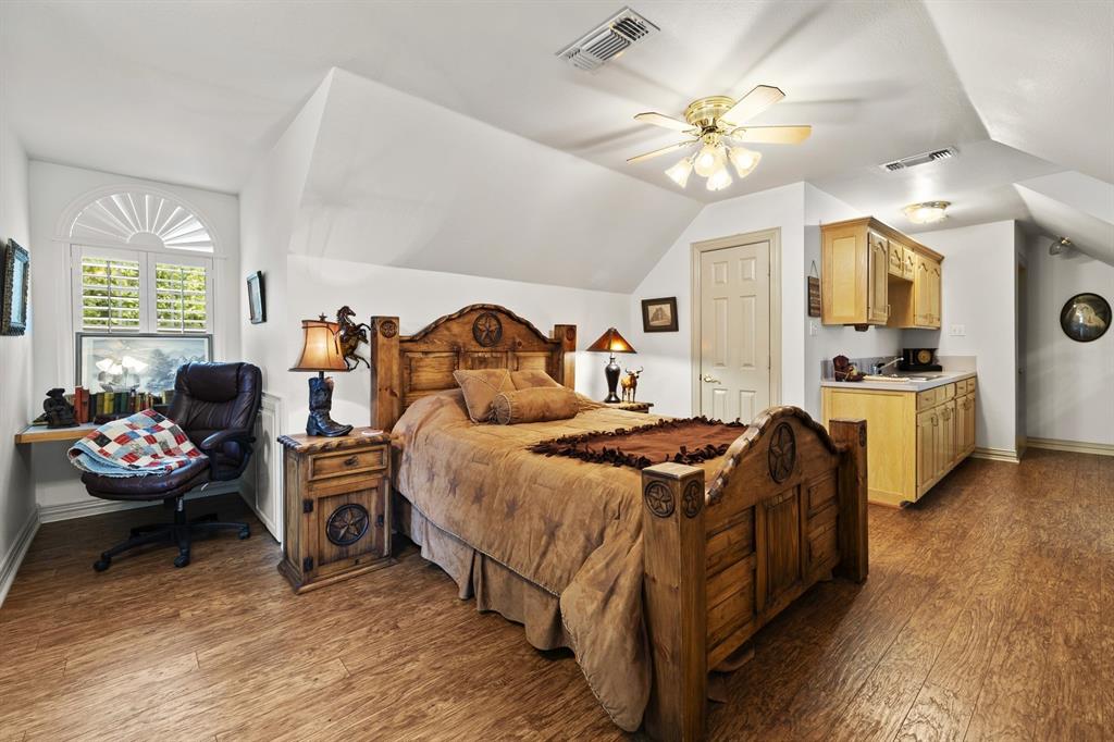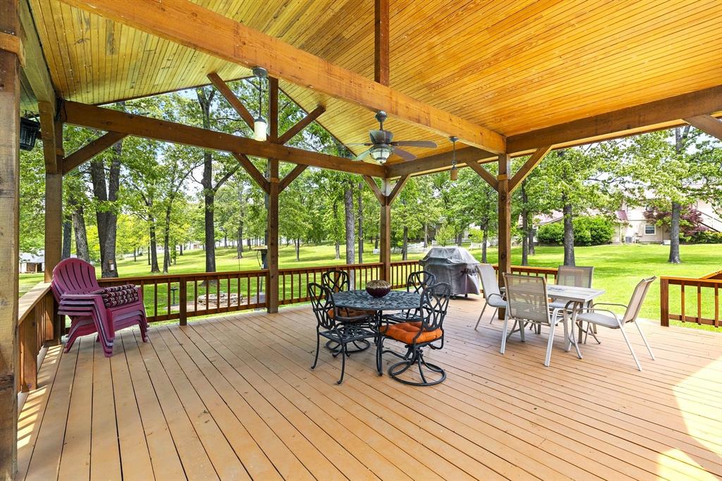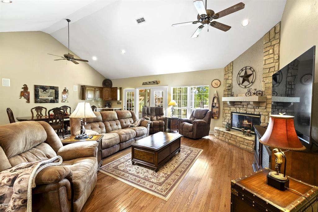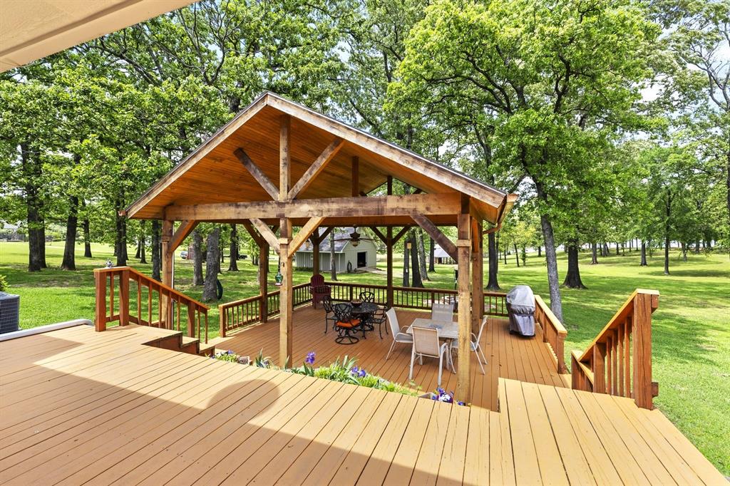 A rare opportunity on the legendary shores of Lake Fork! Nestled in a protective cove within Lake Fork Country Club Estates& golf course, this waterfront ranch-style home offers over 3 manicured acres with 450+ feet of private shoreline. Whether you're an avid angler, boating enthusiast, or simply seeking peace, this property delivers. The custom-built 3,136 sq. ft. home blends elegance & comfort, featuring cathedral ceilings, a floor-to-ceiling stone fireplace, crown molding, plantation shutters, recessed lighting, & hardwood, tile, & carpeted floors. Large windows offer scenic lake & tree views, while a cozy wet bar adds charm to the living space. The functional kitchen opens to the living area & includes stainless steel appliances including a conventional oven that is also convection & an air fryer, Corian countertops, ample cabinetry, & recessed lighting. A beautiful sunroom invites you to savor morning coffee or evening wine with lake views. The spacious primary suite includes a double recessed ceiling, crown molding, sitting area, ceiling fan, &lake views. The en-suite bath boasts a walk-in shower, jetted tub, private lavatory, dual vanities, and a well-lit walk-in closet. A private office makes working from home at the lake a pleasure. The guest bedroom includes its own bath, plantation shutters, and a ceiling fan. Above the garage is a private third suite, ideal for guests or extended stays is complete with a kitchenette, bathroom, space for a king bed, & even a workout area. This separate suite is accessed via an enclosed breezeway. Outdoor features include a double-slip boathouse, a 24’ x 28’ workshop, & inviting spaces for entertaining. With both lake and golf course access, this is more than a house, it’s a lifestyle. Could this be your next home?