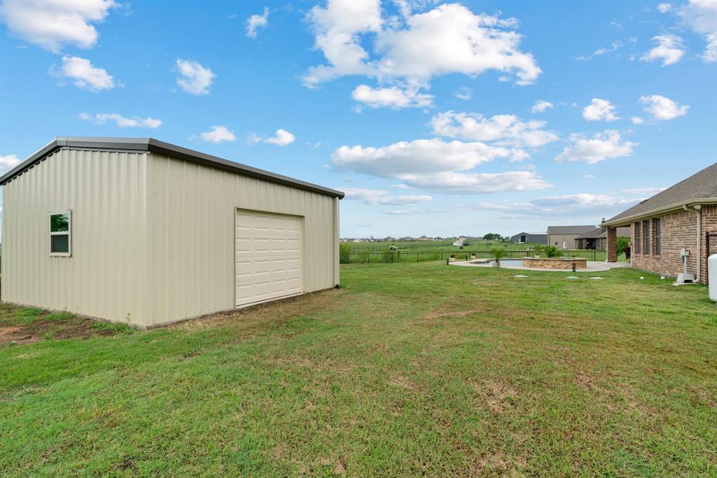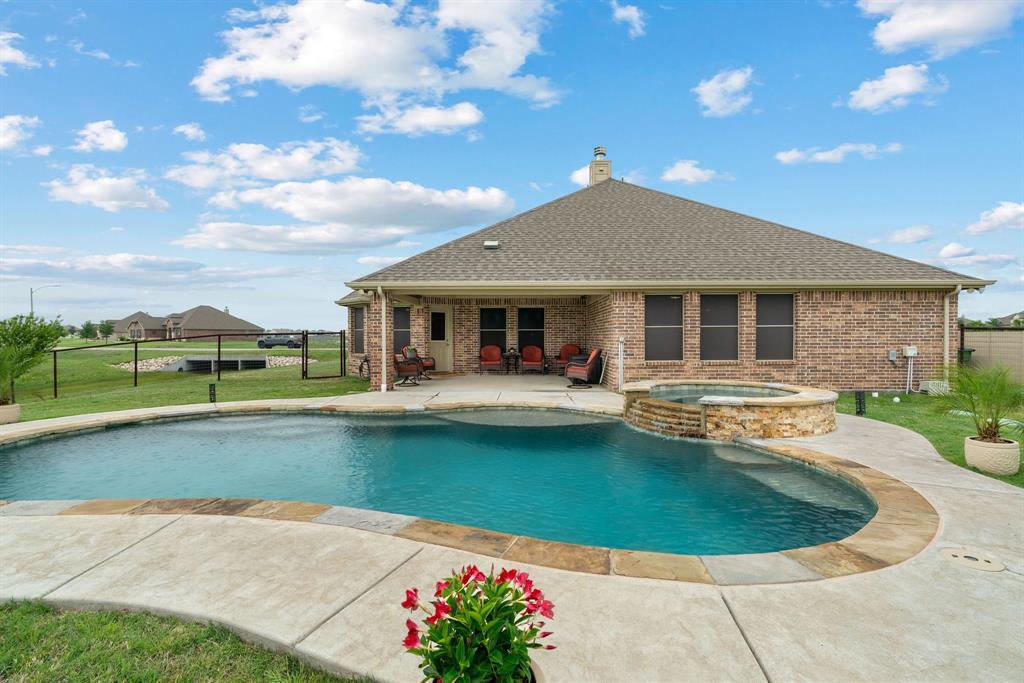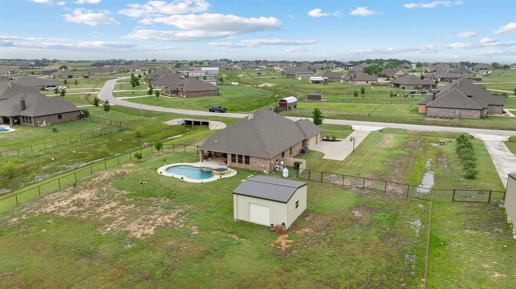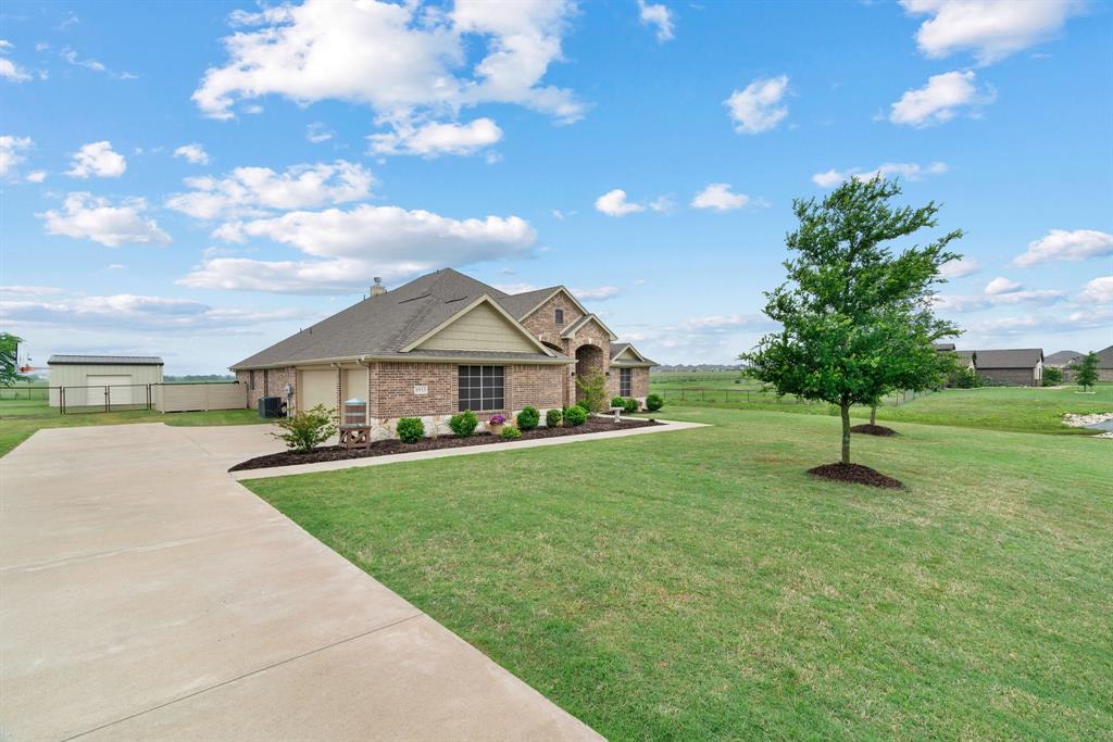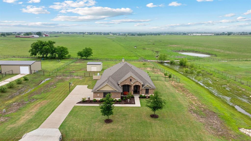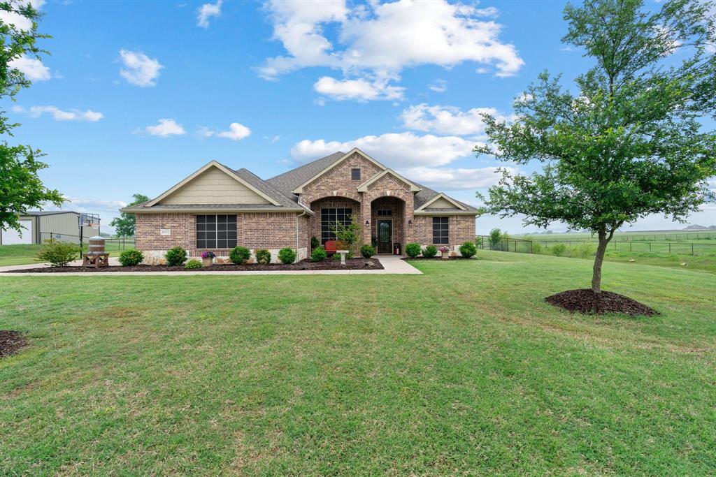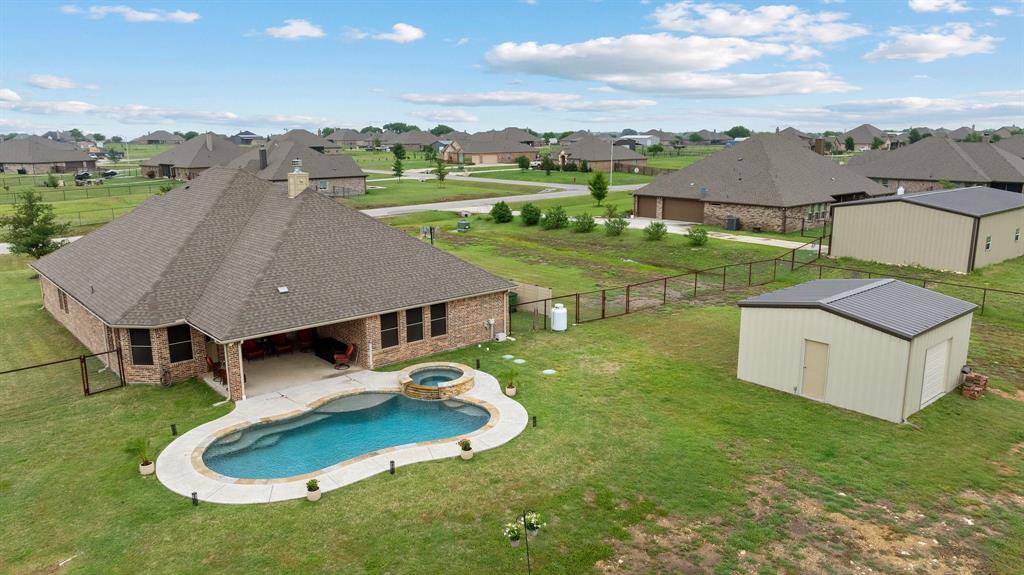 Welcome to the ultimate winning ticket! This exceptional property is a true trifecta — offering a beautiful home, a fully equipped 20x20 shop, and a sparkling saltwater pool — all perfectly positioned to lead you straight to the winner’s circle. This stunning 4-bedroom, 3-bath ranch-style home sits on 1.4 acres, offering unobstructed views of a pristine 160+ acre ranch. The open-concept kitchen, dining, and living spaces are perfect for both everyday living and entertaining. The kitchen is truly a chef’s dream, anchored by an impressive 11+ foot island that invites family and friends to gather around. Elegant crown molding, a grand corner fireplace, and exquisite crown molding details complete the large living room. Enjoy privacy with a split-bedroom layout and take advantage of the spacious office — ideal for remote work, with high-speed fiber internet already in place. Step outside to your private backyard oasis featuring a gorgeous saltwater pool and attached spa, finished with a durable and elegant PebbleTec bottom. Car enthusiasts and hobbyists alike will appreciate the oversized 3-car-attached garage and the additional 20x20 shop, complete with 110 electricity and dual roll-up doors to let the fresh country breeze flow through. This property offers the perfect blend of luxury, comfort, and functionality — all with breathtaking country views just beyond your backyard. Don’t miss your chance to bet on a sure thing.