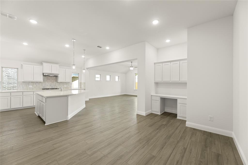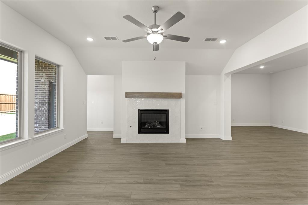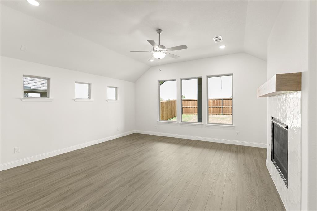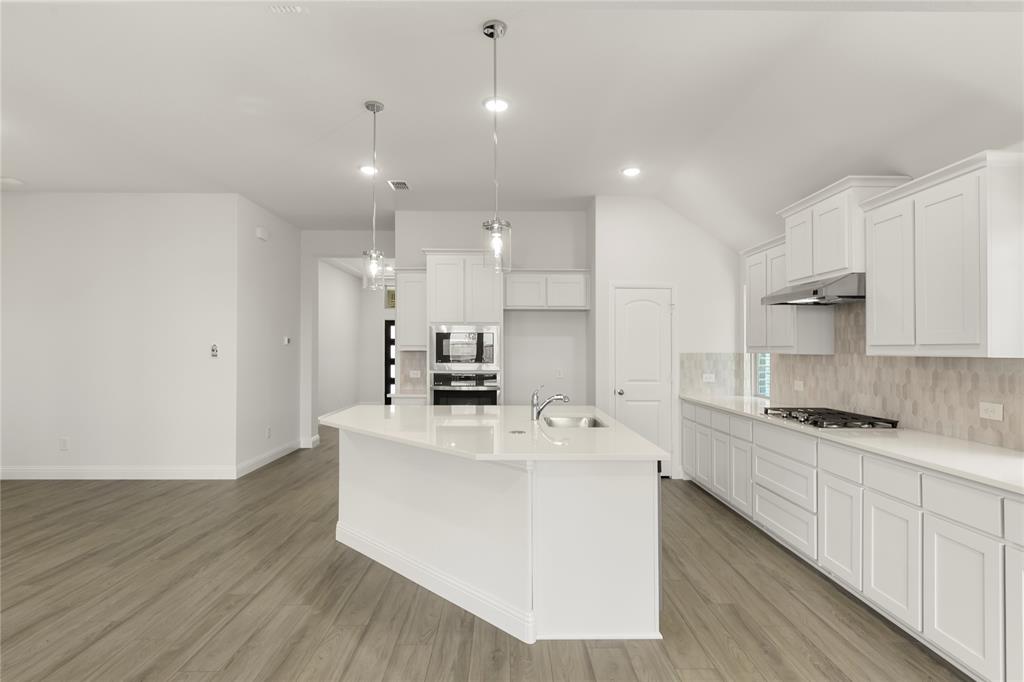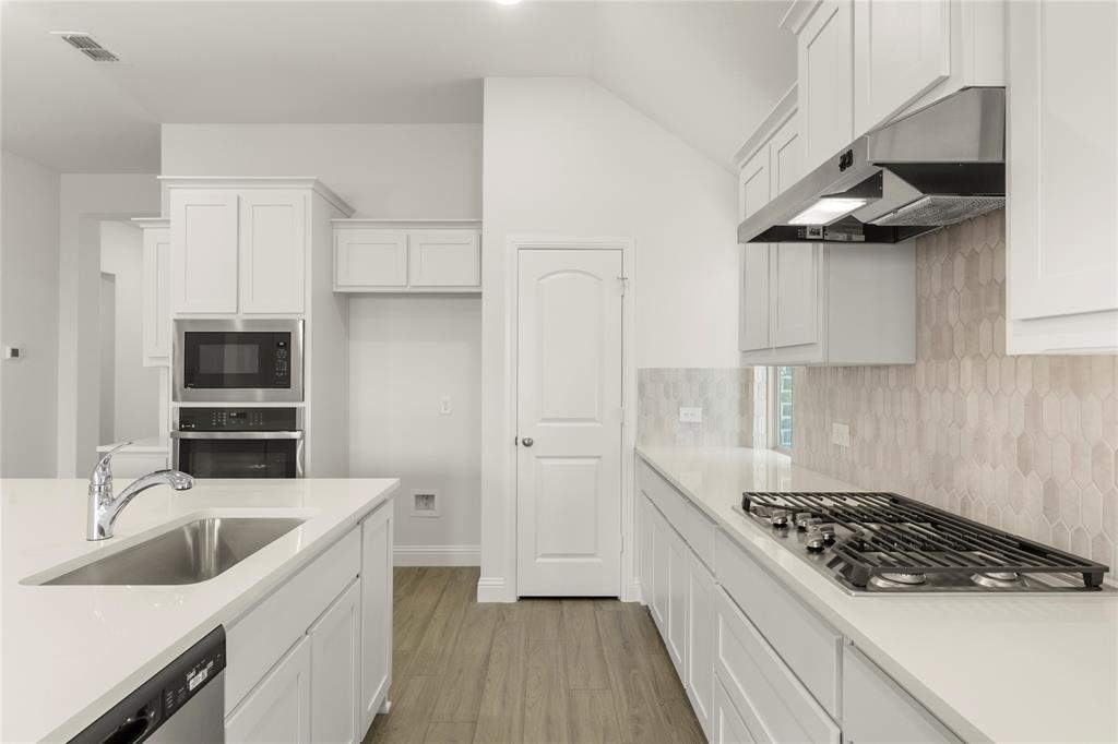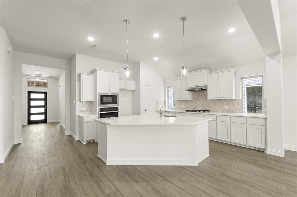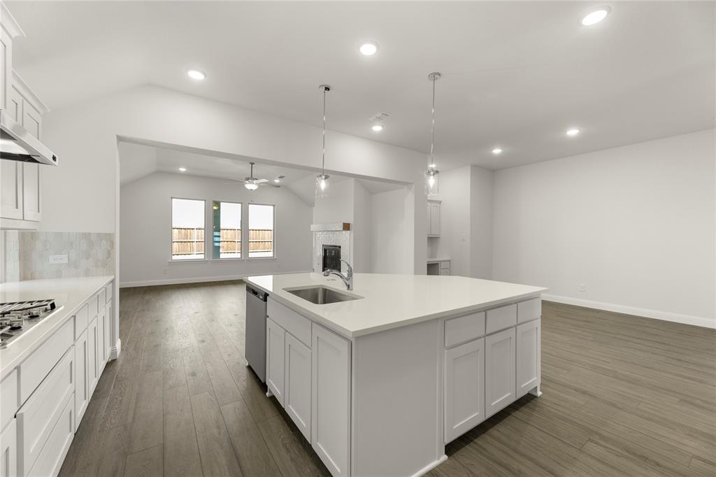 MLS# 20916577 - Built by Pacesetter Homes - Ready Now! ~ This beautifully designed 4-bedroom, 2-bath home with a 2-car garage offers a perfect blend of style and functionality. The open-concept floor plan is filled with natural light, thanks to upgraded windows in the family room, creating a bright and inviting space. A cozy fireplace adds warmth and charm, making it the perfect spot to gather.The deluxe kitchen is a chefs dream, featuring shaker-style white painted cabinets, a gas cooktop, built-in appliances, and quartz Frost White countertops. Thoughtful upgrades like a pull-out trash can drawer, a deep pot-and-pan drawer, and a stunning mosaic tile backsplash add both convenience and elegance.The spacious primary suite is a private retreat with a walk-in closet and a spa-like en-suite bath with dual vanities. Three additional bedrooms provide plenty of space for family, guests, or a home office.Luxury vinyl plank flooring runs throughout the main living areas, combining durability with a modern look. A covered patio extends the living space outdoors, perfect for relaxing or entertaining. Located in the highly-sought after Elevon community, this home is just around the corner from the upcoming Amenity Center, which will include a pool with tanning ledge, splash pad, private cabanas, outdoor kitchen, clubhouse, playgrounds, and sports courts - including pickleball! Plus, enjoy miles of nature trails and the convenience of 1-gig fiber optic internet included in the HOA.Your Pacesetter Home comes equipped with a suite of smart feat