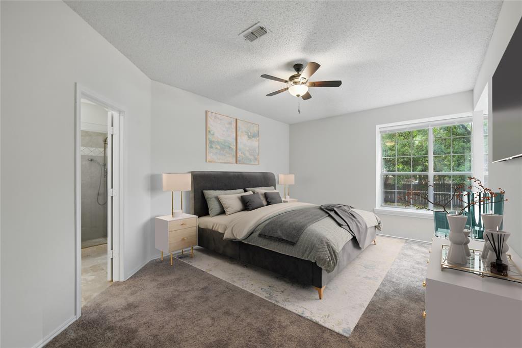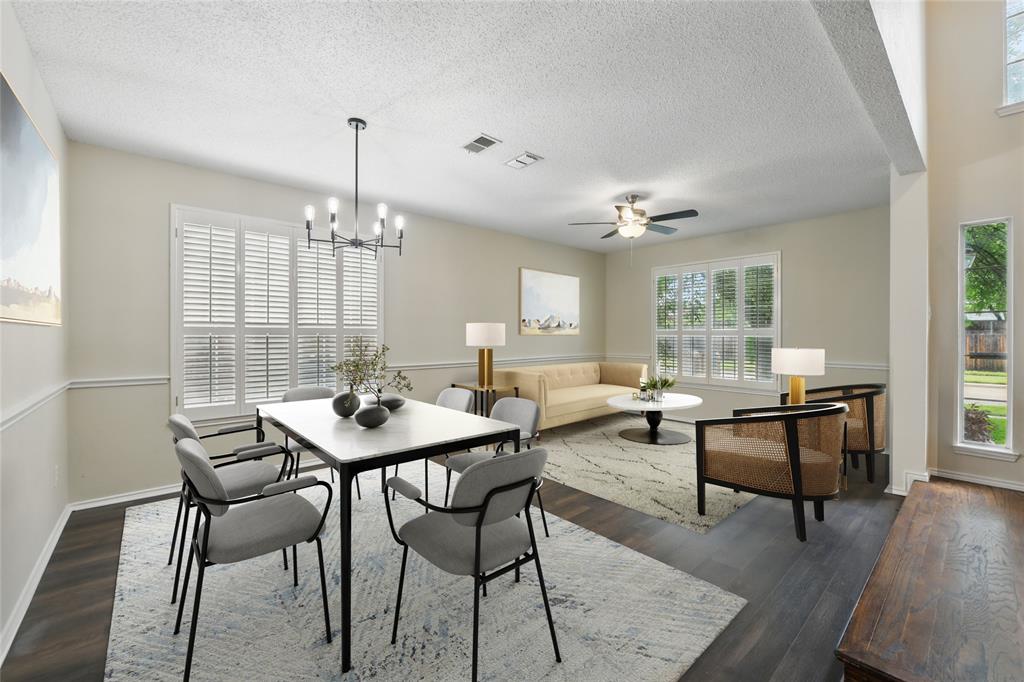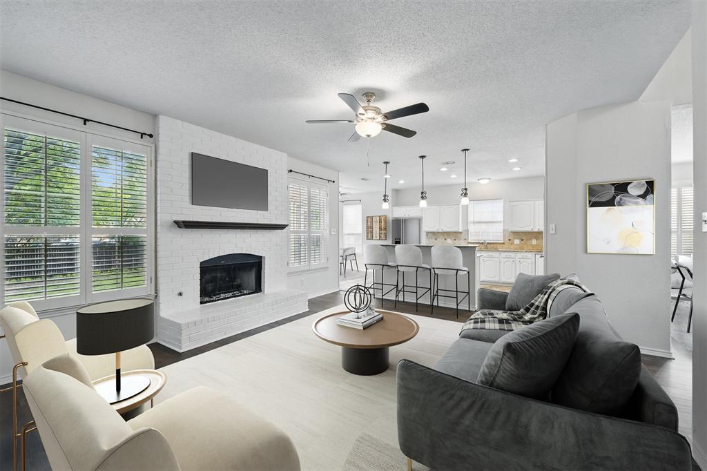 PEACEFUL TREED SETTING on this GORGEOUS 5 BEDROOM, 3.5 BATH HOME in the HEART OF FLOWER MOUND with NO HOA! You will feel right at home in this open-concept floor plan featuring fresh paint, plantation shutters, soaring ceilings, LED lighting & a floor-to-ceiling brick fireplace. The chef in your family will love the updated kitchen showcasing white cabinets, granite countertops, stainless steel appliances & a breakfast bar. Relax & recharge in the downstairs primary suite, complete with a frameless shower, jetted tub, dual sink granite vanity, wainscoting & a massive custom closet. Make great use of the upstairs offering a large game room, second primary bedroom & generous secondary bedrooms. Spend time outdoors in your large backyard boasting mature trees, a spacious patio, storage shed & plenty of room to play. Recently replaced carpet, ceiling fans, light fixtures, windows, HVAC unit, water heater, roof & flooring. Just 2 houses away from Possum Park in close proximity to the Flower Mound Community Activity Center, shopping & dining. Attends highly sought-after Flower Mound schools!
