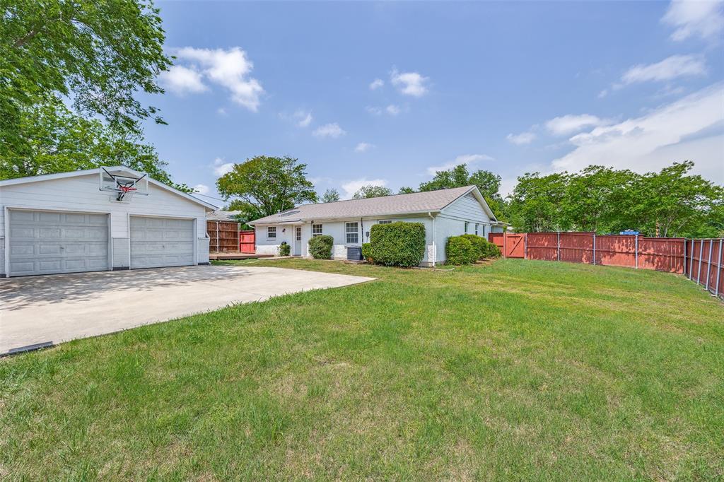 You'll love the beautifully renovated kitchen, featuring granite countertops, a breakfast bar, stainless steel appliances, and a gas range—perfect for culinary enthusiasts. Both bathrooms have been fully updated with modern finishes and granite counters, offering a clean and stylish touch. Natural light pours through the skylight and abundant windows, creating a warm and inviting atmosphere throughout. This home provides two spacious living areas, one being an oversized media room that offers endless possibilities for work, play, or relaxation. The dining area is conveniently located next to the kitchen, ideal for everyday meals or hosting gatherings. Step outside to enjoy a private backyard oasis, complete with a privacy fence, basketball hoop, automatic entry gate, detached 2 car garage and a wood deck overlooking the generous corner lot—plenty of room for outdoor activities and entertaining. Situated within walking distance to area schools, including Richardson High School, and located in a peaceful neighborhood, this home offers both convenience and comfort. Don't miss the opportunity to make this versatile and beautifully cared-for property your new home! Schedule your tour today!