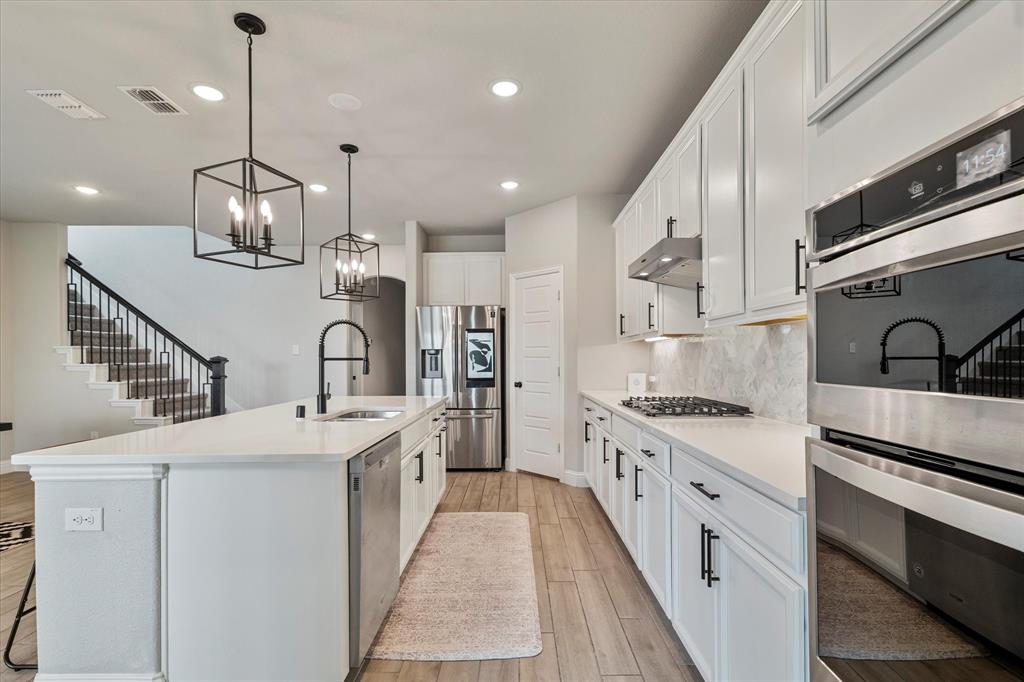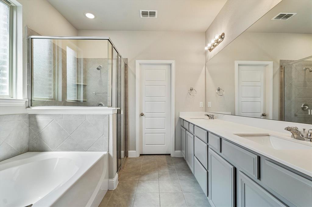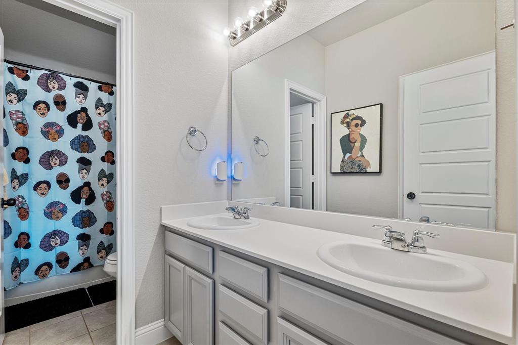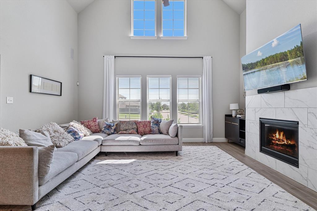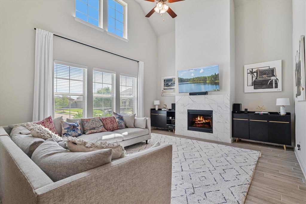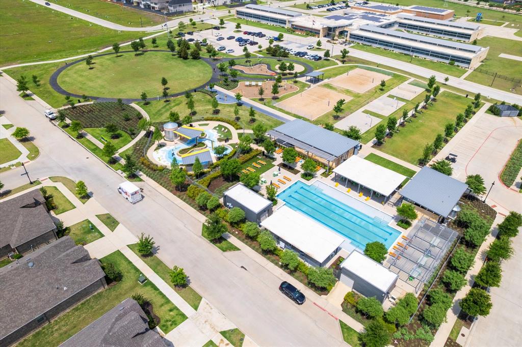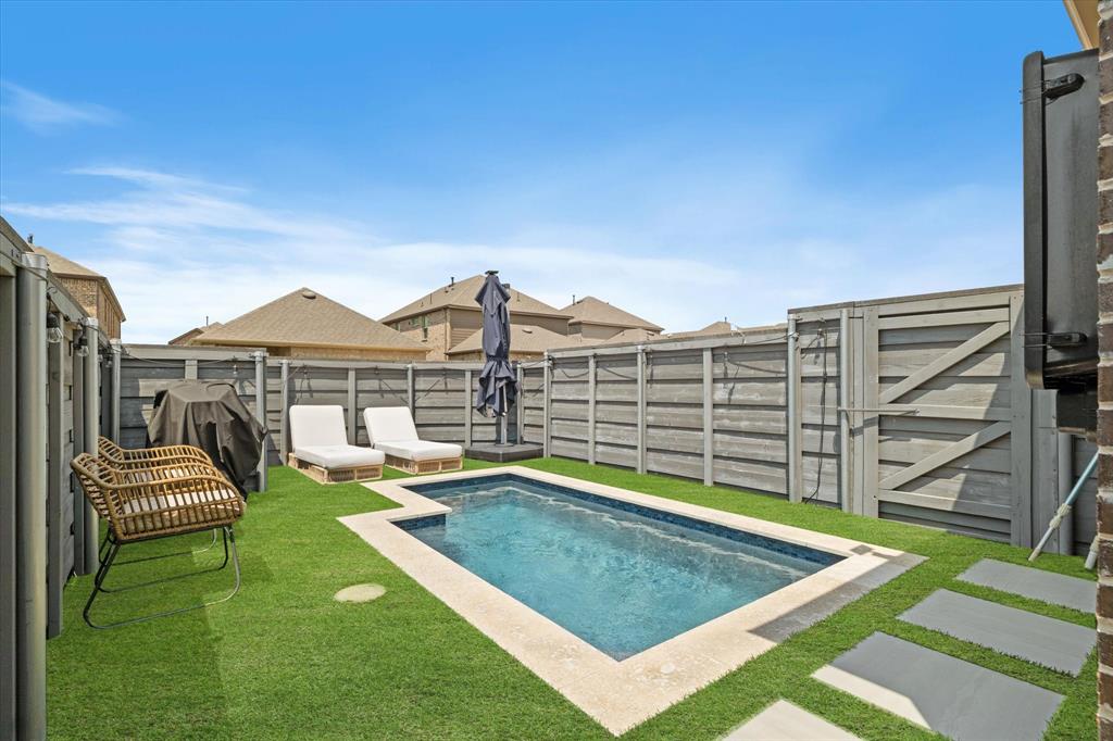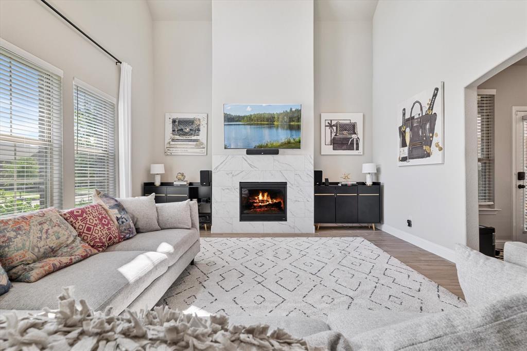 NEW PRICE! Step inside this stunning modern two story nestled in the desirable master-planned community of Union Park. Once inside you'll be greeted by sweeping wood-look tile floors which flow throughout the open-concept entertainment space. Gather with friends and family and create memories to last a lifetime in the inviting living room highlighted by a cozy gas fireplace. Make your way into the gourmet kitchen equipped with beautiful Quartz counter-tops, large island, gas cook-top, and Whirlpool stainless steel appliances. The main bedroom is thoughtfully positioned on the first floor and offers a tranquil ensuite bath with dual sinks, relaxing soaking tub, separate shower and walk-in closet. Make your way upstairs where you'll find an expansive game room and a fully equipped media room with a 160 ft. movie screen and 8 built-in speakers, making movie nights at home a cinematic dream. You'll also find three bedrooms which share a well-appointed full bath. Enjoy the outdoors in your private backyard with low maintenance turf grass and a sparkling pool. The HOA handles front yard maintenance! Don't miss the electric car charge wiring already installed in the garage. Take full advantage of the exceptional amenities Union Park has to offers with an on-site Elementary school, several swimming pools, playgrounds, parks, sports courts, fitness center and much more.