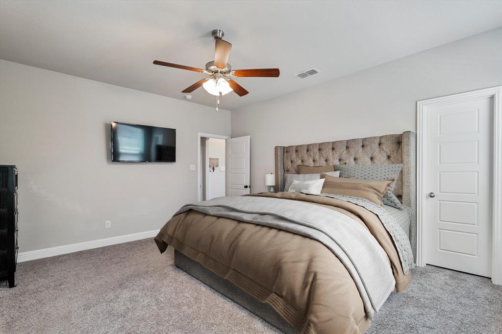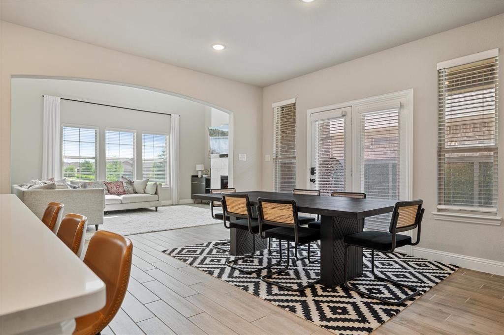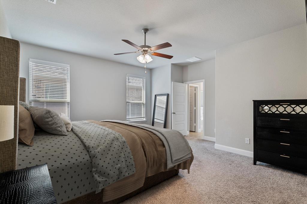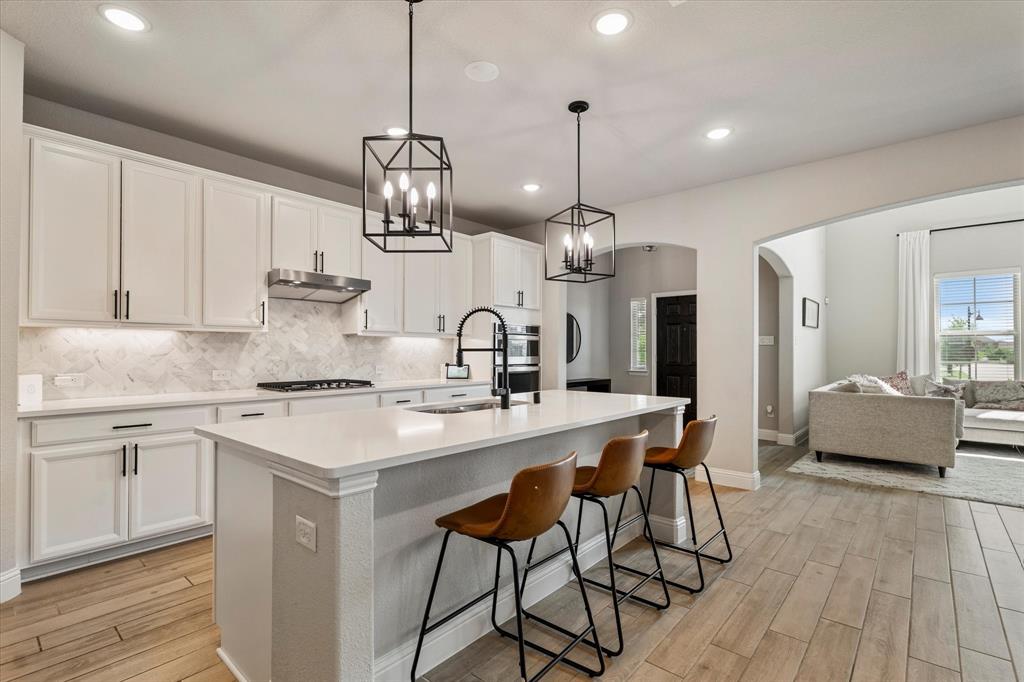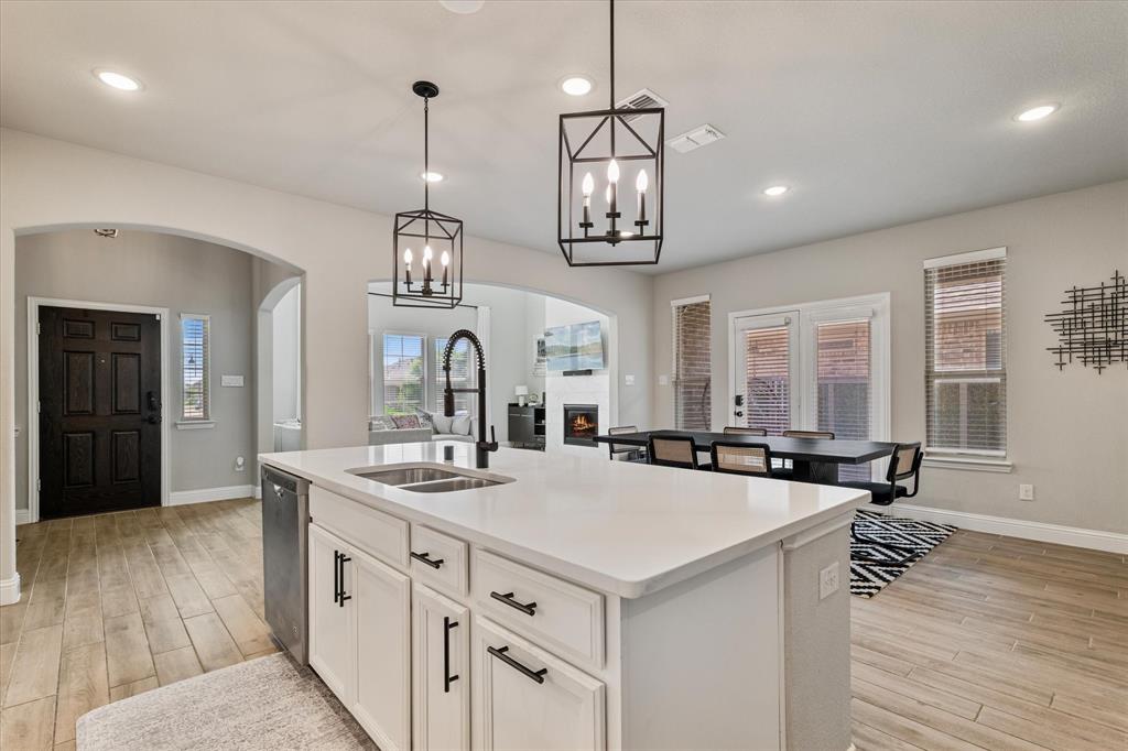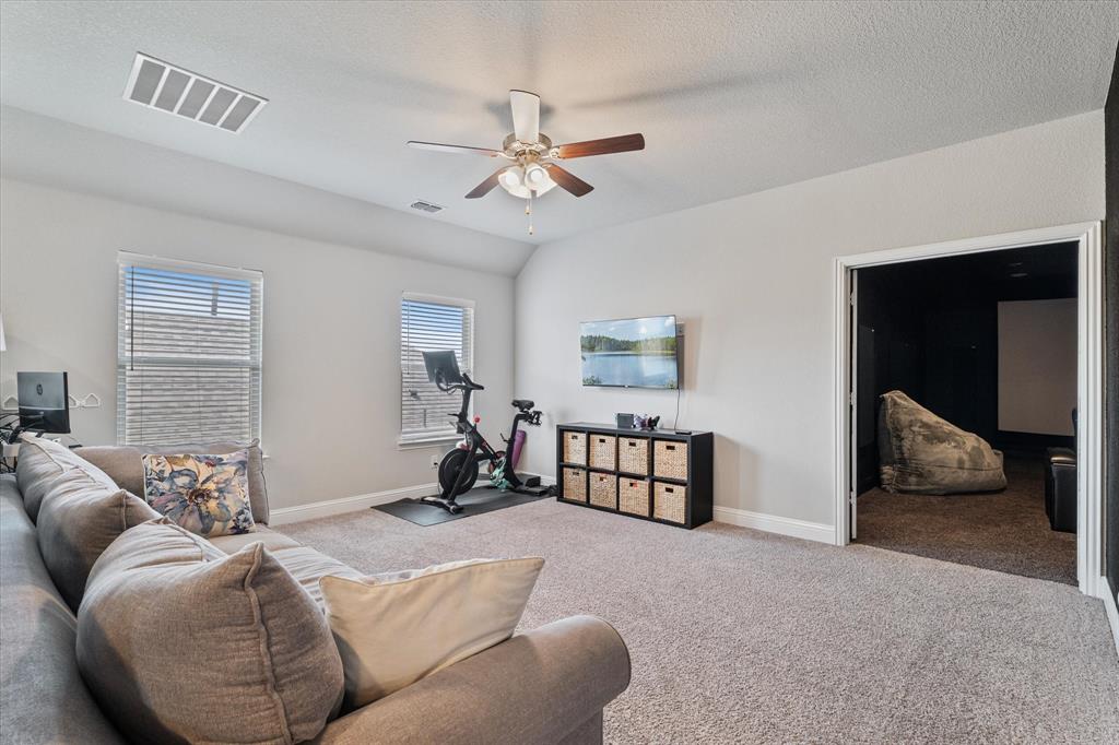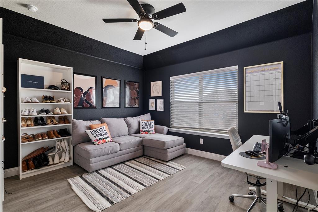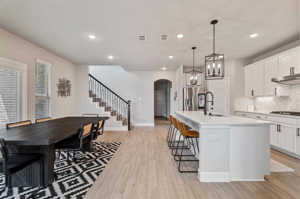 NEW PRICE! Step inside this stunning modern two story nestled in the desirable master-planned community of Union Park. Once inside you'll be greeted by sweeping wood-look tile floors which flow throughout the open-concept entertainment space. Gather with friends and family and create memories to last a lifetime in the inviting living room highlighted by a cozy gas fireplace. Make your way into the gourmet kitchen equipped with beautiful Quartz counter-tops, large island, gas cook-top, and Whirlpool stainless steel appliances. The main bedroom is thoughtfully positioned on the first floor and offers a tranquil ensuite bath with dual sinks, relaxing soaking tub, separate shower and walk-in closet. Make your way upstairs where you'll find an expansive game room and a fully equipped media room with a 160 ft. movie screen and 8 built-in speakers, making movie nights at home a cinematic dream. You'll also find three bedrooms which share a well-appointed full bath. Enjoy the outdoors in your private backyard with low maintenance turf grass and a sparkling pool. The HOA handles front yard maintenance! Don't miss the electric car charge wiring already installed in the garage. Take full advantage of the exceptional amenities Union Park has to offers with an on-site Elementary school, several swimming pools, playgrounds, parks, sports courts, fitness center and much more.
