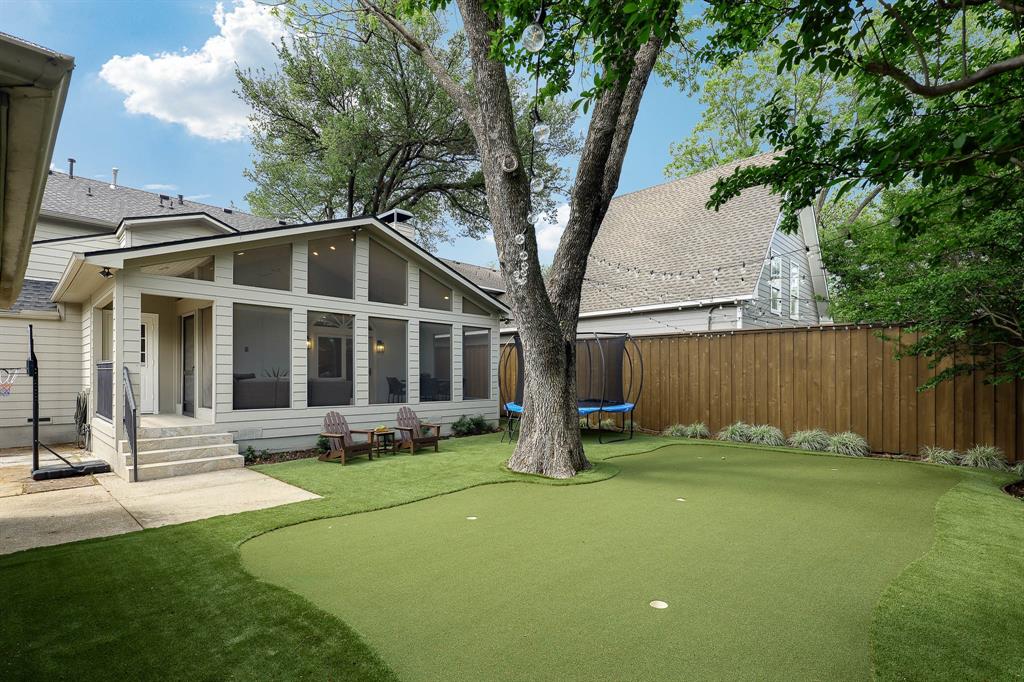 Move-in Ready University Park traditional with a premier location, thoughtful updates, and exceptional flow! Located in the heart of University Park, just steps from Hyer Elementary, parks, churches, schools, and the shops and restaurants at Preston Center, this beautifully updated traditional home offers the perfect blend of classic charm and modern conveniences. Designed with a highly functional layout, the home features two bedrooms down, including the primary suite, and two large bedrooms upstairs connected by a Jack-and-Jill bath—each with its own private vanity. The inviting front living and dining rooms are open and airy, with a wood-burning fireplace anchoring the space. The second living area boasts vaulted ceilings and second wood burning fireplace and flows seamlessly into the bright, updated white kitchen, where appliances have been recently replaced for modern comfort. Step outside to your private backyard oasis featuring a beautiful mature tree, turfed yard, putting green, chipping squares, and a stunning screened-in porch — perfect for year-round enjoyment. The detached two-car garage with a motorized gate offers additional secure parking or a play area for kids and pets.