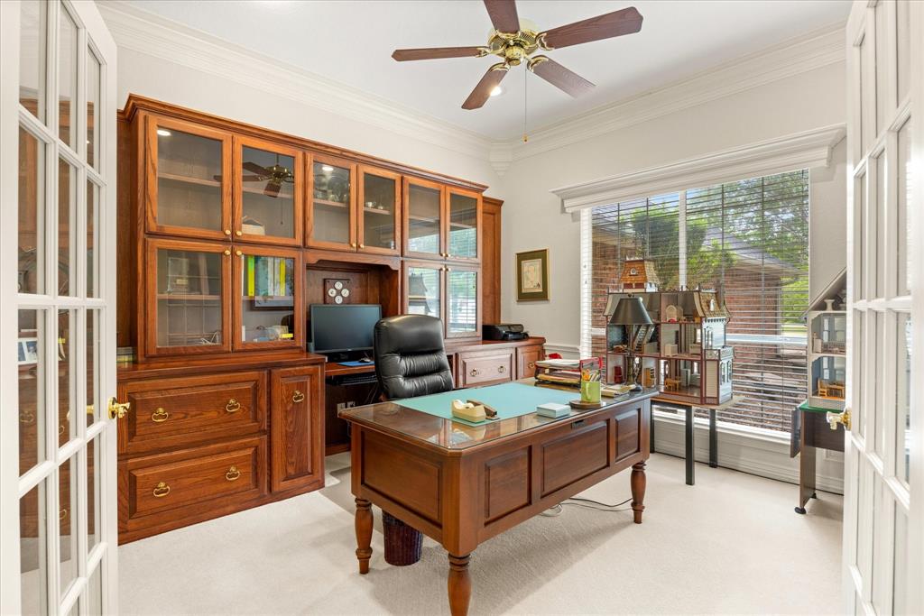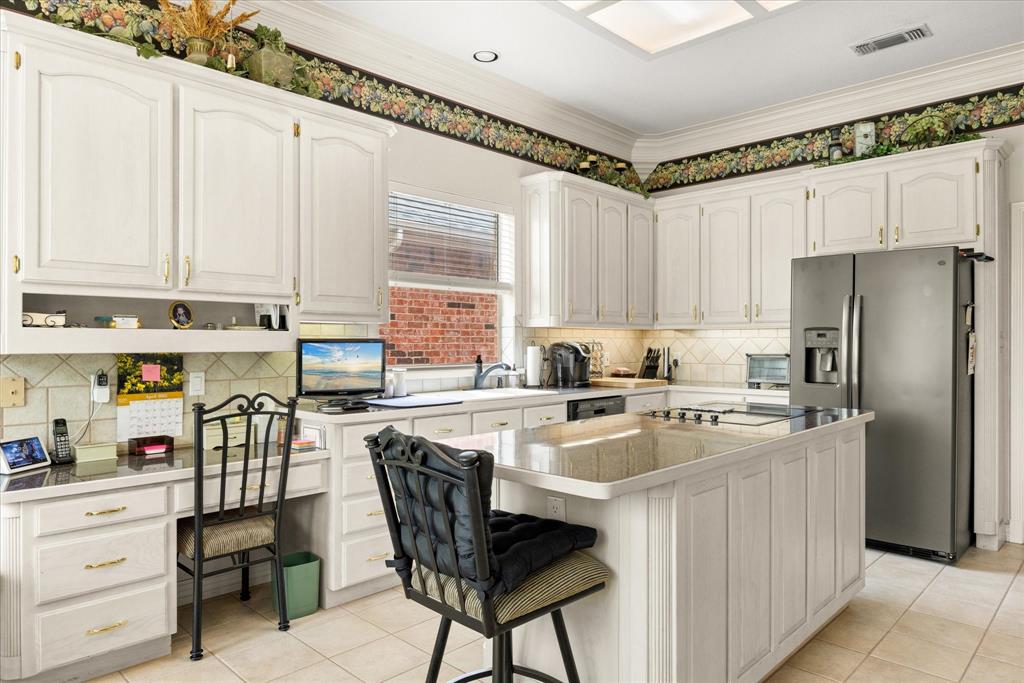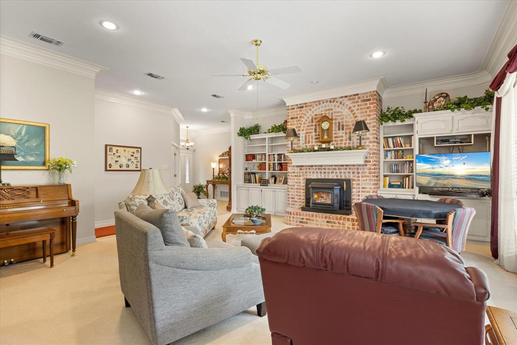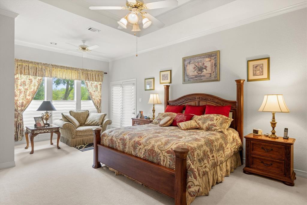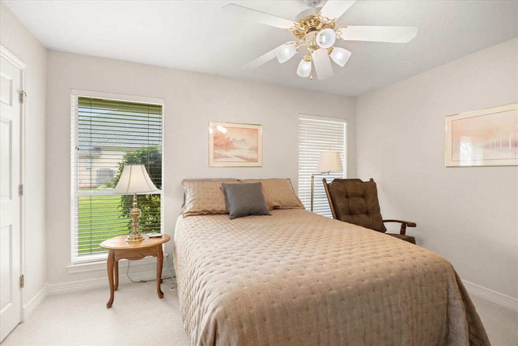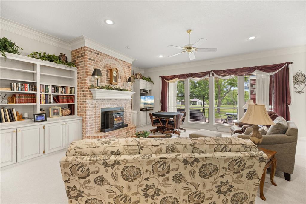 Discover your dream home nestled in coveted Pecan Plantation, just a short golf cart ride from the Pecan Village featuring grocery store, bank, pharmacy and other shopping options. This exquisitely maintained Gerald Boggs built 4-bedroom, 3-bathroom house shines with pride of ownership and boasts a generous 2,612 square feet of airy, light-flooded interiors. Step inside to find a layout perfectly suited for both relaxation and entertaining. The spacious and inviting living areas flow seamlessly, illuminated by natural light that brings a vibrant yet calming energy throughout. Each of the 4 bedrooms offers comfortable living spaces, with the primary bedroom serving as a serene retreat ideal for unwinding after a day on the nearby Nutcracker Golf Course. Speaking of which, golf enthusiasts will rejoice at the property's proximity to the pristine 5th fairway, inviting you to perfect your swing under the Texas sun. Additionally, this home comes with a unique feature: a nearly 200-square foot detached shop that doubles as a tornado shelter, thanks to its robust concrete roof. Whether you're a hobbyist needing space for your tools or seeking extra peace of mind during stormy weather, this home caters to both needs elegantly. Outdoor living is just as splendid, with great space for barbecues and family gatherings in a setting that captures the essence of community and charm, with the additional bonus of no WEST sun on your evening patio! Keep your yard as green as the golf course with orchard water via the full sprinkler system! Prepare to fall in love with a home that ticks all the right boxes for a sophisticated yet comforting lifestyle. New Roof, new gutters have been installed! All new trim paint coming! Wow!