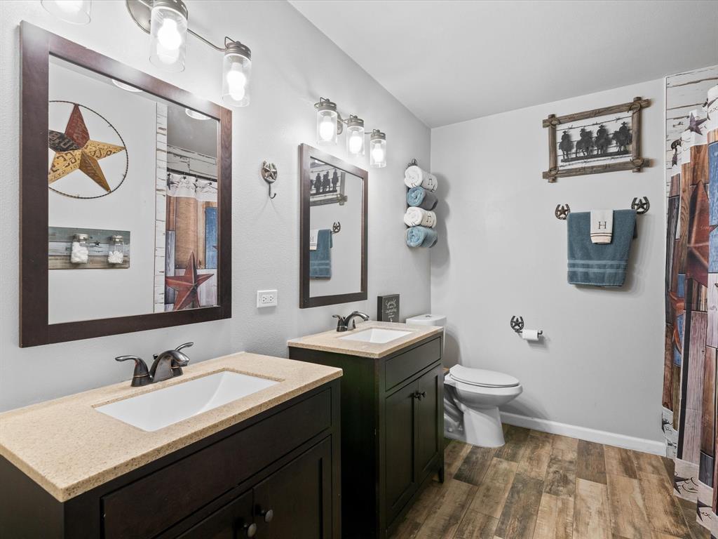 MAJOR PRICE REDUCTION!! You won’t find another home like this, truly a one-of-a-kind property in the heart of Bedford. Welcome to 81 Regents Park, a spacious and thoughtfully updated one-story home offering 5 bedrooms, 3 full bathrooms, and no HOA in highly rated HEB ISD. Set on nearly a third of an acre atop a quiet hill with mature trees, this property features a flexible layout ideal for multigenerational living, working from home, or anyone needing extra space. Inside, you’ll find two large living areas, a bonus room currently used as an office, and a generously sized kitchen with abundant storage. In 2022 the sellers added two bedrooms, a full bathroom, an additional living space, and a covered patio, creating even more room to spread out. Over the recent years, numerous upgrades have been made including windows, siding, gutters, HVAC systems, a tankless water heater, lighting, and flooring throughout with no carpet. The backyard is designed for entertaining with multiple patios, a pergola, a large storage shed, and a 6 ft cedar privacy fence. This was meant to be the sellers’ forever home but plans have changed, making it ready for someone new to enjoy. Sellers note it could be a great fit for an in-home daycare, blended families, or households looking to share expenses and simplify life.
