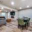 Step inside and you’re greeted by a spacious dining area just off the entry—perfect for dinner parties, game nights, or pretending you meal prep. It flows right into a huge living room anchored by a sleek electric fireplace that adds instant ambiance (and zero soot).