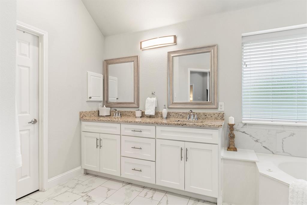 The private primary suite provides a peaceful retreat, complete with an ensuite bath featuring dual sinks, a garden tub, and a separate shower. Step outside to enjoy a generously sized backyard with an open patio—ideal for outdoor dining, relaxing, or hosting guests.