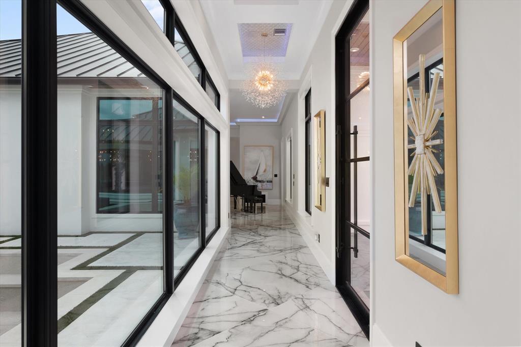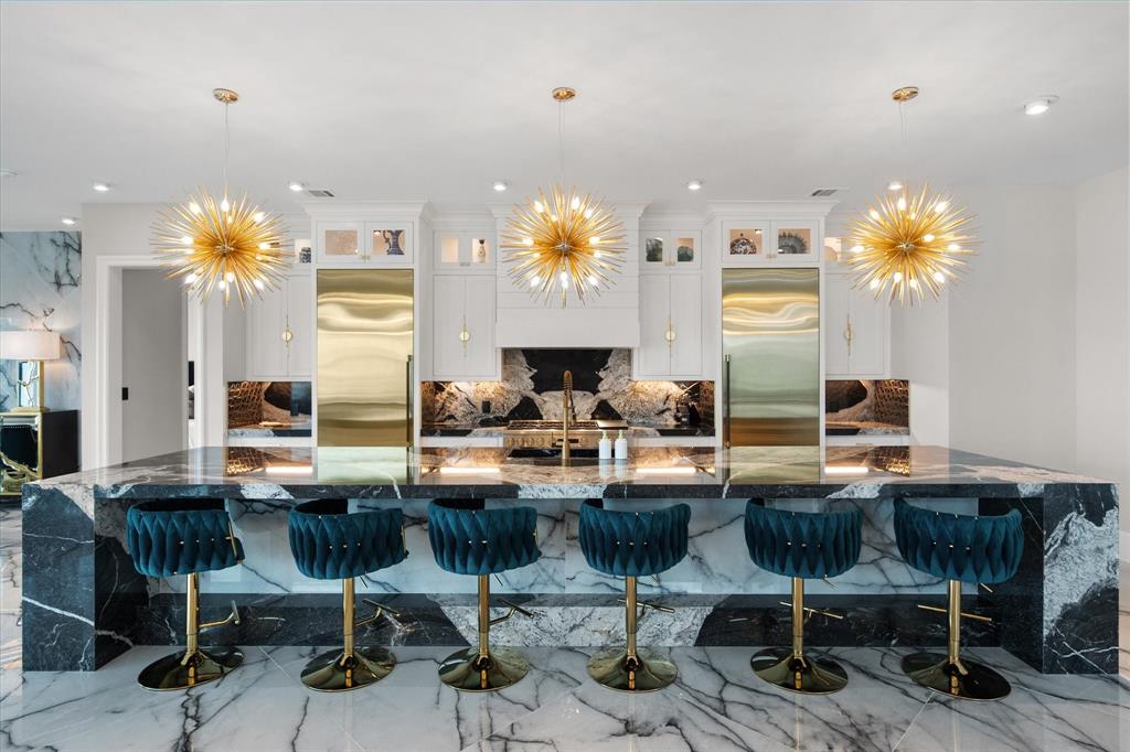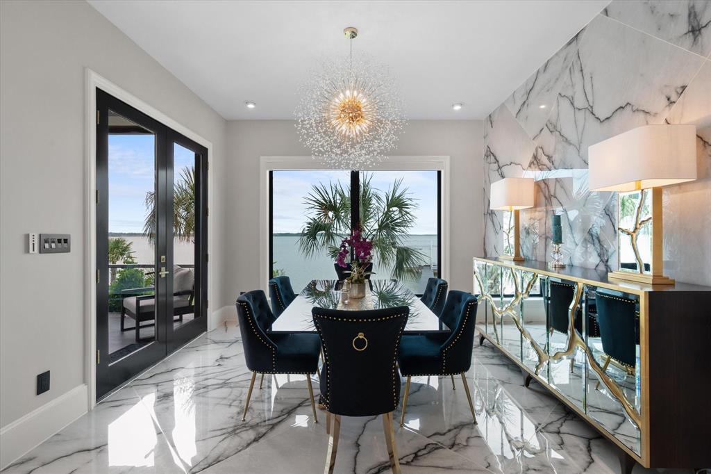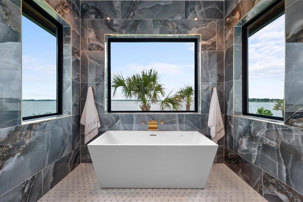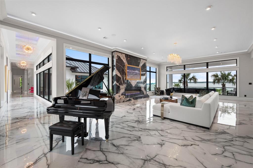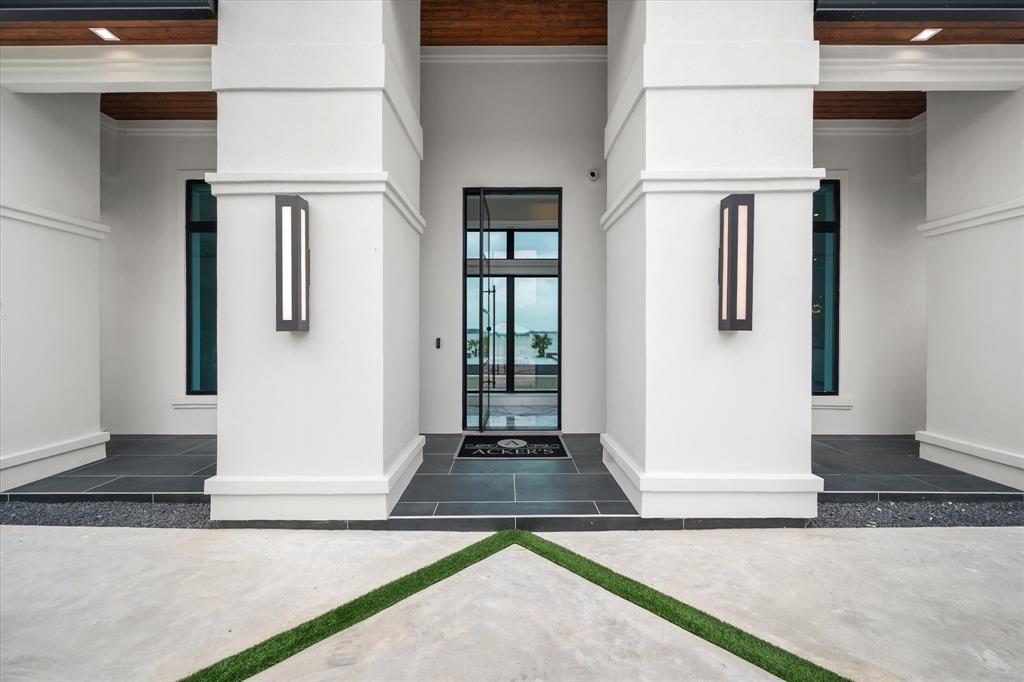 Modern luxury meets lakeside living in this stunning 4-bedroom, 4-bathroom home on just over an acre of waterfront property. Designed with clean lines and top-tier finishes, this home offers a perfect balance of elegance, comfort, and functionality. Arrive in style on a turf-inlay driveway leading to a 4-car garage with epoxy flooring, heated and cooled climate control, and a modern glass door. Inside, the open-concept living space features large windows with breathtaking views of the lake and heated infinity pool, plus an electric fireplace for cozy ambiance. The chef's kitchen is equipped with a massive island, built-in granite sink, brass refrigerator and freezer, Scotsman ice maker, and a walk-in pantry. Entertain with ease thanks to the wet bar located in one of the bedrooms. Retreat to the luxurious primary suite with an electric fireplace, spa-inspired ensuite bathroom with double vanities, garden tub, separate shower, and a custom walk-in closet. The dedicated office features sleek glass walls, perfect for working from home in style. Step outside to tile-covered porches and patios, glass railing for unobstructed views, and a porcelain tile fire pit for relaxing evenings. Enjoy two putting greens, and a custom boat lift with remote control- designed for effortless lake access. With a heated LED-lit infinity pool and a seamless indoor-outdoor flow, this property is a rare blend of sophistication, comfort, and lakeside serenity. Don't miss your chance to own this fully customized modern retreat.