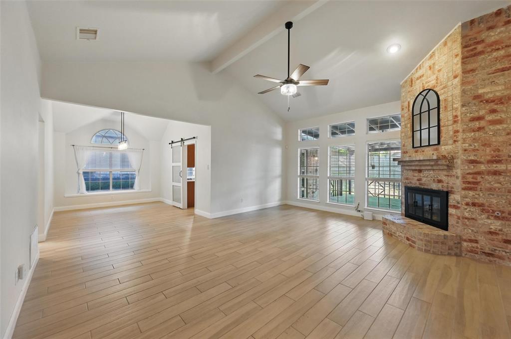 Clean lines and vaulted ceilings typify this cozy one-story home. Located in highly rated Birdville ISD, this traditional all-brick house features bay windows in the kitchen and master bedroom, a spacious master bath, and a covered patio for outdoor entertainment. Ceramic wood-look tile makes for easy cleaning and better looks. Numerous updates throughout.
