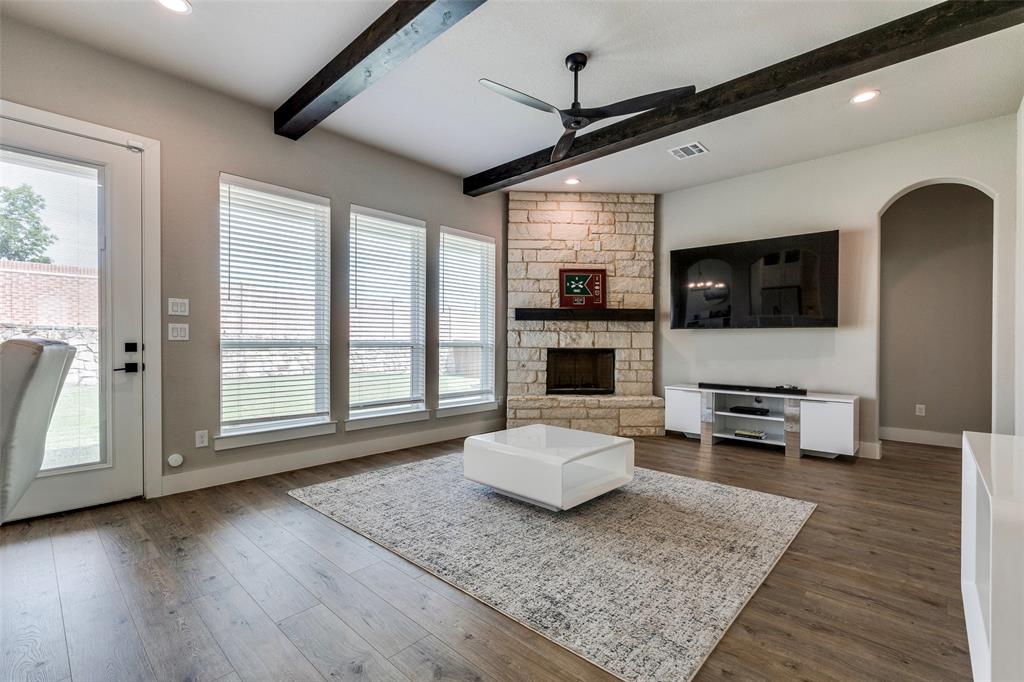 This stunning 5-bedroom, 4-bath home offers a spacious open floorplan with abundant square footage, perfect for family living and entertaining. The bright, modern kitchen features upgraded Quartz countertops, custom white shaker cabinets, and overlooks the living area complete with a cozy fireplace. The main living spaces are finished with upgraded luxury vinyl flooring and a fresh white and grey color scheme. A large upstairs game room adds even more room for fun and relaxation. Step outside to a huge covered back patio, ideal for gatherings and outdoor entertaining. Every detail is thoughtfully designed for modern living with style and comfort.