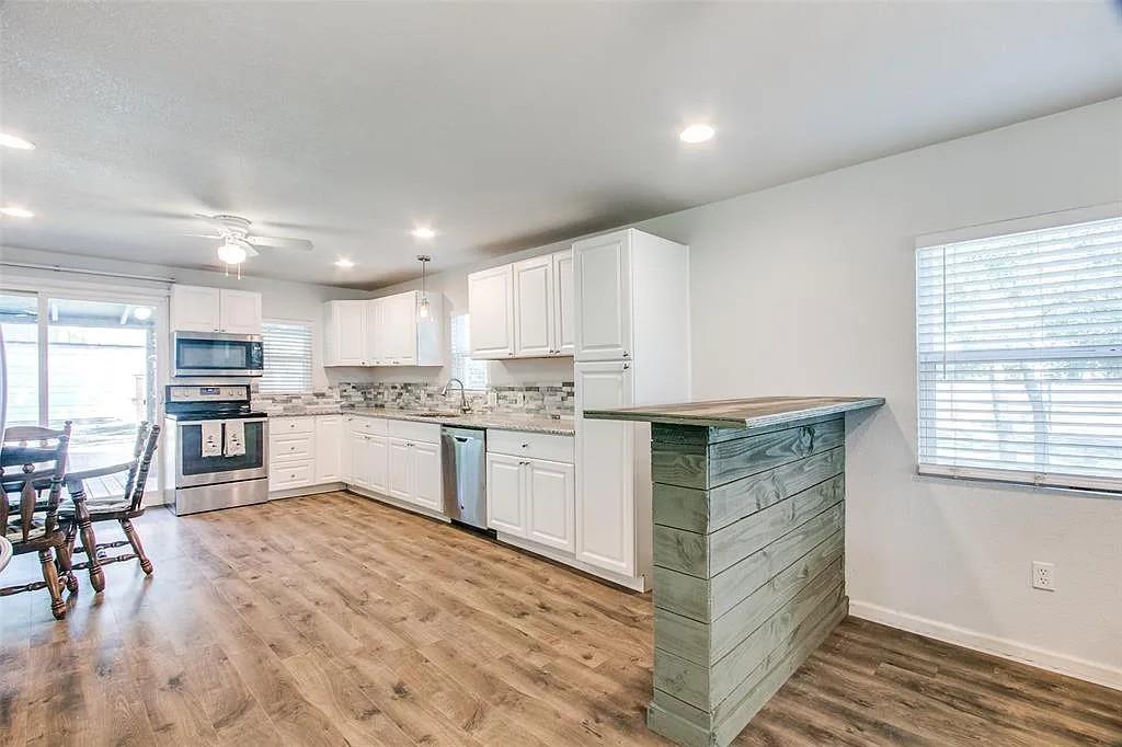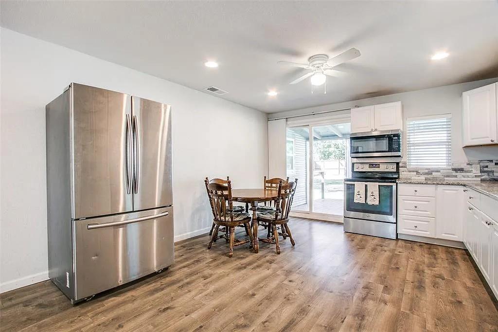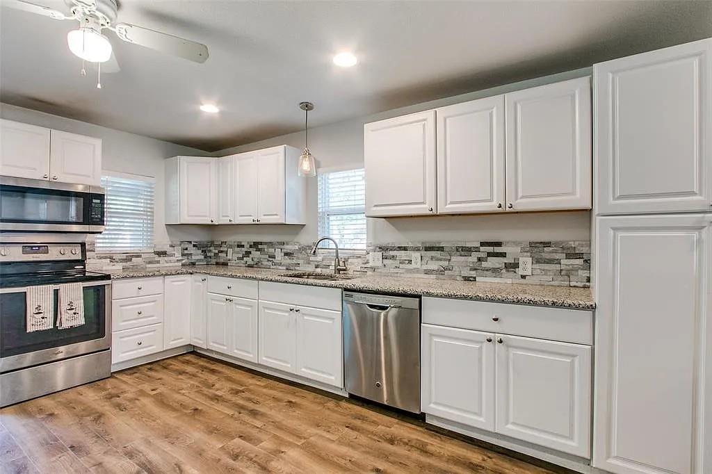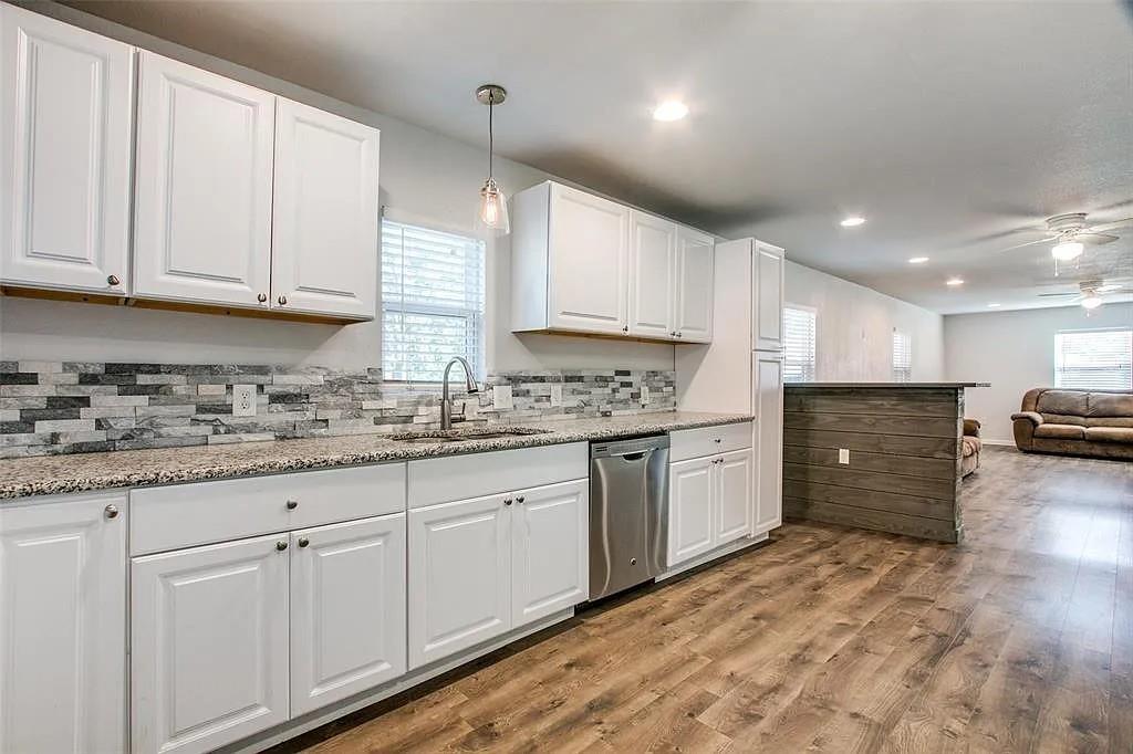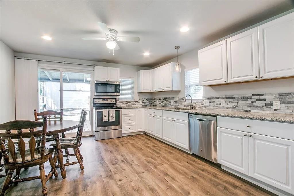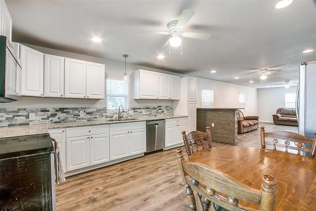 An Extraordinary opportunity awaits you! The owner has taken this home and completely remodeled it from the ground up. The kitchen features ample cabinetry, granite countertops, gorgeous backsplash, recessed lighting, and stainless steel refrigerator, range, and microwave. The primary bedroom is spacious, while the second bedroom is perfect for guests, a home office, or a nursery. The laundry area provides plenty of room for a full-size washer and dryer. The large backyard offers endless possibilities for outdoor cookouts, gardening, or a relaxing evening enjoying your favorite beverage. Additional highlights are a 30x30 workshop built on a concrete slab with electricity. Provides plenty of room for storage, your favorite hobby, or use as a garage to park your cars in. Located in a desirable area, this home is in a peaceful, friendly neighborhood and just minutes from Justin Community Park, Justin Library, schools, shopping, dining, and other nearby.