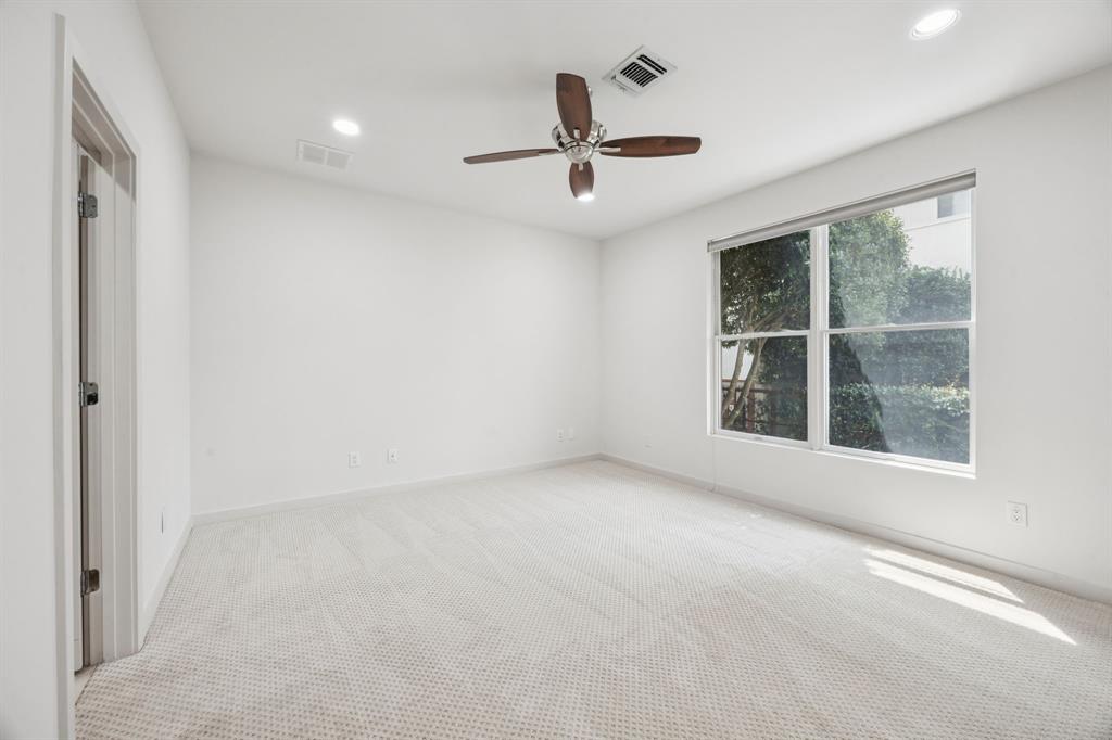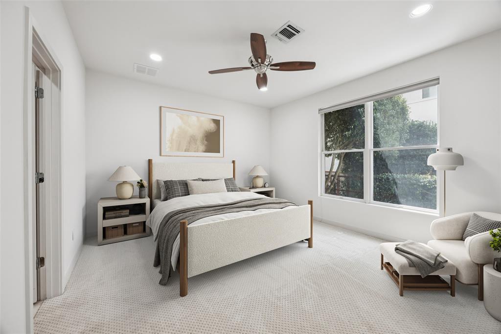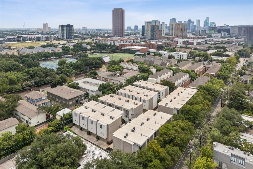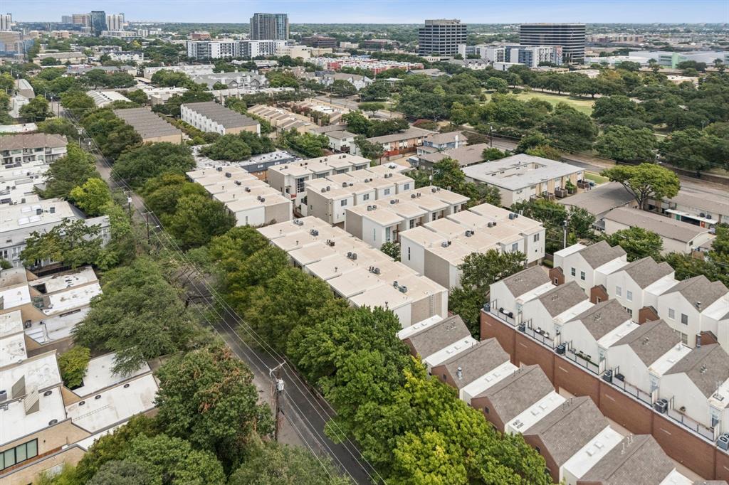 Experience elevated city living in this move-in ready, three-story modern townhome located in the heart of Dallas’s highly sought-after Uptown neighborhood. Offering 2,348 square feet of bright, open living space, this 2-bed, 2.5-bath residence blends thoughtful design with bold architectural style. The exterior features clean stucco, textured cinder block, and sleek steel accents that reflect a minimalist, urban aesthetic. Oversized overhangs, cantilevered shade elements, and modern railings bring a strong curb presence, setting the tone for the sophisticated space inside. Inside, soaring ceilings (upto 20-foot in living) and expansive windows flood the home with natural light. The second floor features an open kitchen with views of the main living area and direct access to a private deck perfect for entertaining. Anchoring the space is a striking modern fireplace, its exhaust rising dramatically through the double-height ceiling — drawing the eye upward and adding a bold architectural statement that defines the heart of the home. A lofted flex space above overlooks the living room and fireplace below, making it an ideal setting for a home office, reading retreat, nursery, or creative studio. This townhome offers comfortable, modern living with neutral finishes and a smart, functional layout. The primary suite features an open, custom closet system designed for an expansive wardrobe and organized storage. Ample closet space is found throughout, along with a spacious private 2-car garage — ideal for parking, storage, or hobbies. Nestled among tree-lined streets and surrounded by some of Dallas’s most walkable destinations — including the Katy Trail, West Village, and Knox-Henderson — this home delivers unmatched access to dining, shopping, fitness, and nightlife. With its architectural appeal, bright layout, and unbeatable location, 4030 Travis #A is your gateway to refined city living in one of Dallas’s most vibrant communities. Call to schedule a private tour !!!