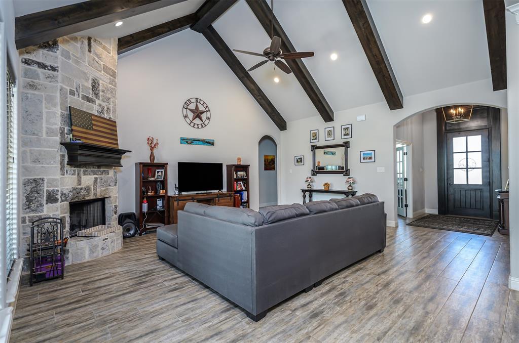 Welcome to this beautifully maintained 4-bedroom, 2-bath home offering 2,570 sq ft of open-concept living, situated on a full 1-acre lot in the sought-after Briar Crossing community of Azle—no HOA! Built in 2020, this newer construction blends classic ranch-style charm with high-end finishes and modern energy-efficient features. Beautifully landscaped with a 3 car garage, the property offers both curb appeal and room to relax or entertain. Inside, you'll find an open-concept layout enhanced by vaulted ceilings that create a bright, airy atmosphere.