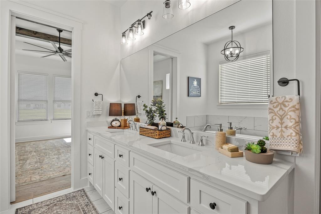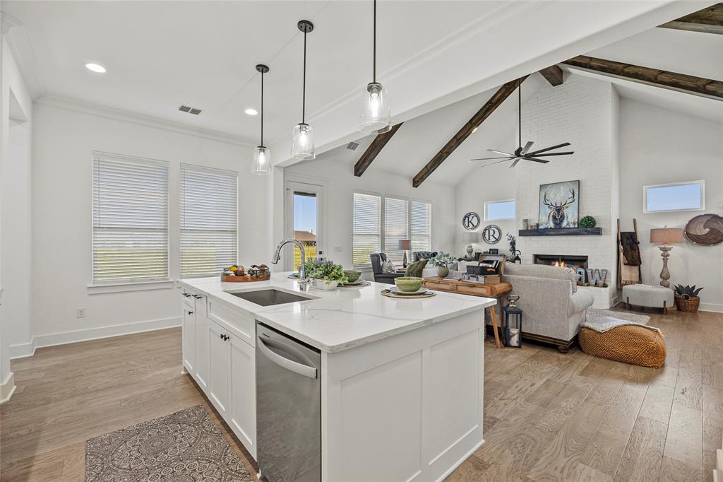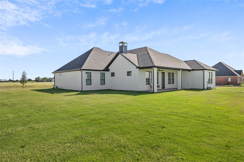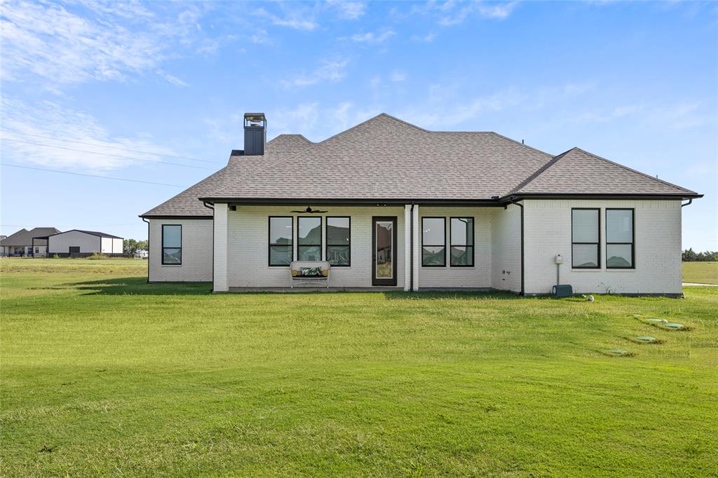 MOVE IN READY HOME in the highly sought after Caddo Mills ISD. This home sits on a 1 Acre Lot. 2623 Sq. 4 Bedrooms, Study, 4th bedroom Option with closet, 3 Baths and 2 car garage. Two-inch White Faux Wood blinds. Foam Encapsulation. 250 gallon buried Propane Gas for the Tankless Water Heater, Fireplace, 5 burner cooktop and BBQ stub. 8’ Mohogany Entry Door and 8' Solid Core Doors throughout. 10' Ceilings. Floor to ceiling Brick Fireplace with Gas starter and Stained Mantle. Vaulted Ceiling in Living Room with Stained Beams. White Painted Cabinets, Quartz Counter tops in Kitchen, all bathrooms and laundry room. 3x12 White Subway Tile Kitchen Backsplash. Decorative Vent hood. Built-in Stainless Steel Whirlpool dishwasher, microwave, single oven and 5 burner gas cooktop. Hardwoods in Entry, Dining Room, Living Room, Kitchen, Study 4th Bedroom option, Master Bedroom. C-Tile in all Bathrooms and Laundry room. Primary Bedroom Features a Designer Ship Lap Wall and Stained Beam work in the Ceiling. Primary Master Bath has a dual sink vanity, Slipper Tub and Walk in Shower with Frameless Glass. From the Primary Closet there is Laundry Room access.