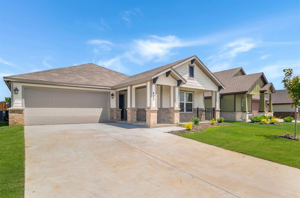 MLS# 20922961 - Built by Dunhill Homes - Ready Now! ~ Discover this stunning 4-bedroom Craftsman-style single-family residence in the sought-after Craftsmans Corner subdivision. Built in 2024, this home features an open floor plan that seamlessly connects the living and dining areas, perfect for entertaining. The modern kitchen boasts granite counters, an island, and a pantry, while the primary suite offers a luxurious double vanity and spacious walk-in closet. Additional highlights include two full bathrooms, central heating and cooling, and elegant flooring with carpet and luxury vinyl plank. Enjoy outdoor living on the covered patio in your private, landscaped yard equipped with a sprinkler system. The home also includes a two-car garage for added convenience. Located within the Cleburne ISD, with Irving Elementary, Ad Wheat Middle, and Cleburne High School nearby, this property is a perfect blend of comfort and modern living.