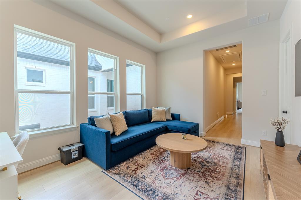 You’re welcomed by a rare private front courtyard before stepping into soaring ceilings that open up the entire living space.