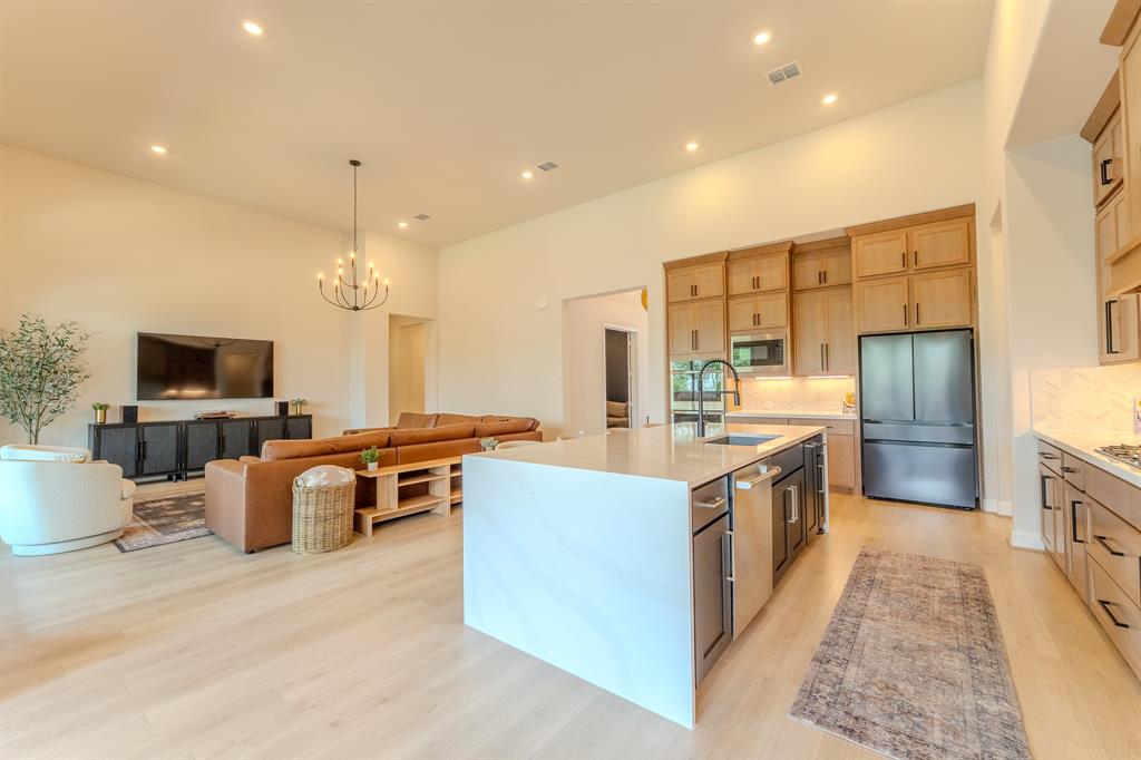 The kitchen is a showstopper with a waterfall island and an open layout perfect for gathering and hosting. Tucked away in front, a bold, designer home office gives you focus and personality, while a dedicated media room sets the scene for movie nights and game days.