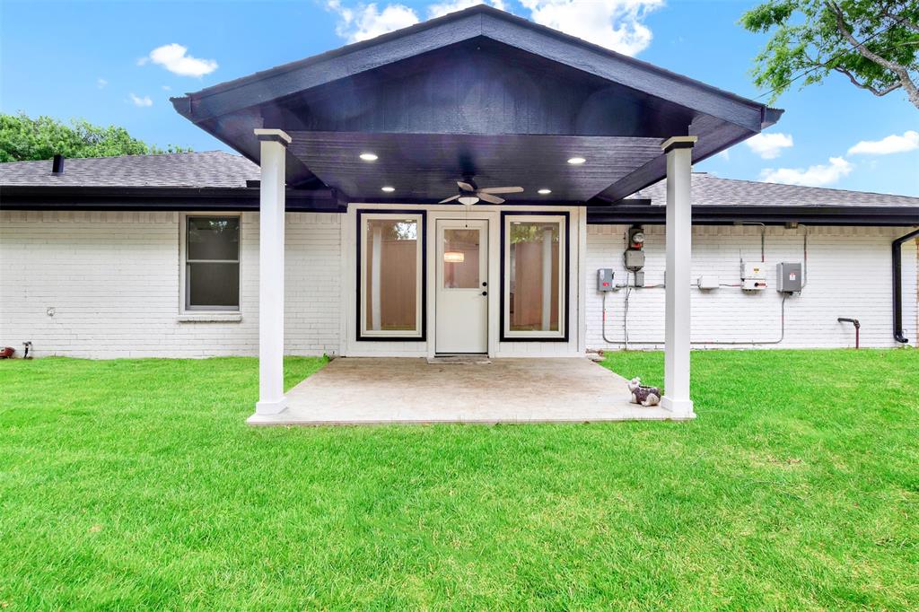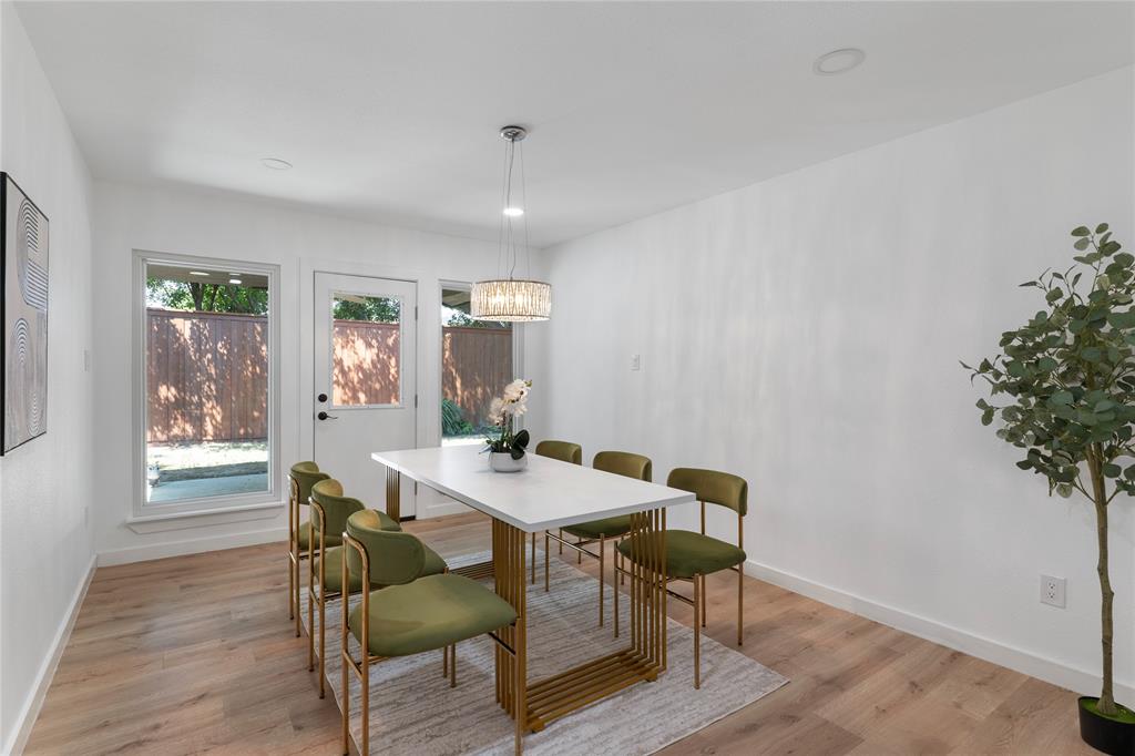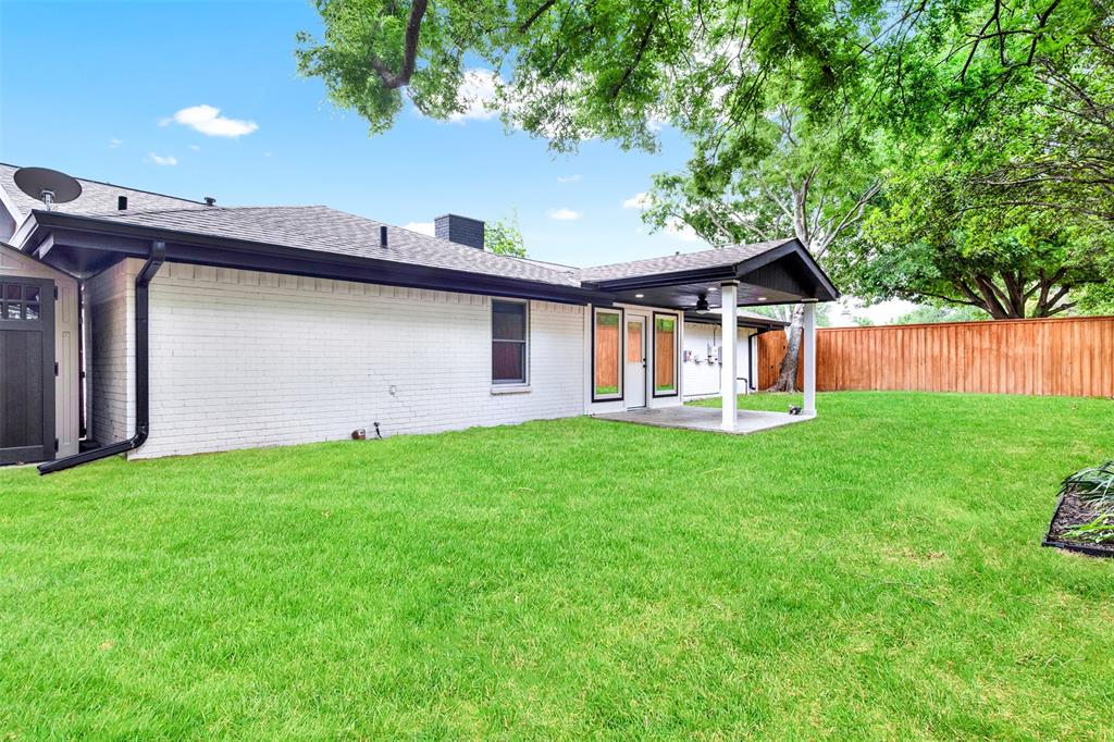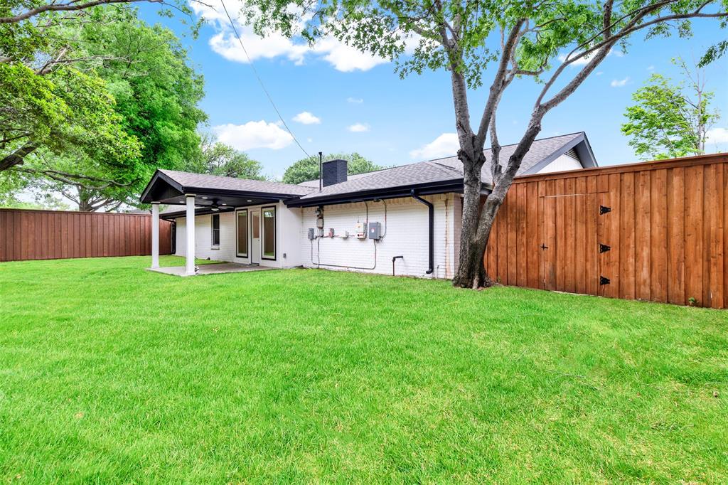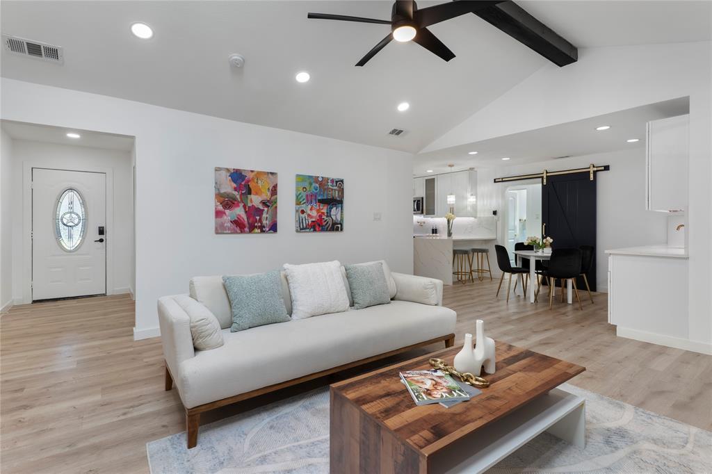 The expansive living room with a cozy fireplace flows seamlessly into the dining area, which overlooks the large, private backyard. Enjoy outdoor living year-round on the oversized covered porch surrounded by a board-on-board privacy fence and mature trees.