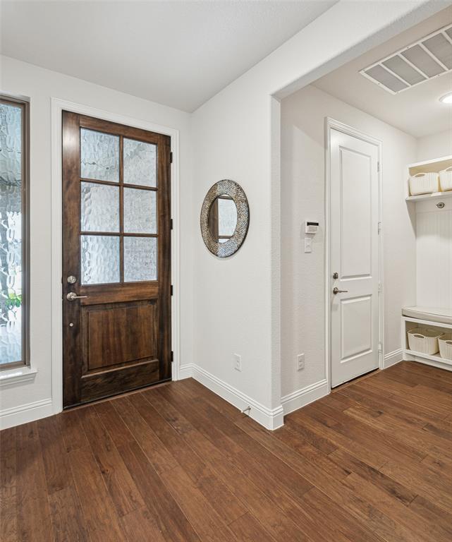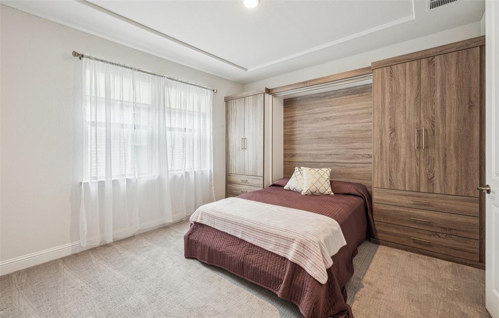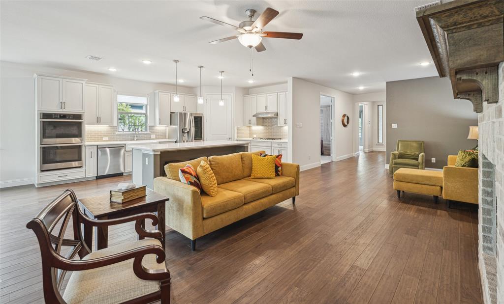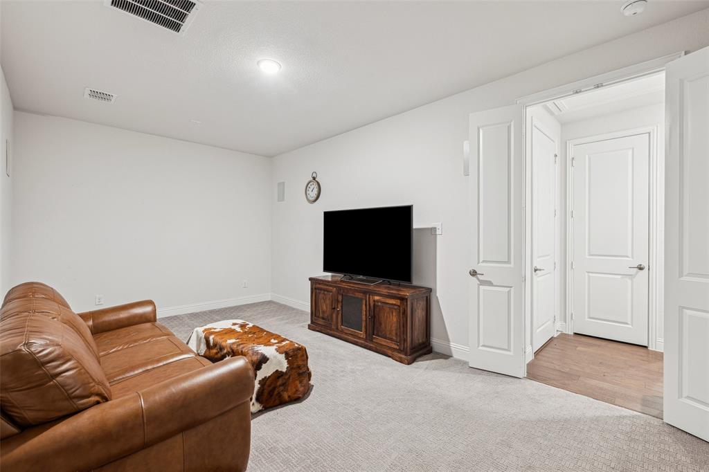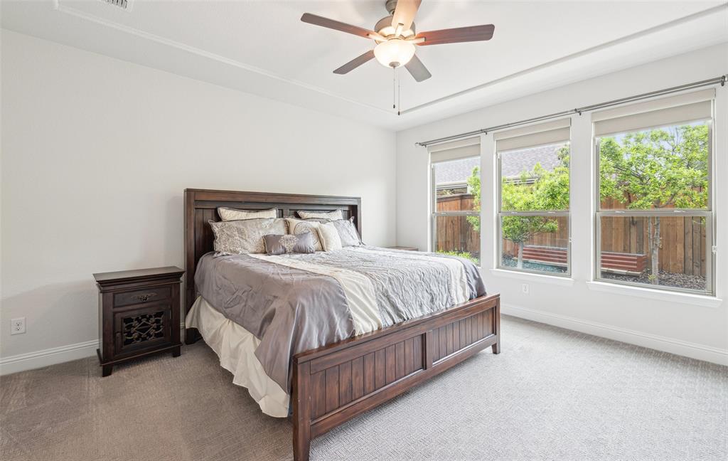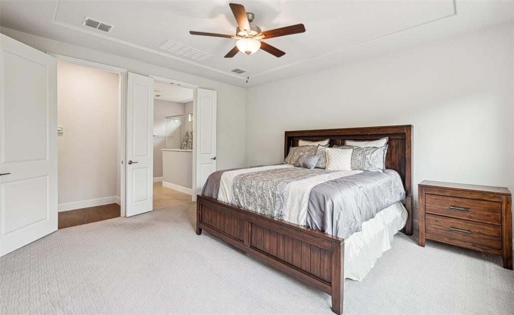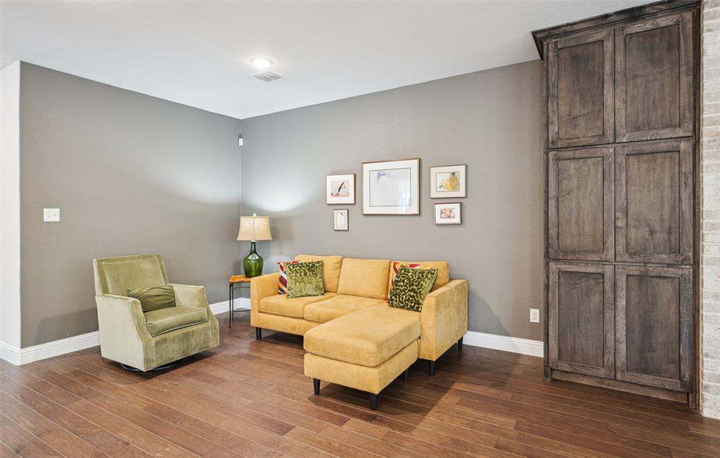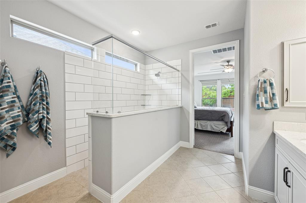 Welcome to your dream home in the highly sought-after Light Farms Sweetwater subdivision—where luxury meets lifestyle. This spacious one-story beauty combines functional elegance with high-end finishes and custom touches throughout. Step inside to find rich wood flooring and sleek roller shades adorning every window, setting the tone for the home’s modern yet warm aesthetic. The expansive living room boasts a striking brick fireplace with gas logs, custom built-ins, and flows seamlessly into a chef-worthy kitchen featuring quartz countertops, 42” custom cabinetry, double oven, farmhouse sink, gas cooktop, walk-in pantry, and a generous island with seating—perfect for entertaining and everyday living. The primary suite offers a serene retreat with views of the private backyard and a luxurious bath featuring an oversized walk-in shower, dual sinks with quartz countertops, a linen closet, and medicine cabinets. Two additional bedrooms provide versatile space, one showcasing a Murphy bed and custom built-ins—ideal for guests or a home office. Enjoy movie nights in your dedicated media room with surround sound, and keep things tidy with a built-in mudroom. The garage is a true standout with epoxy flooring and a ceiling fan for added comfort. Step outside to your own oasis: a wrap-around covered patio with a built-in gas grill, surrounded by lush landscaping including wisteria, honeysuckle, holly trees, and live oak—all enhancing the sense of privacy and tranquility. Brand new roof and gutters add even more value to this meticulously maintained home. Living in Light Farms isn’t just about the home—it’s about the experience. Residents enjoy four resort-style pools, multiple parks and playgrounds, a state-of-the-art fitness center, hike & bike trails, tennis and sand volleyball courts, a dog park, fishing pond, and more! Don’t miss your chance to own this bright, open, and beautifully styled home in one of Prosper’s premier master-planned communities.