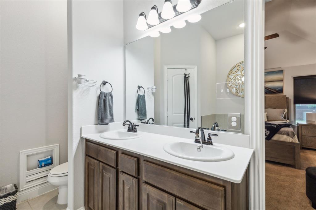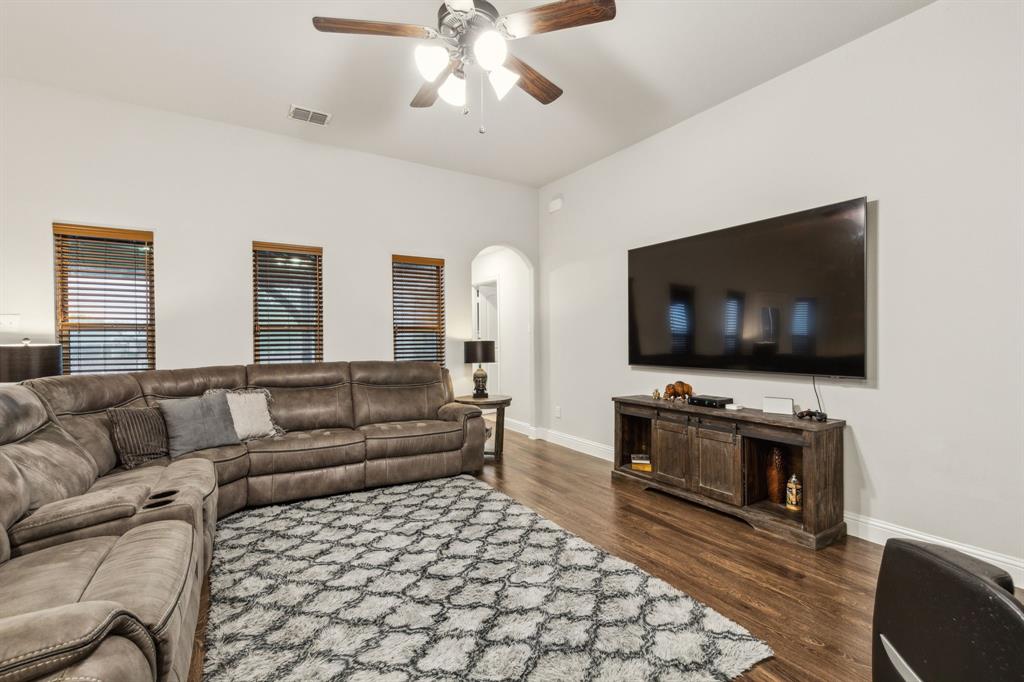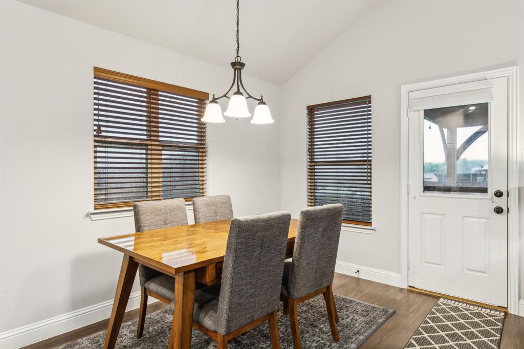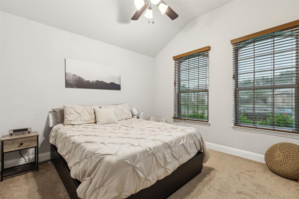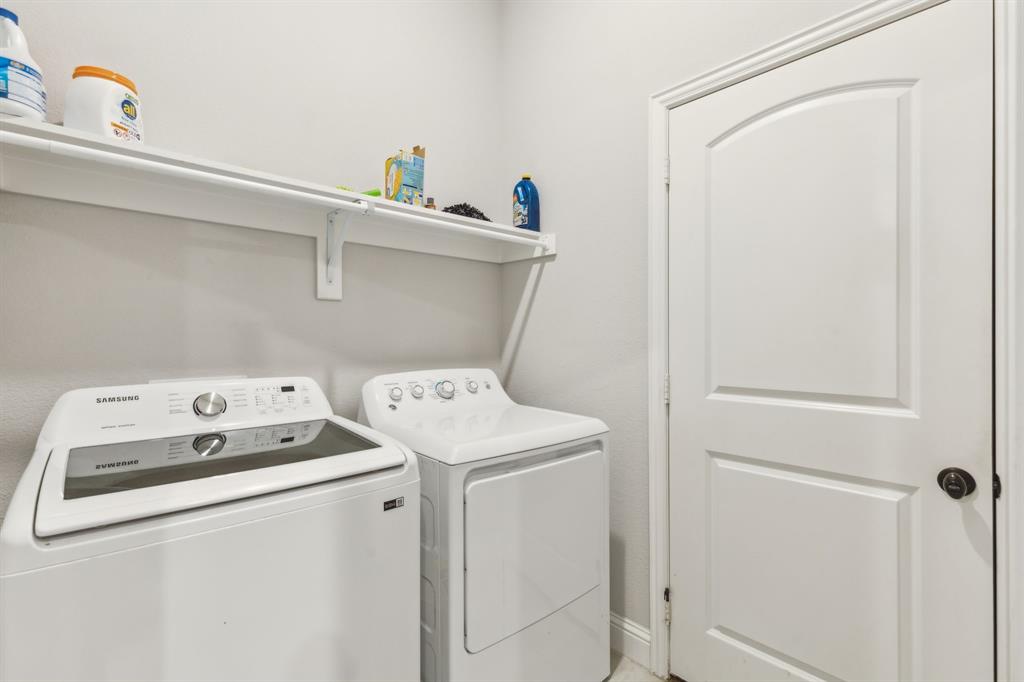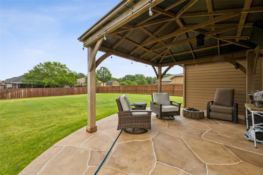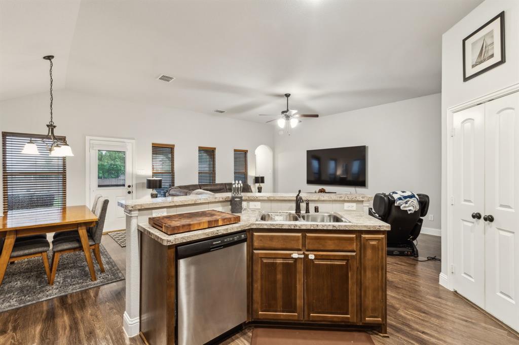 Experience comfortable one-level living in this charming 3-bedroom, 2-bathroom home, ideally situated just minutes from Route 377 in Aubrey, TX. Designed for both ease and style, the open-concept layout offers a seamless connection between the living room, dining area, and kitchen—highlighted by soaring ceilings and recessed lighting that create a bright, airy ambiance. The private primary suite is a peaceful retreat, featuring a walk-in closet, dual vanity, soaking tub, and a separate glass-enclosed shower. A walk-in laundry room adds convenience to the thoughtfully arranged floor plan. Step outside to enjoy a covered patio and a fully fenced backyard with wood fencing—perfect for relaxing or entertaining.