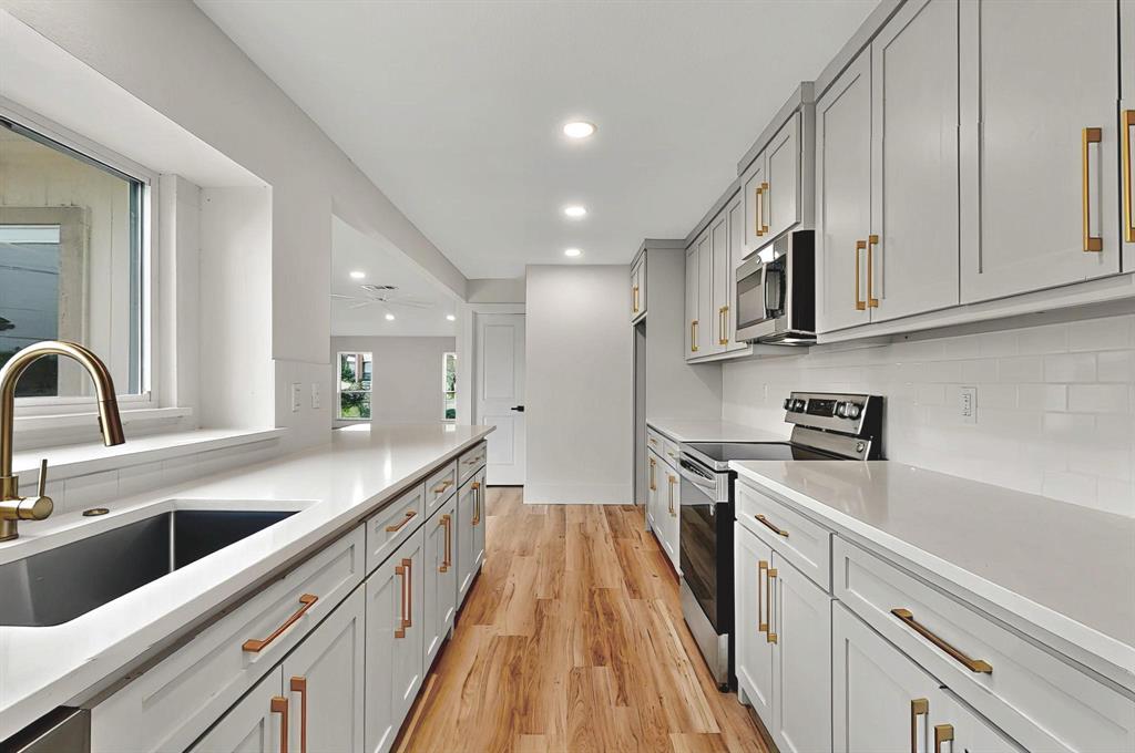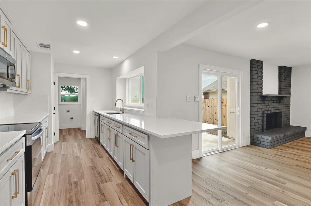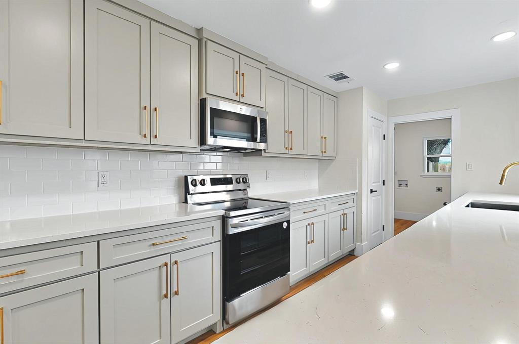 Step inside to discover a bright and open floor plan with upgraded flooring, recessed lighting and fresh paint both inside and out. The completely renovated kitchen boasts quartz countertops, shaker-style cabinetry, stainless steel appliances, and a subway tile backsplash ideal for cooking and entertaining.