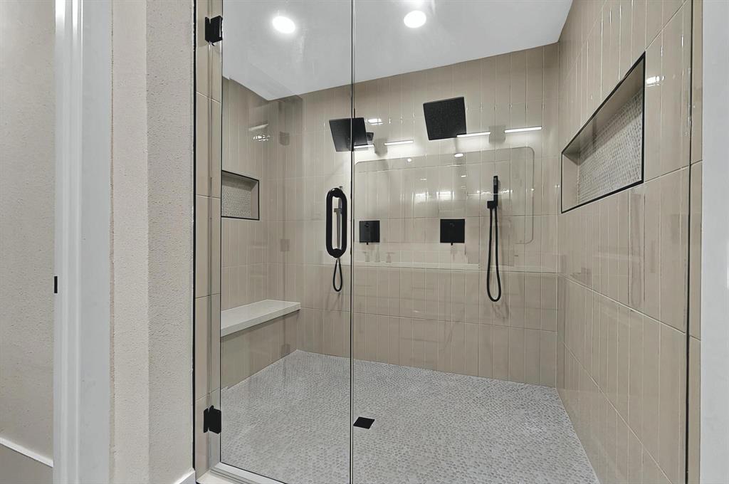 Enjoy four spacious bedrooms, updated bathrooms with designer finishes, new tile, glass surround enclosures and dual head showers in the primary bath. Updated fixtures and features throughout, a cozy living area with fireplace that flows seamlessly into the dining space. Enjoy the private backyard with views of Shoreline hiking trails, mature trees, and only minutes walk to the Lake.
