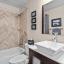 Downstairs, you’ll find a convenient guest bedroom that offers flexibility for visitors, a home office, or multi-generational living. Upstairs, three additional bedrooms include a luxurious primary suite that serves as your personal retreat. The master bathroom is truly exceptional, featuring a spa-like ambiance with a soaking tub, walk-in shower, dual vanities, and premium finishes that create a sense of everyday indulgence.