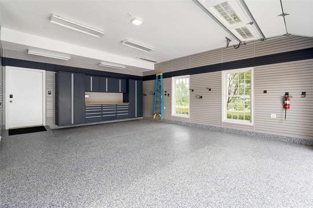 The primary suite offers French doors to the pool, a Kohler jetted tub and a Mr. Steam shower. Additional highlights include a study with built-ins, a breakfast nook, a game room with shuffleboard and pool table and a fitness room with mirrored walls and rubber flooring. The oversized 4-car garage features epoxy flooring, slatted paneling, a workshop and a home safe.