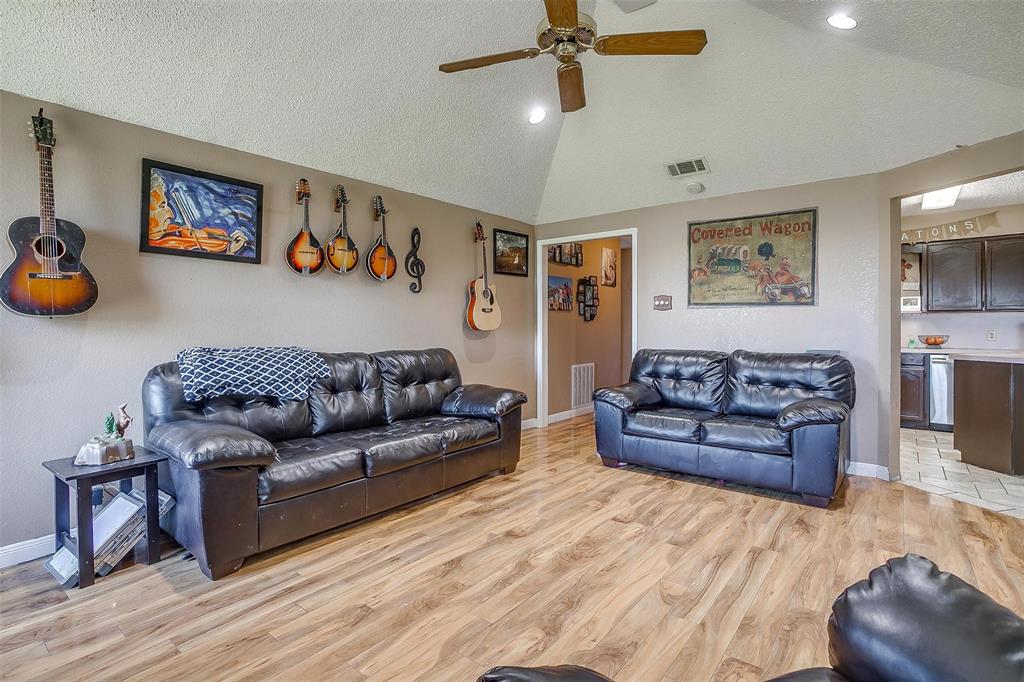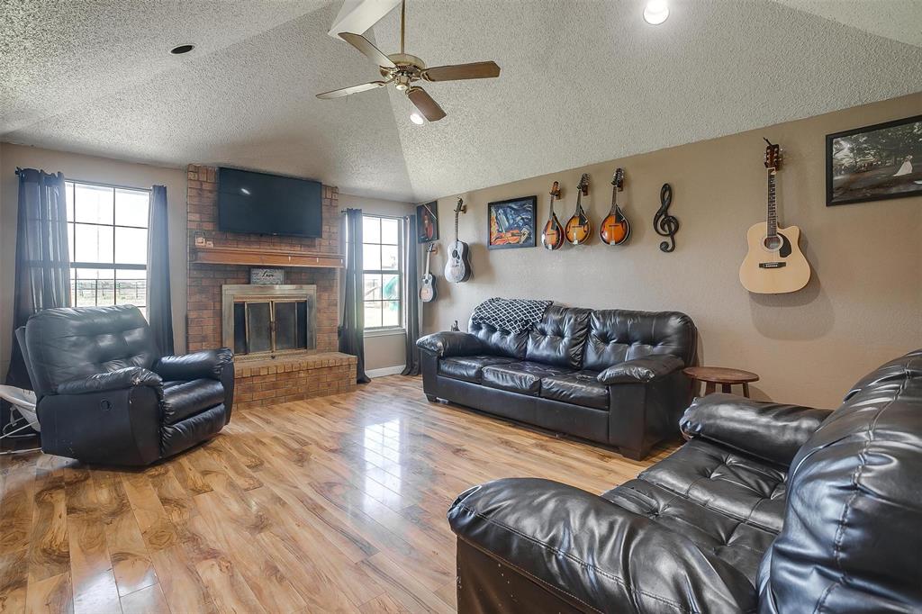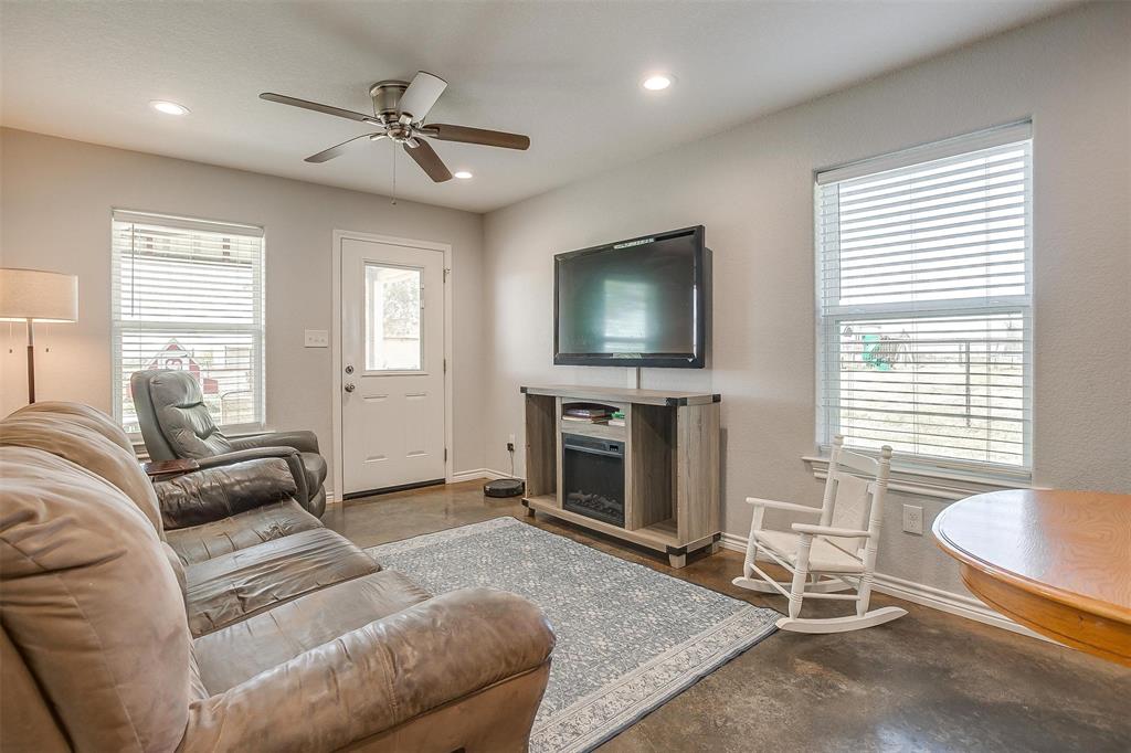 Welcome to your Country Home on almost 5 Acres! The charming main residence features 4 bedrooms with 2 full baths, fireplace and fenced backyard for the pets. The property also boasts a nice 2-bedroom 1 bath Guest House with living room, full kitchen with pantry, dining room, laundry room, fenced backyard, 2 car carport and covered patio! Equestrian enthusiasts will love the 30'x12.5' barn with water and electricity, fenced and cross-fenced complete with round pen, making it ideal for horses, and or cows. There's also a loafing shed and a 20'x24' equipment shed for your tractor and trailer. Also located on the property is a 30'x12.5' workshop with concrete floor and electricity. Perfect for storing your boat or toys. New roof, with gutters and new HVAC have just been updated! Located with easy access to I-35W! Guesthouse can provide multigenerational or rental possibilities. Spend your evenings relaxing on the patio, taking in the serene landscape. This property offers the perfect blend of rustic charm and modern convenience, making it a true countryside gem.