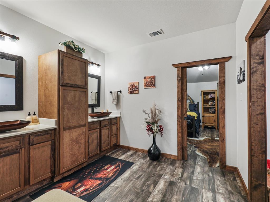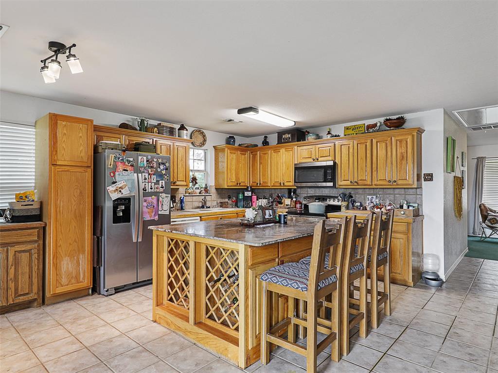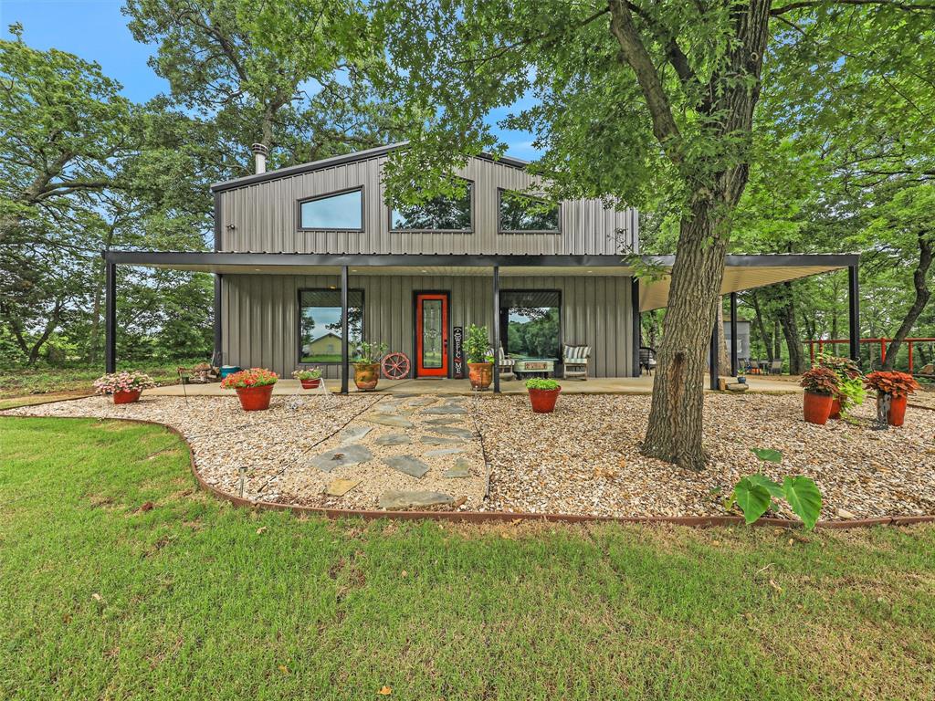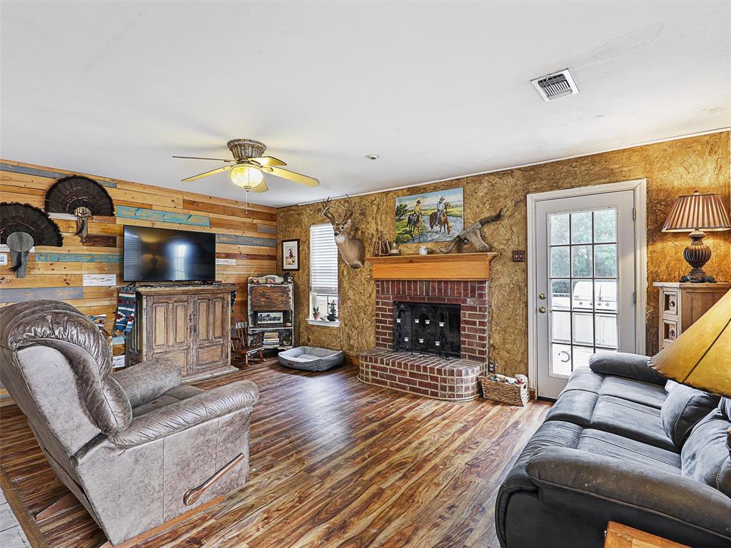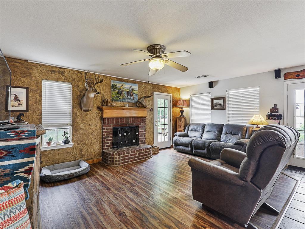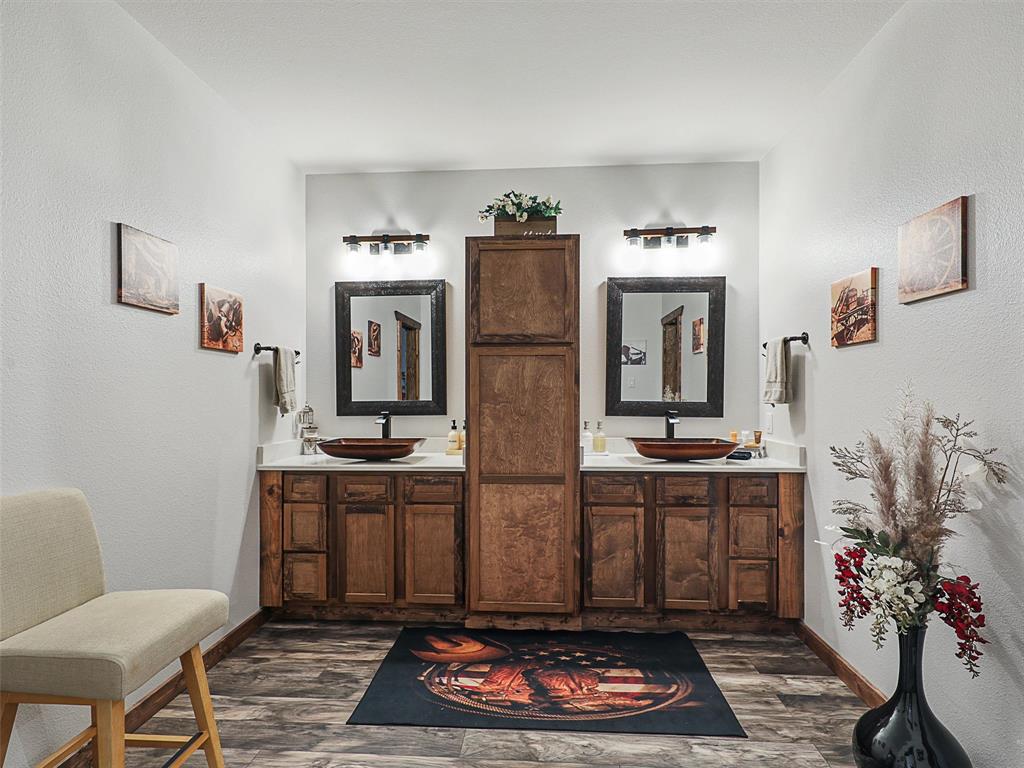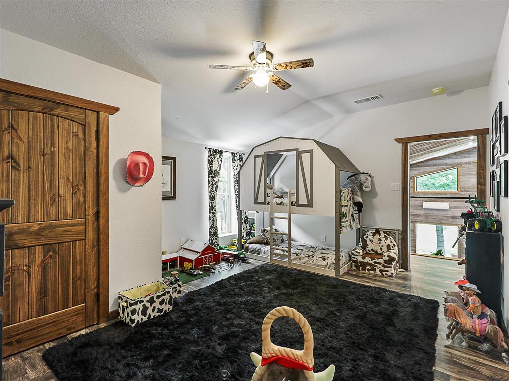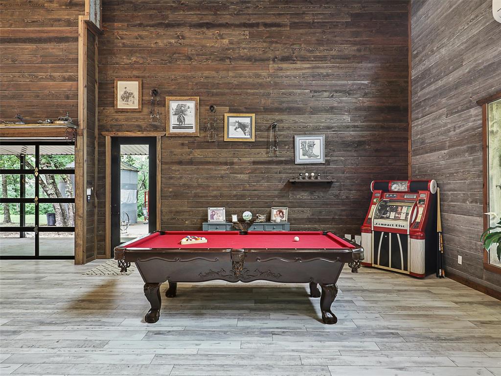 Rustic luxury meets modern ranch living on 28.56 unrestricted acres with over 2,000 feet of Hwy 82 frontage. This gated estate features a 2023-built barndominium-style main residence offering 3 bedrooms, 3 bathrooms, and a dramatic open layout with reclaimed tin ceilings, a floor-to-ceiling stone fireplace, and panoramic views of the countryside. The chef’s kitchen includes quartz countertops, double ovens, and a large island, flowing into a whiskey-barrel bar area with open shelving and a roll-up glass door—perfect for indoor-outdoor entertaining.
