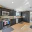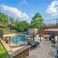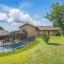 Enjoy panoramic views and watch holiday fireworks from the comfort of your own home. The expansive main living area features floor-to-ceiling glass windows and doors, a cozy wood-burning fireplace, and access to a wraparound balcony that seamlessly blends indoor and outdoor living. The kitchen boasts granite countertops, stainless steel appliances, and opens onto a spacious balcony deck with stairs leading to the pool—ideal for gatherings. A convenient half bath and a secondary staircase connect to the versatile lower-level living area. The primary suite offers direct access to a private back patio through double doors, and includes a luxurious en-suite bath with barn doors, dual vanities, generous closet space, and a large walk-in shower. The second living area—complete with a laundry closet, half bath, and private entry from the driveway, has excellent flexibility for use. Step outside to a beautifully landscaped backyard featuring an in-ground pool with a waterfall, a large grassy play area, extra parking space, and a storage shed.